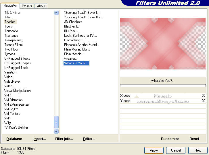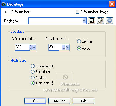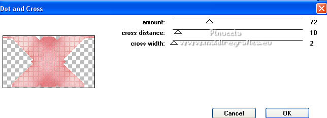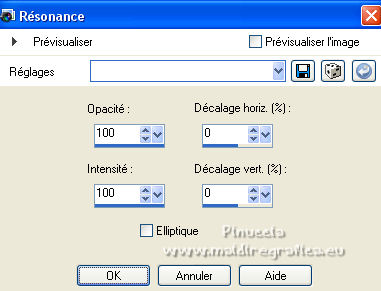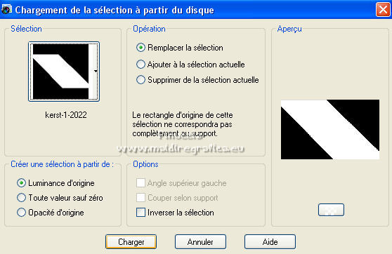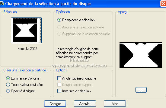 Ce tutoriel a été créé avec CorelX17, mais il peut également être exécuté avec les autres versions. Pour traduire le tutoriel j'ai utilisé CorelX17 pour l'italien et CorelX2 pour le français. Suivant la version utilisée, vous pouvez obtenir des résultats différents. Depuis la version X4, la fonction Image>Miroir a été remplacée par Image>Renverser horizontalement, et Image>Renverser avec Image>Renverser verticalement. Dans les versions X5 et X6, les fonctions ont été améliorées par la mise à disposition du menu Objets. Dans la nouvelle version X7, nous avons à nouveau Miroir/Renverser, mais avec autres différences. Voir plus les détails à ce sujet ici Certaines dénominations ont changées entre les versions de PSP. Les plus frequentes dénominations utilisées: ![]() Traduction en italien ici Vos versions iciNécessaire pour réaliser ce tutoriel: ![]() (les liens des sites des tubeuses ici) ![]() consulter, si nécessaire, ma section de filtre ici Filters Unlimited 2.0 ici Toadies - What are you ici Carolaine and Sensibility - CS-Ldots ici Penta.com - Dot and Cross ici AAA Frames - Foto Frame ici Filtres Toadies et Penta.com peuvent être utilisés seuls ou importés dans Filters Unlimited. voir comment le faire ici). Certains filtres peuvent donner des résultats différents selon la version d'Unlimited utilisée. Si un filtre est fourni avec cette icône, ![]() Si vous voulez utiliser vos propres couleurs, n'hésitez pas à changer le mode et l'opacité des calques ![]() 1. Placer en avant plan la couleur #d64649, et en arrière plan la couleur #fdefef. ![]() 2. Ouvrir une nouvelle image transparente 900 x 550 pixels. ![]() 3. Sélections>Sélectionner tout. Ouvrir acthergrondrood.jpg" et Édition>Copier.Revenir sur votre travail et Édition>Coller dans la sélection. 4. Sélections>Charger/Enregistrer une sélection>Charger à partir du disque. Chercher et charger la sélection KERST-1-2022. ![]() Sélections>Transfoermer la sélection en calque. Sélections>Désélectionner tout. 5. Calques>Dupliquer. Image>Miroir. Calques>Fusionner>Fusionner le calque de dessous. 6. Effets>Effets 3D>Ombre portée, couleur noire. ![]() 7. Calques>Dupliquer. Effets>Effets géométriques>Cercle. ![]() 8. Vous positionner sur le calque Raster 1. ![]() Effets>Effets de réflexion>Résonance. ![]() 9. Vous positionner sur le calque du haut de la pile, copie de Sélection Transformée. Effets>Modules Externes>Carolaine and Sensibility - CS-LDots. ![]() 10. Vous positionner sur le calque de dessous, Sélection transformée. Effets>Modules Externes>Toadies - What are you. ![]() Rester sur ce calque. 11. Sélections>Charger/Enregistrer une sélection>Charger à partir du disque. Chercher et charger la sélection KERST-1a-2022. ![]() Sélections>Transformer la sélection en calque. 12. Effets>Modules Externes>Penta.com - Dot and Cross. ![]() Sélections>Désélectionner tout. 13. Effets>Effets 3D>Ombre portée, couleur noire. ![]() 14. Vous positionner sur le calque du haut de la pile, Copie de sélection transformée. Ouvrir le tube christmas-time-argo.png et Édition>Copier.Revenir sur votre travail et Édition>Coller comme nouveau calque. 15. Ouvrir le tube HappyChrismas-by Margo.png et Édition>Copier.Revenir sur votre travail et Édition>Coller comme nouveau calque. 16. Effets>Effets d'image>Décalage. ![]() 17. Ouvrir tekst-1--2022.png et Édition>Copier.Revenir sur votre travail et Édition>Coller comme nouveau calque. Effets>Effets d'image>Décalage. ![]() Effets>Effets 3D>Ombre portée, couleur noire. ![]() 18. Ouvrir 0-5b0f8-4bde.pspimage et Édition>Copier.Revenir sur votre travail et Édition>Coller comme nouveau calque. 19. Image>Ajouter des bordures, 2 pixels, symétrique, couleur foncée. Sélections>Sélectionner tout. Image>Ajouter des bordures, 50 pixels, symétrique, couleur blanche. Sélections>Inverser. Effets>Effets 3D>Ombre portée, couleur noire. ![]() Sélections>Désélectionner tout. 20. Ouvrir rand.png et Édition>Copier.Revenir sur votre travail et Édition>Coller comme nouveau calque. 21. Image>Ajouter des bordures, 1 pixel, symétrique, couleur foncée. 22. Signer votre travail sur un nouveau calque. Calques>Fusionner>Tous et enregistrer en jpg. Version avec une image trouvée sur Internet. ![]() Pour réaliser le tube, j'ai utilisé un des nouveaux outils des plus récentes versions de PSP. Voir ici ![]() Si vous avez des problèmes, ou des doutes, ou vous trouvez un link modifié, ou seulement pour me dire que ce tutoriel vous a plu, vous pouvez m'écrire. |