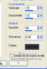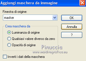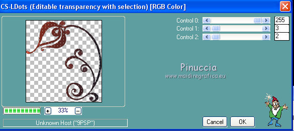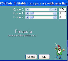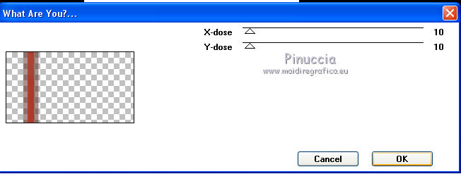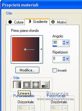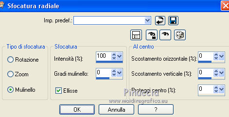 qui puoi trovare qualche risposta ai tuoi dubbi. Se l'argomento che ti interessa non è presente, ti prego di segnalarmelo. Per tradurre il tutorial ho usato Corel X7, ma può essere eseguito con ogni versione di PSP. Dalla versione X4, il comando Immagine>Rifletti è stato sostituito con Immagine>Capovolgi in orizzontale, e il comando Immagine>Capovolgi con Immagine>Capovolgi in verticale. Nelle versioni X5 e X6, le funzioni sono state migliorate rendendo disponibile il menu Oggetti. Con la nuova versione X7, sono tornati Rifletti/Capovolgi, ma con nuove differenze Vedi la scheda sull'argomento qui traduzione in francese qui Le vostre versioni qui Occorrente: Materiale qui Filtri in caso di dubbi, ricorda di consultare la mia sezione filtri qui Filters Unlimited 2.0 qui Toadies - What are you qui Carolaine and Sensibility - CS-LDots qui I filtri Toadies si possono usare da soli o importati in Filters Unlimited (come fare vedi qui) Se un filtro fornito appare con questa icona ![]() se stai usando altri colori, sperimenta le modalità di miscelatura e opacità più adatte ai tuoi colori Nelle ultime versioni di PSP non c'è il gradiente di primo piano/sfondo (Corel_06_029) Puoi usare i gradienti delle versioni precedenti. Trovi qui i gradienti Corel X. Apri la maschera in PSP e minimizzala con il resto del materiale. 1. Imposta il colore di primo piano con il colore #d2442a, e il colore di sfondo con il colore #252432. ![]() Passa il colore di primo piano a Gradiente di primo piano/sfondo, stile Lineare. ![]() 2. Apri una nuova immagine trasparente 900 x 500 pixels. ![]() Riempi l'immagine trasparente con il gradiente.3. Apri il tube 5059-luzcristina.png, cancella il watermark, e vai a Modifica>Copia. Minimizza il tube. Torna al tuo lavoro e vai a Modifica>Incolla come nuovo livello. 4. Regola>Sfocatura>Sfocatura radiale. ![]() Effetti>Effetti di bordo>Aumenta. Livelli>Unisci>Unisci giù. 5. Imposta il colore di sfondo con il colore bianco #ffffff. ![]() Livelli>Nuovo livello raster. Riempi il livello con il colore bianco.6. Livelli>Nuovo livello maschera>Da immagine. Apri il menu sotto la finestra d'origine e vedrai la lista dei files aperti. Seleziona la maschera masker.png. ![]() Livelli>Unisci>Unisci gruppo. Abbassa l'opacità di questo livello al 65%. 7. Apri il tube Floral_Brushes_by_SummerAIR_2.png. e rimani su questo tube. Selezione>Seleziona tutto. Selezione>Mobile. Selezione>Immobilizza. Imposta nuovamente il colore di sfondo con #252432. ![]() Riempi la selezione con il gradiente.8. Effetti>Plugins>Carolaine and Sensibility - CS-LDots. ![]() Selezione>Deseleziona. 9. Modifica>Copia. Torna al tuo lavoro e vai a Modifica>Incolla come nuovo livello. 10. Effetti>Effetti 3D>Sfalsa ombra, colore #252432. ![]() 11. Tasto K sulla tastiera per attivare lo strumento Puntatore ![]() e imposta Posizione X: 387,00 e Posizione Y: 4,00. ![]() ![]() Tasto M per deselezionare lo strumento. 12. Cambia la modalità di miscelatura di questo livello in Luce netta. Attiva il livello inferiore, Raster 1. 13. Attiva lo strumento Selezione ![]() (non importa il tipo di selezione impostato, perchè con la selezione personalizzata si ottiene sempre un rettangolo) clicca sull'icona Selezione personalizzata ![]() e imposta i seguenti settaggi. ![]() 14. Selezione>Innalza selezione a livello. Livelli>Disponi>Porta in alto. Selezione>Deseleziona. 15. Effetti>Plugins>Toadies - What are you. ![]() Abbassa l'opacità di questo livello al 60%. 16. Effetti>Plugins>Carolaine and Sensibility - CS-LDots, con i settaggi precedenti ![]() 17. Apri il tube deco-1-231.png e vai a Modifica>Copia. Torna al tuo lavoro e vai a Modifica>Incolla come nuovo livello. Strumento Puntatore ![]() e imposta Posizione X: -6,00 e Posizione Y: 15,00. ![]() 18. Apri il tube Deco-2-231.png e vai a Modifica>Copia. Torna al tuo lavoro e vai a Modifica>Incolla come nuovo livello. Strumento Puntatore ![]() e imposta Posizione X: 560,00 e Posizione Y: 106,00. ![]() Cambia la modalità di miscelatura di questo livello in Luminanza (esistente). 19. Apri il tube Dec0-3-231 png. e vai a Modifica>Copia. Torna al tuo lavoro e vai a Modifica>Incolla come nuovo livello. Lascialo come sta. É al suo posto Posizione X: 383,00 e Posizione Y: 183,00. ![]() 20. Attiva nuovamente il tube 5059-luzcristina. png e vai a Modifica>Copia. Torna al tuo lavoro e vai a Modifica>Incolla come nuovo livello. Immagine>Ridimensiona, 2 volte all'80%, tutti i livelli non selezionato. Strumento Puntatore ![]() e imposta Posizione X: 120,00 e Posizione Y: -70,00. ![]() Tasto M per deselezionare lo strumento. 21. Effetti>Effetti 3D>Sfalsa ombra, colore nero #000000. ![]() 22. Immagine>Aggiungi bordatura, 10 pixels, simmetriche colore scuro di sfondo #252432. Immagine>Aggiungi bordatura, 2 pixels, simmetriche, colore chiaro di primo piano #d2442a. Selezione>Seleziona tutto. Immagine>Aggiungi bordatura, 40 pixels, simmetriche, colore chiaro. Selezione>Inverti. Riempi la selezione con il gradiente.23. Regola>Sfocatura>Sfocatura radiale, con i settaggi precedenti. ![]() Selezione>Inverti. 24. Effetti>Effetti 3D>Sfalsa ombra, colore nero #000000. ![]() Selezione>Deseleziona. 25. Immagine>Aggiungi bordatura, 2 pixels, simmetriche, colore scuro di sfondo #252432. 26. Firma il tuo lavoro su un nuovo livello. Livelli>Unisci>Unisci tutto e salva in formato jpg. Versione con tube di Guismo ![]() ![]() Se hai problemi o dubbi, o trovi un link non funzionante, o anche soltanto per un saluto, scrivimi. 7 Settembre 2019 |