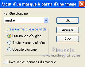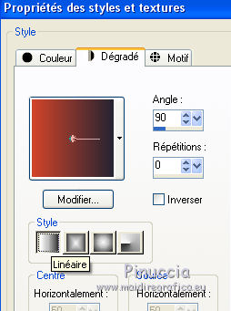 Ce tutoriel a été créé avec CorelX17, mais il peut également être exécuté avec les autres versions. Pour traduire le tutoriel j'ai utilisé CorelX17 pour l'italien et CorelX2 pour le français. Suivant la version utilisée, vous pouvez obtenir des résultats différents. Depuis la version X4, la fonction Image>Miroir a été remplacée par Image>Renverser horizontalement, et Image>Renverser avec Image>Renverser verticalement. Dans les versions X5 et X6, les fonctions ont été améliorées par la mise à disposition du menu Objets. Dans la nouvelle version X7, nous avons à nouveau Miroir/Renverser, mais avec autres différences. Voir plus les détails à ce sujet ici Certaines dénominations ont changées entre les versions de PSP. Les plus frequentes dénominations utilisées: ![]() Traduction en italien ici Vos versions ici Nécessaire pour réaliser ce tutoriel: Matériel qui Pour le tube merci Luz Cristina (les liens des sites des tubeuses ici) Modules Externes consulter, si nécessaire, ma section de filtre ici Filters Unlimited 2.0 ici Toadies - What are you ici Carolaine and Sensibility - CD-LDots ici Filtres Toadies peuvent être utilisés seuls ou importés dans Filters Unlimited. voir comment le faire ici). Si un filtre est fourni avec cette icône, ![]() Si vous voulez utiliser vos propres couleurs, n'hésitez pas à changer le mode et l'opacité des calques Dans les plus récentes versions de PSP, vous ne trouvez pas le dégradé d'avant plan/arrière plan ou Corel_06_029. Vous pouvez utiliser le dégradé des versions antérieures. Ici le dossier Dégradés de CorelX. Ouvrir le masque dans PSP et le minimiser avec le reste du matériel. 1. Placer en avant plan la couleur #d2442a, et en arrière plan la couleur #252432. ![]() Préparer en avant plan un dégradé de premier plan/arrière plan, style Linéaire. ![]() 2. Ouvrir une nouvelle image transparente 900 x 500 pixels. ![]() Remplir l'image transparente du dégradé.3. Ouvrir le tube 5059-luzcristina.png, effacer le watermark, et Édition>Copier. Minimiser le tube. Revenir sur votre travail et Édition>Coller comme nouveau calque. 4. Réglage>Flou>Flou radial. ![]() Effets>Effets de bords>Accentuer. Calques>Fusionner>Fusionner le calque de dessous. 5. Placer en arrière plan la couleur blanche #ffffff. ![]() Calques>Nouveau calque raster. Remplir le calque avec la couleur blanche.6. Calques>Nouveau calque de masque>A partir d'une image. Ouvrir le menu deroulant sous la fenêtre d'origine et vous verrez la liste des images ouvertes. Sélectionner le masque masker.png. ![]() Calques>Fusionner>Fusionner le calque de dessous. Réduire l'opacité de ce calque à 65%. 7. Ouvrir le tube Floral_Brushes_by_SummerAIR_2.png. et travaillez sur ce tube. Sélections>Sélectionner tout. Sélections>Flottante. Sélections>Statique. Placer à nouveau en arrière plan la couleur #252432. ![]() Remplir la sélection du dégradé.8. Effets>Modules Externes>Carolaine and Sensibility - CS-LDots. ![]() Sélections>Désélectionner tout. 9. Édition>Copier. Revenir sur votre travail et Édition>Coller comme nouveau calque. 10. Effets>Effets 3D>Ombre portée, couleur #252432. ![]() 11. Touche K sur le clavier pour activer l'outil Sélecteur ![]() et placer Position horiz.: 387,00 et Position vert.: 4,00. ![]() ![]() Touche M pour désélectionner l'outil. 12. Placer le calque en mode Lumière dure. Vous positionner sur le calque du bas de la pile, Raster 1. 13. Activer l'outil Sélection ![]() (peu importe le type de sélection, parce que avec la sélection personnalisée vous obtenez toujours un rectangle), cliquer sur Sélection personnalisée ![]() et setter ces paramètres. ![]() 14. Sélections>Transformer la sélection en calque. Calques>Agencer>Placer en haut de la pile. Sélections>Désélectionner tout. 15. Effets>Modules Externes>Toadies - What are you. ![]() Réduire l'opacité de ce calque à 60%. 16. Effets>Modules Externes>Carolaine and Sensibility - CS-LDots, comme précédemment ![]() 17. Ouvrir le tube deco-1-231.png - Édition>Copier. Revenir sur votre travail et Édition>Coller comme nouveau calque. Outil Sélecteur ![]() et placer Position horiz.: -6,00 et Position vert.: 15,00. ![]() 18. Ouvrir le tube Deco-2-231.png - Édition>Copier. Revenir sur votre travail et Édition>Coller comme nouveau calque. Outil Sélecteur ![]() et placer Position horiz.: 560,00 et Position vert.: 106,00. ![]() Placer le calque en mode Luminance (héritée). 19. Ouvrir le tube Dec0-3-231 png. - Édition>Copier. Revenir sur votre travail et Édition>Coller comme nouveau calque. Ne pas déplacer. Il est à sa place Position horiz.: 383,00 et Position vert.: 183,00. ![]() 20. Activer à nouveau le tube 5059-luzcristina. png - Édition>Copier. Revenir sur votre travail et Édition>Coller comme nouveau calque. Image>Redimensionner, 2 fois à 80%, redimensionner tous les calques décoché. Outil Sélecteur ![]() et placer Position horiz.: 120,00 et Position vert.: -70,00. ![]() Touche M pour désélectionner l'outil. 21. Effets>Effets 3D>Ombre portée, couleur noire #000000. ![]() 22. Image>Ajouter des bordures, 10 pixels, symétrique, couleur foncée d'arrière plan #252432. Image>Ajouter des bordures, 2 pixels, symétrique, couleur claire d'avant plan #d2442a. Sélections>Sélectionner tout. Image>Ajouter des bordures, 40 pixels, symétrique, couleur claire. Sélections>Inverser. Remplir la sélection du dégradé.23. Réglage>Flou>Flou radial, comme précédemment. ![]() Sélections>Inverser. 24. Effets>Effets 3D>Ombre portée, couleur noire #000000. ![]() Sélections>Désélectionner tout. 25. Image>Ajouter des bordures, 2 pixels, symétrique, couleur foncée d'arrière plan #252432. 26. Signer votre travail sur un novueau calque. calques>Fusionner>Tous et enregistrer en jpg. Version avec tube de Guismo ![]() ![]() Si vous avez des problèmes, ou des doutes, ou vous trouvez un link modifié, ou seulement pour me dire que ce tutoriel vous a