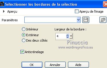 Ce tutoriel a été créé avec CorelX17, mais il peut également être exécuté avec les autres versions. Pour traduire le tutoriel j'ai utilisé CorelX17 pour l'italien et CorelX2 pour le français. Suivant la version utilisée, vous pouvez obtenir des résultats différents. Depuis la version X4, la fonction Image>Miroir a été remplacée par Image>Renverser horizontalement, et Image>Renverser avec Image>Renverser verticalement. Dans les versions X5 et X6, les fonctions ont été améliorées par la mise à disposition du menu Objets. Dans la nouvelle version X7, nous avons à nouveau Miroir/Renverser, mais avec autres différences. Voir plus les détails à ce sujet ici Certaines dénominations ont changées entre les versions de PSP. Les plus frequentes dénominations utilisées: ![]() Traduction en italien ici Vos versions ici Nécessaire pour réaliser ce tutoriel: Matériel qui (les liens des sites des tubeuses ici) Modules Externes consulter, si nécessaire, ma section de filtre ici Filters Unlimited 2.0 ici Tools - REM-Lotus (à importer dans Unlimited) qui le single effet dans le matériel Mehdi - Sorting Tiles ici AAA Frames - Foto Frame ici ![]() Si vous voulez utiliser vos propres couleurs, n'hésitez pas à changer le mode et l'opacité des calques Placer la sélection dans le dossier Sélections. 1. Placer en avant plan la couleur #ffffff, et en arrière plan la couleur #1c2e10. ![]() 2. Ouvrir une nouvelle image transparente 900 x 550 pixels. ![]() Remplir l'image transparente avec la couleur foncée.3. Sélections>Sélectionner tout. Ouvrir le tube boeket-5.png - Édition>Copier. Revenir sur votre travail et Édition>Coller dans la sélection. Sélections>Désélectionner tout. 4. Effets>Effets d'image>Mosaïque sans jointures, par défaut. ![]() 5. Effets>Modules Externes>Mehdi - Sorting Tiles. ![]() Effets>Effets de bords>Accentuer davantage. 6. Effets>Modules Externes>Tools - REM Lotus ![]() 7. Sélections>Charger/Enregistrer une sélection>Charger à partir du disque. Chercher et charger la sélection sel-1-235-mb ![]() 8. Calques>Nouveau calque raster. Sélections>Modifier>Sélectionner les bordures de la sélection. ![]() 9. Remplir la sélection avec la couleur blanche #ffffff.Calques>Fusionner>Fusionner le calque de dessous. Sélections>Désélectionner tout. 10. Ouvrir le tube mb-deco-1-235.png - Édition>Copier. Revenir sur votre travail et Édition>Coller comme nouveau calque. 11. Ouvrir le tube mb-deco-2-235.png - Édition>Copier. Revenir sur votre travail et Édition>Coller comme nouveau calque. 12. Touche K sur le clavier pour activer l'outil Sélecteur ![]() et placer Position horiz.: 295,00 et Position vert.: 120,00. ![]() 13. Calques>Dupliquer. Image>Redimensionner, à 75%, redimensionner tous les calques décoché. 14. Outil Sélecteur ![]() et placer Position horiz.: 302,00 et Position vert.: 158,00. ![]() 15. Ouvrir le tube boeket-5.png - Édition>Copier. Revenir sur votre travail et Édition>Coller comme nouveau calque. Outil Sélecteur ![]() et placer Position horiz.: 73,00 et Position vert.: 50,00. ![]() 17. Effets>Effets 3D>Ombre portée, couleur noire. ![]() 18. Activer l'outil Sélection ![]() (peu importe le type de sélection, parce que avec la sélection personnalisée vous obtenez toujours un rectangle), cliquer sur Sélection personnalisée ![]() et setter ces paramètres. ![]() 19. Vous positionner sur le calque du bas de la pile. Sélections>Transformer la sélection en calque. Sélections>Désélectionner tout. Effets>Effets 3D>Ombre portée, comme prècédemment. ![]() 20. Placer le calque en mode Luminance (héritée). 21. Édition>Copie Spéciale>Copier avec fusion. Édition>Coller comme nouvelle image. Travaillez sur cette image. 22. Image>Redimensionner, à 20%, redimensionner tous les calques coché. Image>Ajouter des bordures, 2 pixels, symétrique, couleur #ffffff. Image>Ajouter des bordures, 20 pixels, symétrique, couleur #1c2e10. 23. Effets>Modules Externes>AAA Frames - Foto Frame. ![]() 24. Édition>Copier. Revenir sur votre travail original e vous positionner sur le calque du haut de la pile. Édition>Coller comme nouveau calque. Image>Redimensionner, à 75%, redimensionner tous les calques décoché. 25. Outil Sélecteur ![]() et placer Position horiz.: 715,00 et Position vert.: 47,00. ![]() Calques>Dupliquer. Garder Position horiz.: 715,00 et placer Position vert.: 394,00. ![]() Touche M pour désélectionner l'outil. 26. Calques>Fusionner>Fusionner le calque de dessous. Effets>Effets 3D>Ombre portée, comme prècédemment. ![]() 27. Image>Ajouter des bordures, 2 pixels, symétrique, couleur #ffffff. Image>Ajouter des bordures, 40 pixels, symétrique, couleur #1c2e10. Effets>Modules Externes>AAA Frames - Foto Frame. ![]() Répéter l'Effet Foto Frame comme précédemment. Réglage>Traitement rapide des photos. Signer votre travail sur un nouveau calque. Calques>Fusionner>tous et enregistrer en jpg. Version avec tube de Alejandra Rosales ![]() ![]() Si vous avez des problèmes, ou des doutes, ou vous trouvez un link modifié, ou seulement pour me dire que ce tutoriel vous a plu, vous pouvez m'écrire. 22 Mars 2020 |