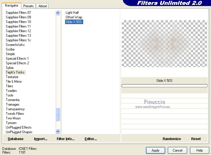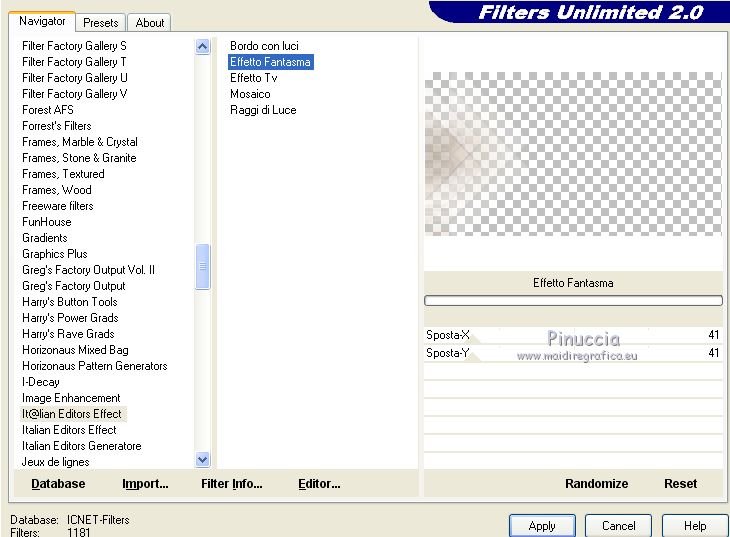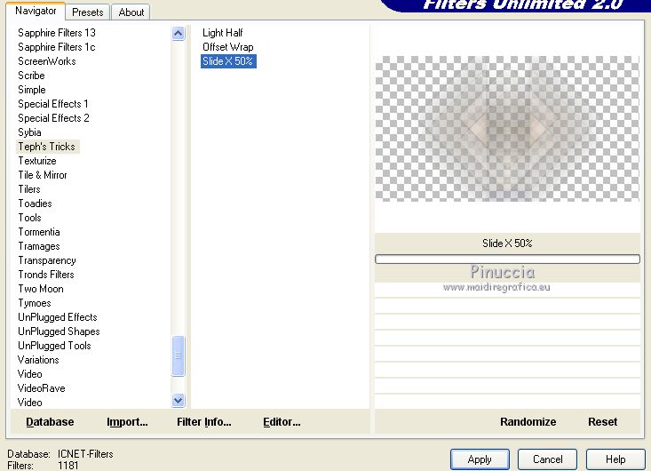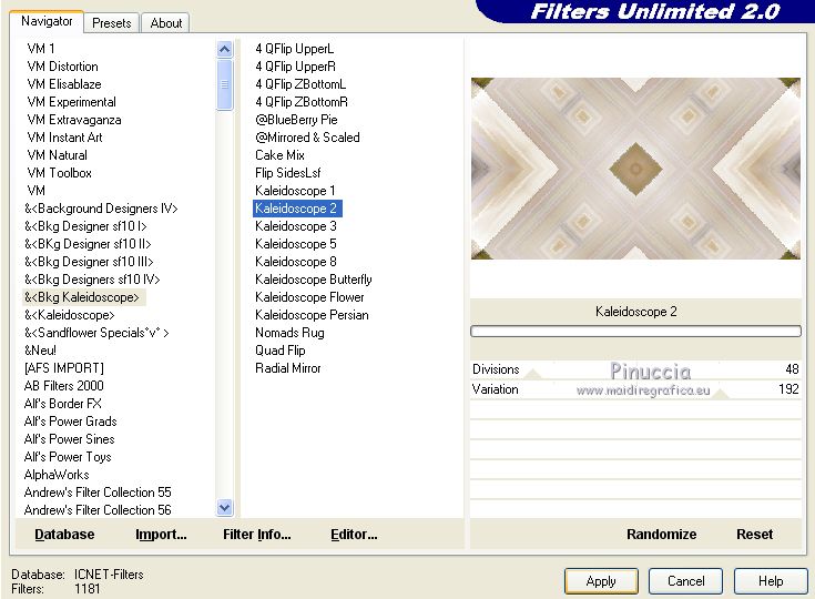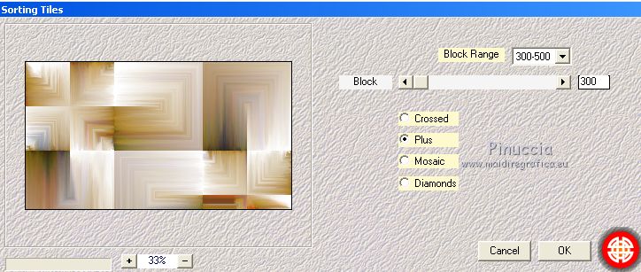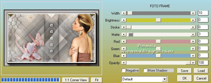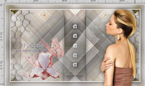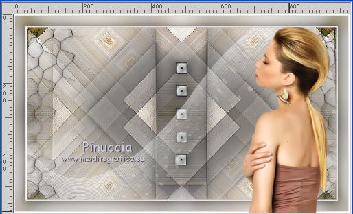 Ce tutoriel a été créé avec CorelX17, mais il peut également être exécuté avec les autres versions. Pour traduire le tutoriel j'ai utilisé CorelX17 pour l'italien et CorelX2 pour le français. Suivant la version utilisée, vous pouvez obtenir des résultats différents. Depuis la version X4, la fonction Image>Miroir a été remplacée par Image>Renverser horizontalement, et Image>Renverser avec Image>Renverser verticalement. Dans les versions X5 et X6, les fonctions ont été améliorées par la mise à disposition du menu Objets. Dans la nouvelle version X7, nous avons à nouveau Miroir/Renverser, mais avec autres différences. Voir plus les détails à ce sujet ici Certaines dénominations ont changées entre les versions de PSP. Les plus frequentes dénominations utilisées: ![]() Traduction en italien ici Vos versions iciNécessaire pour réaliser ce tutoriel: Matériel qui Pour le tube merci Kamalini. (les liens des sites des tubeuses ici) Modules Externes consulter, si nécessaire, ma section de filtre ici Filters Unlimited 2.0 ici Mehdi - Sorting Tiles ici Italian Editors Effect - Effetto Fantasma ici Teph's and Tricks ici &<Bkg Kaleidoscope> - Kaleidoscope 2 (à importer dans Unlimited) ici AAA Frames - Foto Frame ici Filters italian Editors et Teph's and Tricks peuvent être utilisés seuls ou importés dans Filters Unlimited. voir comment le faire ici). Si un filtre est fourni avec cette icône, ![]() Si vous voulez utiliser vos propres couleurs, n'hésitez pas à changer le mode et l'opacité des calques Placer les sélections dans le dossier Sélections. Ouvrir le masque dans PSP et le minimiser avec le reste du matériel. 1. Placer en avant plan la couleur #cdc9c6, et en arrière plan la couleur #ffffff. ![]() 2. Ouvrir une nouvelle image transparente 900 x 500 pixels. ![]() 3. Sélections>Sélectionner tout. Ouvrir l'image 1903pg17.png - Édition>Copier. Revenir sur votre travail et Édition>Coller dans la sélection. Sélections>Désélectionner tout. 4. Effets>Effets d'image>Mosaïque sans jointures, par défaut. ![]() 5. Calques>Fusionner>Tous. 6. Effets>Modules Externes>Mehdi - Sorting Tiles. ![]() 7. Effets>Effets de bords>Accentuer davantage. 8. Effets>Modules Externes>Filters Unlimited 2.0 - &<Bkg Kaleidoscope> - Kaleidoscope 2. ![]() 9. Sélections>Charger/Enregistrer une sélection>Charger à partir du disque. Chercher et charger la sélection sel-mb-253.1.PsPSelection. ![]() Sélections>Transformer la sélection en calque. Sélections>Désélectionner tout. 10. Effets>Modules Externes>Filters Unlimited 2.0 - Italian Editors Effects - Effetto Fantasma. ![]() La version d'Unlimited utilisée dans ce tutoriel est la version software. Si vous utilisez la version d'Unlimited qui ne s'installe pas, car elle est constitué de fichiers au format 8bf, vous aurez un résultat légèrement différent. 11. Calques>Dupliquer. Image>Miroir. Calques>Fusionner>Fusionner le calque de dessous. Effets>Effets 3D>Ombre portée, précédemment. ![]() 12. Livelli>Duplica. Effets>Modules Externes>Filters Unlimited 2.0 - Teph's Tricks - Slide X 50%. ![]() comme j'ai écrit à l'étape 10, le résultat sera un peu différent selon la version d'Unlimited utilisée. ![]() 13. Effets>Effets 3D>Ombre portée, précédemment. ![]() 14. Calques>Fusionner>Fusionner le calque de dessous. 15. Effets>Effets de bords>Accentuer. 16. Sélections>Charger/Enregistrer une sélection>Charger à partir du disque. Chercher et charger la sélection sel-mb-253.12.PsPSelection. ![]() Sélections>Transformer la sélection en calque. Sélections>Désélectionner tout. Effets>Effets 3D>Ombre portée, précédemment. ![]() 17. Apri carres_b&w_vir.png - Édition>Copier. Revenir sur votre travail et Édition>Coller comme nouveau calque. Effets>Effets 3D>Ombre portée, précédemment. ![]() 18. Apri deco-253-3.png - Édition>Copier. Revenir sur votre travail et Édition>Coller comme nouveau calque. 19. Apri deco-gaas.png - Édition>Copier. Revenir sur votre travail et Édition>Coller comme nouveau calque. 20. Sélections>Charger/Enregistrer une sélection>Charger à partir du disque. Chercher et charger la sélection sel-mb-253.13.PsPSelection. ![]() 21. Effets>Effets 3D>Ombre portée, précédemment. ![]() Sélections>Désélectionner tout. 22. Image>Ajouter des bordures, 1 pixel, symétrique, couleur d'avant plan. Image>Ajouter des bordures, 3 pixels, symétrique, couleur blanche. Image>Ajouter des bordures, 1 pixel, symétrique, couleur d'avant plan. 23. Modifica>Copia. Selezione>Seleziona tutto. 24. Image>Ajouter des bordures, 30. pixels, symétrique, couleur blanche. Selezione>Inverti. 25. Modifica>Incolla nella selezione. Regola>Sfocatura>Sfocatura gaussiana - raggio 20. ![]() Selezione>Inverti. Effets>Effets 3D>Ombre portée, précédemment. ![]() Sélections>Désélectionner tout. 26. Image>Ajouter des bordures, 1 pixel, symétrique, couleur d'avant plan. Image>Ajouter des bordures, 3 pixels, symétrique, couleur blanche. 27. Apri Kamalini-446.png, effacer le watermark - Édition>Copier. Revenir sur votre travail et Édition>Coller comme nouveau calque. Image>Redimensionner, 3 fois à 80%, redimensionner tous les calques décoché. Déplacer le tube à droite.![]() Effets>Effets 3D>Ombre portée, précédemment. ![]() 28. Ouvrir a0db1b8b.png - Édition>Copier. Revenir sur votre travail et Édition>Coller comme nouveau calque. Déplacer le tube à gauche.![]() Effets>Effets 3D>Ombre portée, précédemment. ![]() 29. Image>Ajouter des bordures, 1 pixel, symétrique, couleur d'avant plan. Effets>Modules Externes>AAA Frames - Foto Frame. ![]() 30. Signer votre travail sur un nouveau calque. Calques>Fusionner>tous et enregistrer en jpg. Pour les tubes de cette version merci Wieske et SLH ![]() ![]() Si vous avez des problèmes, ou des doutes, ou vous trouvez un link modifié, ou seulement pour me dire que ce tutoriel vous a plu, vous pouvez m'écrire. |