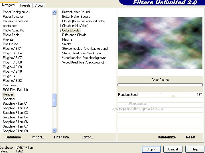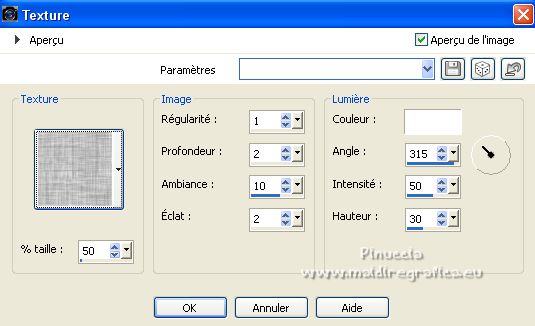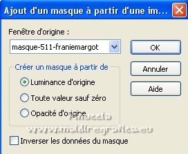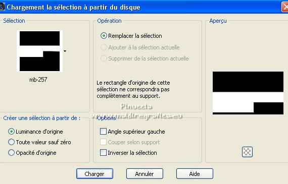 Ce tutoriel a été créé avec CorelX17, mais il peut également être exécuté avec les autres versions. Pour traduire le tutoriel j'ai utilisé CorelX17 pour l'italien et CorelX2 pour le français. Suivant la version utilisée, vous pouvez obtenir des résultats différents. Depuis la version X4, la fonction Image>Miroir a été remplacée par Image>Renverser horizontalement, et Image>Renverser avec Image>Renverser verticalement. Dans les versions X5 et X6, les fonctions ont été améliorées par la mise à disposition du menu Objets. Dans la nouvelle version X7, nous avons à nouveau Miroir/Renverser, mais avec autres différences. Voir plus les détails à ce sujet ici Certaines dénominations ont changées entre les versions de PSP. Les plus frequentes dénominations utilisées: ![]() Traduction en italien ici Vos versions iciNécessaire pour réaliser ce tutoriel: Matériel qui Pour le masque merci Franie Margot. Le reste du matériel est de Mieke. (les liens des sites des tubeuses ici) Modules Externes consulter, si nécessaire, ma section de filtre ici Filters Unlimited 2.0 ici Mehdi - Sorting Tiles ici Carolaine and Sensibility - CS-LDots, CS-Texture ici Mura's Meister - Pole Transform ici VM Extravaganza - James Bondage ici AAA Filters - AAA Frames ici Filtres VM Extravaganza peuvent être utilisés seuls ou importés dans Filters Unlimited. voir comment le faire ici). Si un filtre est fourni avec cette icône, ![]() Si vous voulez utiliser vos propres couleurs, n'hésitez pas à changer le mode et l'opacité des calques La texture Arcering fijn correspond à la texture standard in PSP Hachure fine ou Corel_15_021 Si vous ne la trouvez pas dans votre PSP, placer la texture fournie dans le dossier Textures. Placer la sélection dans le dossier Sélections. Ouvrir le masque dans PSP et le minimiser avec le reste du matériel. Placer en avant plan la couleur blanche #ffffff, et en arrière plan la couleur noire #000000. ![]() 1. Ouvrir une nouvelle image transparente 900 x 550 pixels. ![]() Remplir l'image transparente avec la couleur blanche #ffffff.2. Effets>Modules Externes>Filters Unlimited 2.0 - Render. ![]() 3. Effets>Modules Externes>Mehdi - Sorting Tiles. ![]() 4. Sélections>Charger/Enregistrer une sélection>Charger à partir du disque. Chercher et charger la sélection mb 257. ![]() Sélections>Transformer la sélection en calque. Sélections>Désélectionner tout. 5. Calques>Dupliquer. Effets>Modules Externes>Mura's Meister - Pole Transform. ![]() 7. Effets>Modules Externes>Filters Unlimited 2.0 - VM Extravaganza - James Bondage, par défaut. ![]() 8. Effets>Modules Externes>Carolaine and Sensibility - CS-LDots. ![]() 9. Effets>Effets 3D>Ombre portée, couleur noire. ![]() 10. Vous positionner sur le calque central, Sélection transformée ![]() Effets>Effets géométriques>Pentagone. ![]() Édition>Répéter Pentagone. 11. Effets>Effets 3D>Ombre portée, comme précédemment. ![]() 12. Effets>Modules Externes>Carolaine and Sensibility - CS-Texture. ![]() 13. Calques>Dupliquer. Image>Rotation libre - 90 degrés à gauche. ![]() 14. Touche K sur le clavier pour activer l'outil Sélecteur ![]() et placer Position horiz.: 486,00 e Position vert.: -30,00. ![]() Touche M pour désélectionner l'outil. 15. Vous positionner sur le calque d'arrière plan, Raster 1. Effets>Effets de textures>Texture - sélectionner la texture Hachure fine ou Corel_15_021 ![]() 16. Vous positionner sur le calque du haut de la pile. Calques>Nouveau calque raster. Remplir le calque avec la couleur blanche #ffffff.17. Calques>Nouveau calque de masque>A partir d'une image. Ouvrir le menu deroulant sous la fenêtre d'origine et vous verrez la liste des images ouvertes. Sélectionner le masque masque-511-franiemargot. ![]() Calques>Fusionner>Fusionner le groupe. 18. Image>Renverser. Touche K pour activer l'outil Sélecteur ![]() garder Position horiz.: 0,00 et placer Position vert.: 128,00. ![]() Effets>Effets de bords>Accentuer. 19. Ouvrir deco-1-275 - Édition>Copier. Revenir sur votre travail et Édition>Coller comme nouveau calque. Placer Position horiz.: 530,00 et Position vert.: 57,00. ![]() 20. Ouvrir deco-2-257 - Édition>Copier. Revenir sur votre travail et Édition>Coller comme nouveau calque. Placer Position horiz.: 12,00 et Position vert.: 0,00. ![]() Placer le calque en mode Luminance (héritée). 21. Ouvrir orchide-paars - Édition>Copier. Revenir sur votre travail et Édition>Coller comme nouveau calque. Placer Position horiz.: -7,00 et Position vert.: 151,00. ![]() Touche M pour désélectionner l'outil. 22. Image>Ajouter des bordures, 1 pixel, symétrique, couleur #000000. Sélections>Sélectionner tout. Édition>Copier. Image>Ajouter des bordures, 50 pixels, symétrique, couleur blanche. Sélections>Inverser. Édition>Coller dans la sélection. Réglage>Flou>Flou gaussien - rayon 20. ![]() Sélections>Inverser. Effets>Modules Externes>AAA Frames - Foto Frame. ![]() Effets>Effets 3D>Ombre portée, couleur noire. ![]() Sélections>Désélectionner tout. 23. Effets>Modules Externes>AAA Frames - Foto Frame. ![]() Signer votre travail sur un nouveau calque. Calques>Fusionner>Tous et enregistrer en jpg. Pour le tube de cette version merci Sonia ![]() ![]() Si vous avez des problèmes, ou des doutes, ou vous trouvez un link modifié, ou seulement pour me dire que ce tutoriel vous a plu, vous pouvez m'écrire. |