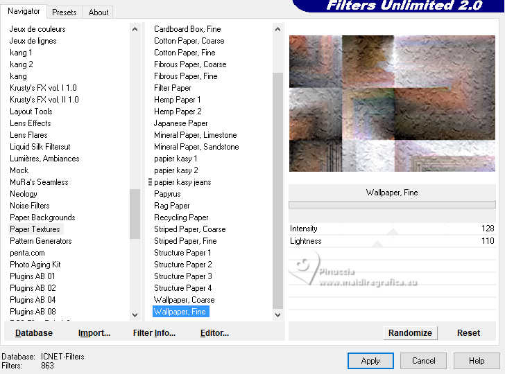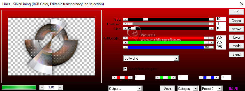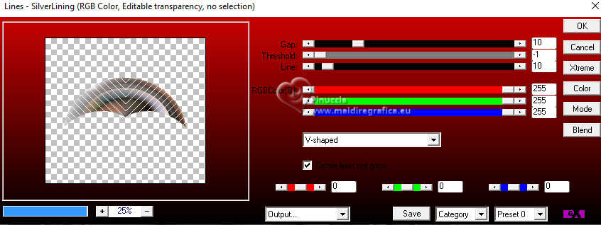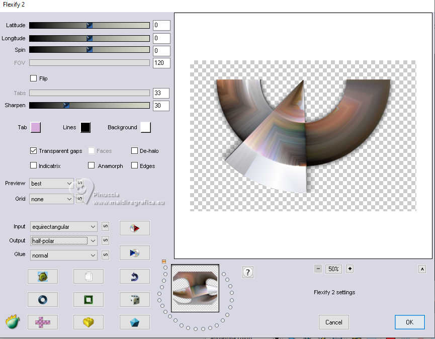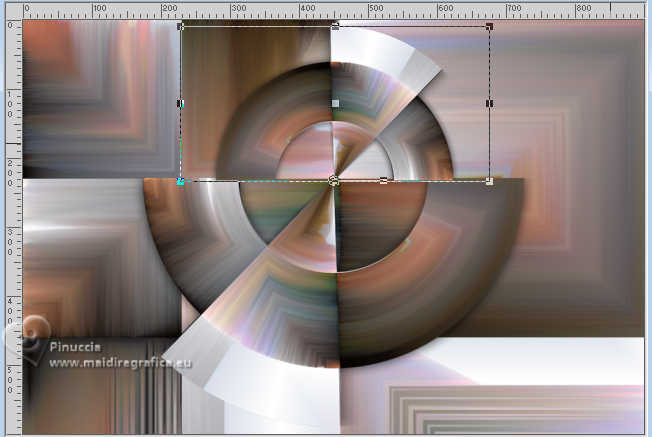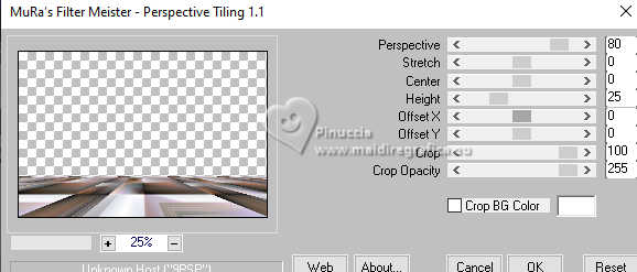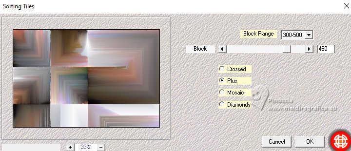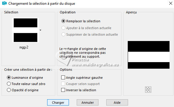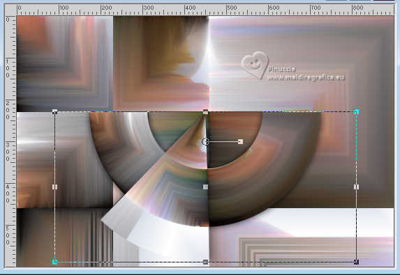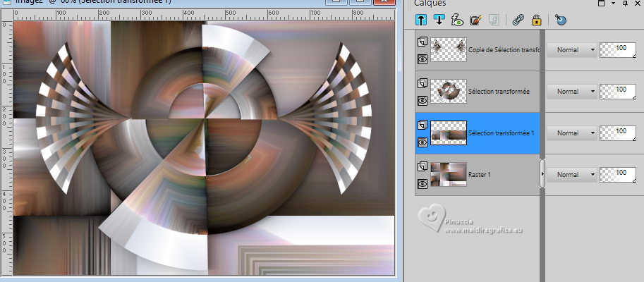 Pour traduire ce tutoriel j'ai utilisé PSPX9, mais il peut également être exécuté avec les autres versions. Suivant la version utilisée, vous pouvez obtenir des résultats différents. Depuis la version X4, la fonction Image>Miroir a été remplacée par Image>Renverser horizontalement, et Image>Renverser avec Image>Renverser verticalement. Dans les versions X5 et X6, les fonctions ont été améliorées par la mise à disposition du menu Objets. Dans la nouvelle version X7, nous avons à nouveau Miroir/Renverser, mais avec autres différences. Voir plus les détails à ce sujet ici Certaines dénominations ont changées entre les versions de PSP. Les plus frequentes dénominations utilisées: ![]() Traduction en italien ici Vos versions iciNécessaire pour réaliser ce tutoriel: ![]() (les liens des sites des tubeuses ici) ![]() consulter, si nécessaire, ma section de filtre ici Filters Unlimited 2.0 ici Mehdi - Sorting Tiles ici Flaming Pear - Flexify ici AP 01 [Innovations] - Lines SilverLining ici Carolaine and Sensibility - CS-Linear-H ici Mura's Meister - Perspective Tiling ici AAA Frames - Foto Frame ici ![]() Si vous voulez utiliser vos propres couleurs, n'hésitez pas à changer le mode et l'opacité des calques Dans les plus récentes versions de PSP, vous ne trouvez pas le dégradé d'avant plan/arriére plan ou Corel_06_029. Vous pouvez utiliser le dégradé des versions antérieures. Ici le dossier Dégradés de CorelX. ![]() Placer les sélections dans le dossier Sélections. Ouvrir le masque dans PSP et le minimiser avec le reste du matériel. 1. Placer en avant plan la couleur #556e9d, et en arrière plan la couleur blanche #ffffff. ![]() Préparer en avant plan un dégradé de premier plan/arrière plan, style Linéaire. ![]() 2. Ouvrir une nouvelle image transparente 900 x 600 pixels. ![]() Remplir l'image transparente du dégradé.3. Sélections>Sélectionner tout. Ouvrir le tube vrouw-68ead.png ![]() Édition>Copier. Revenir sur votre travail et Édition>Coller dans la sélection. Sélections>Désélectionner tout. 4. Effets>Effets d'image>Mosaïque sans jointures. ![]() 5. Effets>Modules Externes>Mehdi - Sorting Tiles. ![]() **************************** 6. Nous allons maintenant réaliser une décoration. Dans le matériel vous trouverez également cette déco. Si vous préférez utiliser cette déco, continuez à partir du point 28 7. Sélections>Charger/Enregistrer une sélection>Charger à partir du disque. Chercher et charger la sélection mgg-1 ![]() Sélections>Transformer la sélection en calque. Sélections>Désélectionner tout. Effets>Effets 3D>Ombre portée, couleur noire. ![]() 8. Effets>Modules Externes>Flaming Pear - Flexify. ![]() 9. Image>Redimensionner, à 80%, redimensionner tous les calques décoché. 10. Touche K pour activer l'outil Sélecteur ![]() Garder Position horiz.: 90,00 et placer Position vert.: 228,00. ![]() ![]() 11. Calques>Dupliquer. Image>Miroir>Miroir horizontal (Image>Miroir). Image>Miroir>Miroir vertical (Image>Renverser). 12. Image>Redimensionner, 1 fois à 80% et 1 fois à 78%, redimensionner tous les calques décoché. Placer Position horiz.: 227,00 et Position vert.: 8,00. ![]() ![]() 13. Calques>Fusionner>Fusionner le calque de dessous. Effets>Effets 3D>Ombre portée, couleur noire. ![]() 14. Vous positionner sur le calque du bas de la pile, Raster 1. Sélections>Charger/Enregistrer une sélection>Charger à partir du disque. Chercher et charger la sélection mgg-2 ![]() Sélections>Transformer la sélection en calque. Sélections>Désélectionner tout. 15. Calques>Dupliquer. Effets>Modules Externes>Carolaine and Sensibility - CS-Linear-H. ![]() 16. Image>Rotation libre - 90 degrés à gauche. ![]() 17. Calques>Agencer>Placer en haut de la pile. 18. Effets>Modules Externes>Flaming Pear - Flexify 2. ![]() 19. Répéter l'effet Flexify, comme précédemment. ![]() Image>Rotation libre - 90 degrés à gauche. ![]() 20. Touche K pour activer l'outil Sélecteur ![]() Placer Position horiz.: 509,00 et Position vert.: -220,00. ![]() Touche M pour désélectionner l'outil. Calques>Dupliquer. Image>Miroir>Miroir horizontal (Image>Miroir). 21. Calques>Fusionner>Fusionner le calque de dessous. Effets>Effets 3d>Ombre portée, couleur noire. ![]() 22. Vous positionner sur le calque Sélection transformée 1. ![]() Image>Rotation libre - 90 degrés à gauche. ![]() 23. Effets>Effets de distorsion>Coordonnées polaires. ![]() 24. Effets>Modules Externes>Flaming Pear - Flexify 2. ![]() Outil Sélecteur ![]() Placer Position horiz.: -1,00 et garder Position vert.: 140,00. ![]() 25. Calques>Dupliquer. Image>Miroir>Miroir vertical (Image>Renverser). Placer Position horiz.: 0,00 et Position vert.: -220,00. ![]() Touche M pour désélectionner l'outil. 26. Effets>Modules Externes>AP 01 [Innovations] - Lines SilverLining. ![]() Calques>Fusionner>Fusionner le calque de dessous. Réduire l'opacité de ce calque à 70%. 27. Vous positionner sur le calque de dessus (Sélection transformée). Effets>Modules Externes>AP 01 [Innovations] - Lines SilverLining. ![]() Effets>Effets 3D>Ombre portée, comme précédemment. **************************** 28. Si vous préférez utiliser le déco fourni: Ouvrir deco-1 ![]() Édition>Copier. Revenir sur votre travail et Édition>Coller comme nouveau calque. Effets>Effets 3D>Ombre portée, comme précédemment. **************************** 29. Vous positionner sur le calque du bas de la pile. Calques>Nouveau calque raster. Remplir avec la couleur blanche d'arrière plan #ffffff.30. Calques>Nouveau calque de masque>A partir d'une image. Ouvrir le menu deroulant sous la fenêtre d'origine et vous verrez la liste des images ouvertes. Sélectionner le masque mask_hazal5.jpg ![]() Calques>Dupliquer. Calques>Fusionner>Fusionner le groupe. 31. Vous positionner sur le calque du bas de la pile, Raster 1. Calques>Dupliquer. Effets>Modules Externes>Mura's Meister - Perspective Tiling. ![]() 32. Activer l'outil Baguette