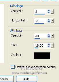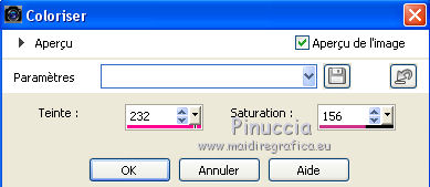 Ce tutoriel a été traduit avec CorelX, mais il peut également être exécuté avec les autres versions. Suivant la version utilisée, vous pouvez obtenir des résultats différents. Depuis la version X4, la fonction Image>Miroir a été remplacée par Image>Renverser horizontalement, et Image>Renverser avec Image>Renverser verticalement. Dans les versions X5 et X6, les fonctions ont été améliorées par la mise à disposition du menu Objets. Dans la nouvelle version X7, nous avons à nouveau Miroir/Renverser, mais avec autres différences. Voir plus les détails à ce sujet ici Certaines dénominations ont changées entre les versions de PSP. Les plus frequentes dénominations utilisées: ![]() Traduction en italien ici Vos versions iciNécessaire pour réaliser ce tutoriel: Matériel qui (les liens des sites des tubeuses ici) ![]() Si vous voulez utiliser vos propres couleurs, n'hésitez pas à changer le mode et l'opacité des calques 1. Ouvrir une nouvelle arrière plan blanc 540 x 540 pixels. ![]() 2. Ouvrir Achtergrond 1 - Édition>Copier. Déplacer l'image un peu plus à gauche.![]() 3. Effets>Effets 3D>Ombre portée, couleur noire. ![]() 4. Ouvrir le tube Band - Édition>Copier. Revenir sur votre travail et Édition>Coller comme nouveau calque. Déplacer le tube à droite.![]() Effets>Effets 3D>Ombre portée, comme précédemment. ![]() 5. Ouvrir le tube bloem 1 - Édition>Copier. Revenir sur votre travail et Édition>Coller comme nouveau calque. Déplacer le tube en haut à droite, sur la bande.![]() Effets>Effets 3D>Ombre portée, comme précédemment. 6. Calques>Dupliquer. Image>Redimensionner, à 80%, redimensionner tous les calques décoché. Déplacer cette fleur au dessous du précédent.![]() 7. Ouvrir le tube CF_457 - Édition>Copier. Revenir sur votre travail et Édition>Coller comme nouveau calque. Déplacer le tube à gauche8. Effets>Effets 3D>Ombre portée, couleur noire. ![]() 9. Placer en avant plan une couleur du tube; pour moi #b52c75. Notes les codes de Tonalité et Saturation. 10. Sur les calques de l'arrière plan, la bande et les fleurs: Réglage>Tonalité et Saturation>Coloriser et copier les codes notés; pour moi. ![]() Résultat ![]() 11. Vous positionner sur le calque de la petite fleur. Calques>Dupliquer. Image>Redimensionner, 4 fois à 80%, redimensionner tous les calques décoché. Réglage>Netteté>Netteté. Calques>Dupliquer - 4 fois, et positionner les fleurs à votre goût,ou voir mon exemple. ![]() 12. Image>Ajouter des bordures, 4 pixels, symétrique, couleur #b52c75. 13. Signer votre travail sur un nouveau calque. . Calques>Fusionner>tous et enregistrer en jpg. Version avec tube de Malkoffee ![]() ![]() Si vous avez des problèmes, ou des doutes, ou vous trouvez un link modifié, ou seulement pour me dire que ce tutoriel vous a plu, vous pouvez m'écrire. 16 Juin 2020 |