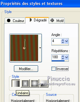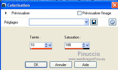 J'ai traduit ce tutoriel avec CorelX12, mais il peut également être exécuté avec les autres versions. Suivant la version utilisée, vous pouvez obtenir des résultats différents. Depuis la version X4, la fonction Image>Miroir a été remplacée par Image>Renverser horizontalement, et Image>Renverser avec Image>Renverser verticalement. Dans les versions X5 et X6, les fonctions ont été améliorées par la mise à disposition du menu Objets. Dans la nouvelle version X7, nous avons à nouveau Miroir et Renverser, mais avec nouvelles différences. Voir le details à ce sujet ici Certaines dénominations ont changées entre les versions de PSP. Les plus frequentes dénominations utilisées: ![]() Traduction en italien ici Vos versions ici Nécessaire pour réaliser ce tutoriel: Matériel qui Le tube est de Zenyra. Le reste du matériel est de Mieke. Modules Externes: consulter, si nécessaire, ma section des filtres ici Filters Unlimited 2.0 qui VM Natural - Starmaker qui L & K landsiteofwonders - Palmyr (nel materiale). Xero - Clarity qui AAA Frames - Foto Frame qui Filtres VM Natural peuvent être utilisés seuls ou importés dans Filters Unlimited. voir comment le faire ici). Si un filtre est fourni avec cette icône, ![]() Si vous voulez utiliser vos propres couleurs, n'hésitez pas à changer le mode et l'opacité des calques Placer la sélection dans le dossier Sélections. Ouvrir le masque en PSP et le minimiser avec le reste du matériel. 1. Placer en avant plan la couleur #76270b, et en arrière plan la couleur #43562c. ![]() 2. Ouvrir une nouvelle image transparente 650 x 500 pixels. Remplir avec la couleur d'avant plan.3. Effets>Modules Externes>L&K landsiteofwonders - L&K Palmyre. ![]() 4. Calques>Nouveau calque raster. Activer l'outil Sélection ![]() (peu importe le type de sélection, parce que avec la sélection personnalisée vous obtenez toujours un rectangle), cliquer sur Sélection personnalisée ![]() et setter ces paramètres. ![]() Remplir la sélection avec la couleur d'arrière plan.Sélections>Modifier>Contracter - 2 pixels. ![]() Remplir avec la couleur d'avant plan.Sélections>Modifier>Contracter - 2 pixels. ![]() Préparer un dégradé de premier plan/arrière plan, style Linéaire. ![]() Remplir du dégradé.Garder sélectionné. 5. Effets>Modules Externes>L&K - L&K Palmyre, comme précédemment. 6. Calques>Nouveau calque raster. Remplir avec la couleur d'avant plan.7. Effets>Modules Externes>VM Natural - Starmaker. ![]() Réduire l'opacité de ce calque à 40%. Sélections>Désélectionner tout. 8. Calques>Fusionner>Fusionner le calque de dessous. Effets>Effets 3D>Ombre portée, couleur noire. ![]() 9. Activer le tube deco21 - Édition>Copier. Revenir sur votre travail et Édition>Coller comme nouveau calque. Déplacer au dessous de la bande.![]() 10. Activer le tube deco22 - Édition>Copier. Revenir sur votre travail et Édition>Coller comme nouveau calque. Déplacer dans le bande.![]() 11. Effets>Effets 3D>Ombre portée, comme précédemment. 12. Fermer le calque d'arrière plan, et rester positionné sur le calque de dessus. Calques>Fusionner>Calques visibles. Re-ouvrir le calque de fond et rester toujours positionné sur le calque de dessus. 13. Calques>Dupliquer. Image>Miroir. Image>Renverser. 14. Activer Deco23 - Édition>Copier. Revenir sur votre travail et Édition>Coller comme nouveau calque. Déplacer à droite.![]() 15. Activer le tube Zenyra_ExotiqueAsie20. Activer l'outil Sélection au lasso ![]() progressivité 20, et sélectionner une partie du tube (pour mon exemple le visage). un fois que vous auriez relâché la touche de la souris, la sélection s'enlargera par effet de la progressivité. ![]() Édition>Copier, et minimiser le tube: on va s'en servir plus tard. 16. Revenir sur votre travail et Édition>Coller comme nouveau calque. Image>Redimensionner, 5 fois à 80%, redimensionner tous les calques décoché. (si nécessaire, répéter pour adapter le tube à la zone du bouton). ![]() 17. Effets>Modules Externes>Xero - Clarity, par défaut. ![]() Réduire l'opacité de ce calque à 50%. Calques>Fusionner>Fusionner le calque de dessous. Effets>Effets 3D>Ombre portée, comme précédemment. 18. Calques>Dupliquer. Image>Miroir. Positionner ce tube à gauche.![]() 19. Activer à nouveau le tube Zenyra_Exotique Asie20. Sélections>Désélectionner tout. Édition>Copier. Revenir sur votre travail et Édition>Coller comme nouveau calque. Image>Redimensionner, 2 fois à 80%, redimensionner tous les calques décoché. Effets>Effets 3D>Ombre portée, comme précédemment. 20. Image>Ajouter des bordures, 2 pixels, symétrique, couleur d'arrière plan. Image>Ajouter des bordures, 2 pixels, symétrique, couleur d'avant plan. Image>Ajouter des bordures, 35 pixels, symétrique, avec une couleur contrastante. Sélectionner ce bord avec la baguette magique , tolérance et progressivité 0.Remplir la sélection du dégradé.21. Effets>Modules Externes>L&K - L&L Palmyre, comme précédemment. ![]() Sélections>Désélectionner tout. 22. Effets>Modules Externes>AAA Frames - Foto frame. ![]() 23. Activer à nouveau le tube deco 21 - Édition>Copier. Revenir sur votre travail et Édition>Coller comme nouveau calque. Image>Redimensionner, à 85%, redimensionner tous les calques décoché. Déplacer le tube dans le cadre.![]() 24. Calques>Dupliquer. Image>Miroir. Image>Renverser. 25. Réglage>Teinte et saturation>Coloriser. ![]() 26. Image>Ajouter des bordures, 2 pixels, symétrique, avec la couleur d'avant plan. 27. Signer votre travail sur un nouveau calque. Calques>Fusionner>Tous et enregistrer en jpg. Version verte. ![]() ![]() Si vous avez des problèmes, ou des doutes, ou vous trouvez un link modifié, ou seulement pour me dire que ce tutoriel vous a plu, vous pouvez m'écrire. 19 Janvier 2015 |