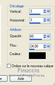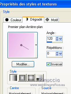 J'ai traduit ce tutoriel avec CorelX12, mais il peut également être exécuté avec les autres versions. Suivant la version utilisée, vous pouvez obtenir des résultats différents. Depuis la version X4, la fonction Image>Miroir a été remplacée par Image>Renverser horizontalement, et Image>Renverser avec Image>Renverser verticalement . Dans les versions X5 et X6, les fonctions ont été améliorées par la mise à disposition du menu Objets. Avec la nouvelle version X7, nous avons encore Image>Miroir et Image>Renverser/Retourner, mais avec nouvelles différences. Voir les détails à ce sujet ici Certaines dénominations ont changées entre les versions de PSP. Les plus frequentes dénominations utilisées: ![]() Traduction en italien ici Vos versions ici Nécessaire pour réaliser ce tutoriel: Matériel qui Il tube è di Guismo. Modules Externes: consulter, si nécessaire, ma section des filtres ici Bordermania - Frame #2 qui ![]() Si vous voulez utiliser vos propres couleurs, n'hésitez pas à changer le mode et l'opacité des calques 1. Placer en avant plan la couleur #f8e6f8, et en arrière plan la couleur #eab2e7. ![]() Préparer un dégradé d'avant plan/arrière plan, style Linéaire. ![]() 2. Ouvrir une nouvelle image transparente 700 x 700 pixels. Sélections>Sélectionner tout. 3. Activer ag-les-107 Édition>Copier. Revenir sur votre travail et Édition>Coller dans la sélection. Sélections>Désélectionner tout. 4. Activer le tube MB-107, Édition>Copier. Revenir sur votre travail et Édition>Coller comme nouveau calque. Déplacer le tube sur le bord inférieur.5. Calques>Dupliquer. Image>Renverser. Calques>Fusionner>Fusionner le calque de dessous. 6. Calques>Dupliquer. Image>Rotation libre - 90 degrés à gauche. ![]() Calques>Fusionner>Fusionner le calque de dessous. Effets>Effets de bords>Accentuer. 7. Réglage>Teinte et Saturation>Coloriser. ![]() 8. Effets>Effets 3D>Ombre portée, couleur noire. ![]() 9. Activer le tube Calguisportraitspring 8310, Édition>Copier. Revenir sur votre travail et Édition>Coller comme nouveau calque. Image>Redimensionner, à 90%, redimensionner tous les calques décoché. 10. Effets>Effets 3D>Ombre portée, couleur noire. ![]() 11. Activer MB_perspective_grid, Édition>Copier. minimiser le tube: vous l'utiliserez encore une fois Revenir sur votre travail et Édition>Coller comme nouveau calque. 12. Calques>Agencer>Déplacer vers le bas. Répeter encore 2 fois. Le calque doit être sur le calque de fond. ![]() 13. Effets>Effets 3D>Ombre portée, couleur noire. ![]() 14. Vous positionner sur le calque du haut de la pile. Activer le tube Klein bloempje, Édition>Copier. Revenir sur votre travail et Édition>Coller comme nouveau calque. Déplacer la fleur sur la branche au dessous du visage.![]() 15. Image>Ajouter des bordures, 5 pixels, symétrique, couleur d'arrière plan. Image>Ajouter des bordures, 45 pixels, symétrique, couleur d'avant plan. 16. Activer l'outil Baguette magique , tolérance et progressivité 0,cliquer sur le bord de 45 pixels pour le sélectionner. 17. calques>Nouveau calque raster. Remplir avec le dégradé.19. À nouveau activer le tube MB_perspective_grid, Édition>Copier. Revenir sur votre travail et Édition>Coller dans la sélection. 20. Effets>Effets 3D>Ombre portée, comme précédemment. 21. Calques>Dupliquer (ou, si vous préférez, Sélections>Transformer la sélection en calque). Sélections>Désélectionner tout. 22. Image>Rotation libre - 45 degrés à gauche. ![]() 23. Calques>Fusionner>Tous. 2 24. Effets>Modules Externes>Bordermania - Frame#2. ![]() 25. Signer votre travail sur un nouveau calque. Calques>Fusionner>Tous et enregistrer en jpg. ![]() Si vous avez des problèmes, ou des doutes, ou vous trouvez un link modifié, ou seulement pour me dire que ce tutoriel vous a plu, vous pouvez m'écrire. 3 Juin 2014 |