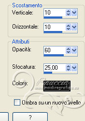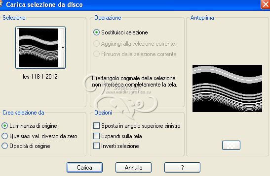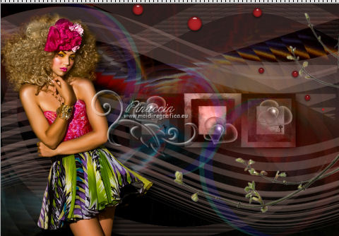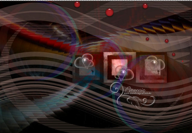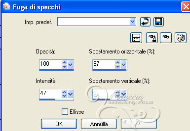 qui puoi trovare qualche risposta ai tuoi dubbi. Se l'argomento che ti interessa non è presente, ti prego di segnalarmelo. Per tradurre questo tutorial ho usato Corel X, ma può essere eseguito con ogni versione di PSP. Dalla versione X4, il comando Immagine>Rifletti è stato sostituito con Immagine>Capovolgi in orizzontale, e il comando Immagine>Capovolgi con Immagine>Capovolgi in verticale. Nelle versioni X5 e X6, le funzioni sono state migliorate rendendo disponibile il menu Oggetti. Con la nuova versione X7, sono tornati Rifletti/Capovolgi, ma con nuove differenze Vedi la scheda sull'argomento qui Le vostre versioni/Vos versions qui Occorrente: Materiale qui Il tube è di Zenyra. ![]() se stai usando altri colori, sperimenta le modalità di miscelatura e opacità più adatte ai tuoi colori Metti le selezioni nella cartella Selezioni. 1. Imposta il colore di primo piano con #bf988d, e il colore di sfondo con il colore nero #000000. ![]() 2. Apri una nuova immagine trasparente 800 x 550 pixels, e riempila con il colore nero.3. Livelli>Nuovo livello raster. Selezione>Seleziona tutto. Apri lo sfondo achtergrond-1 e vai a Modifica>Copia. Torna al tuo lavoro e vai a Modifica>Incolla nella selezione. Selezione>Deseleziona. Abbassa l'opacità di questo livello al 46%. 4. Livelli>Unisci>Unisci giù. 5. Selezione>Carica/Salva selezione>Carica selezione da disco. Cerca e carica la selezione les-118-1-2012. ![]() Livelli>Nuovo livello raster. Imposta il colore di sfondo con #c1988d, e riempi la selezione con questo colore.Selezione>Deseleziona. Cambia la modalità di miscelatura di questo livello in Esclusione, e abbassa l'opacità al 44%. 6. Livelli>Nuovo livello raster. Selezione>Carica/Salva selezione>Carica selezione da disco. Cerca e carica la selezione les-118-2-2012. ![]() Riempi con il colore di primo piano #bf988d.Selezione>Deseleziona. 7. Effetti>Effetti di riflesso>Fuga di specchi. ![]() Abbassa l'opacità di questo livello al 22%. 8. Apri Ring-1 e vai a Modifica>Copia. Torna al tuo lavoro e vai a Modifica>Incolla come nuovo livello. Spostalo nell'angolo in basso a destra.![]() 9. Livelli>Duplica. Immagine>Capovolgi. Immagine>Rifletti. 10. Livelli>Duplica. Immagine>Ridimensiona, all'80%, tutti i livelli non selezionato. Sposta questo cerchio al centro.vuoi essere sicuro che l'immagine si trovi al centro? con Modifica>Taglia e Modifica>Incolla come nuovo livello avrai l'immagine perfettamente al centro. Elimina il livello rimasto vuoto. Abbassa l'opacità dei tre livelli al 14%. 11. Assicurati di essere posizionato sul livello superiore. Apri il tube Blokjes e vai a Modifica>Copia. Torna al tuo lavoro e vai a Modifica>Incolla come nuovo livello. Mantieni la modalità di miscelatura di questo livello in Luminanza (esistente). Sposta il tube un po' più a destra.12. Livelli>Nuovo livello raster. Selezione>Carica/Salva selezione>Carica selezione da disco. Cerca e carica la selezione les-118-3-2012. ![]() Riempi la selezione con il colore di primo piano #bf988d.Selezione>Deseleziona. 13. Effetti>Effetti di trama>Veneziana. ![]() Abbassa l'opacità di questo livello al 24%. 14. Livelli>Nuovo livello raster. Selezione>Carica/Salva selezione>Carica selezione da disco. Cerca e carica la selezione les-118-4-2012. ![]() Riempi la selezione con il colore di primo piano #bf988d.Effetti>Effetti di bordo>Aumenta. 15. Effetti>Effetti di trama>Veneziana, con i settaggi precedenti. Cambia la modalità di miscelatura di questo livello in Filtra, e abbassa l'opacità al 20%. Selezione>Deseleziona. 16. Apri Bolletjes e vai a Modifica>Copia. Torna al tuo lavoro e vai a Modifica>Incolla come nuovo livello. Spostalo nell'angolo in alto a destra.![]() 17. Apri il tube Zenyra - Beauté249 e vai a Modifica>Copia. Torna al tuo lavoro e vai a Modifica>Incolla come nuovo livello. Immagine>Ridimensiona, 2 volte all'80%, e una volta al 90%, tutti i livelli non selezionato. Sposta il tube a sinistra.18. Effetti>Effetti 3D>Sfalsa ombra, con il colore nero. ![]() 19. Apri il tube 509NLF221108 e vai a Modifica>Copia. Torna al tuo lavoro e vai a Modifica>Incolla come nuovo livello. Immagine>Ridimensiona, al 90%, tutti i livelli non selezionato. Immagine>Rifletti. Sposta il tube a destra, un po' fuori dai bordi.![]() 20. Effetti>Effetti 3D>Sfalsa ombra, con i settaggi precedenti. ![]() 21. Immagine>Aggiungi bordatura, 2 pixels, simmetriche, con il colore di primo piano. Immagine>Aggiungi bordatura, 40 pixels, simmetriche, con il colore bianco. Attiva lo strumento Bacchetta magica , sfumatura e tolleranza 0,e clicca nel bordo bianco per selezionarlo. 22. Livelli>Nuovo livello raster. Apri nuovamente l'immagine di sfondo achtergrond-1 e vai a Modifica>Copia. Torna al tuo lavoro e vai a Modifica>Incolla nella selezione. Abbassa l'opacità di questo livello all'85%. Mantieni selezionato. Livelli>Unisci>Unisci giù. 23. Selezione>Inverti. Effetti>Effetti 3D>Sfalsa ombra, con i settaggi precedenti. ![]() Ripeti l'Effetto Sfalsa ombra, cambiando verticale e orizzontale con -10. Selezione>Deseleziona. 24. Immagine>Aggiungi bordatura, 2 pixels, simmetriche, con un colore grigio scuro. Firma il tuo lavoro. Se vuoi: Immagine>Ridimensiona a 800 pixels di larghezza, tutti i livelli selezionato. Salva in formato jpg. Per questo esempio ho usato un tube di Gabry ![]() ![]() Se hai problemi o dubbi, o trovi un link non funzionante, o anche soltanto per un saluto, scrivimi. 26 Maggio 2013 |