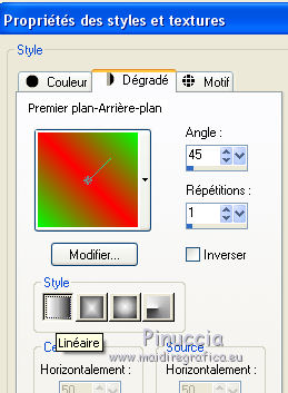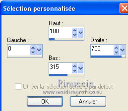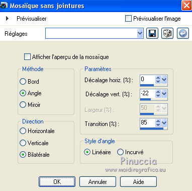 J'ai traduit ce tutoriel avec CorelX12, mais il peut également être exécuté avec les autres versions. Suivant la version utilisée, vous pouvez obtenir des résultats différents. Depuis la version X4, la fonction Image>Miroir a été remplacée par Image>Renverser horizontalement, et Image>Renverser avec Image>Renverser verticalement. Dans les versions X5 et X6, les fonctions ont été améliorées par la mise à disposition du menu Objets. Dans la nouvelle version X7, nous avons à nouveau Miroir et Renverser, mais avec nouvelles différences. Voir le details à ce sujet ici Certaines dénominations ont changées entre les versions de PSP. Les plus frequentes dénominations utilisées: ![]() Traduction en italien ici Vos versions ici Nécessaire pour réaliser ce tutoriel: Matériel qui Pour les tubes merci ClaudiaViza et Athe. Modules Externes: consulter, si nécessaire, ma section des filtres ici AAA Frames - Foto Frame qui Alien Skin Eye Candy 5 Impact - Perspective Shadow qui Filters Unlimited 2.0 qui &<Background Designers IV> (à importer dans Unlimited) qui &<Bkg Kaleidoscope> (à importer dans Unlimited) qui VM Texture qui Filtres VM Texture peuvent être utilisés seuls ou importés dans Filters Unlimited. voir comment le faire ici). Si un filtre est fourni avec cette icône, ![]() Si vous voulez utiliser vos propres couleurs, n'hésitez pas à changer le mode et l'opacité des calques Placer en avant plan la couleur #00ff00, et en arrière plan la couleur #ff0000. ![]() Préparer un dégradé d'avant plan/arrière plan, style Linéaire. ![]() 1. Ouvrir une nouvelle image transparente 700 x 500 pixels. Remplir du dégradé.2. Effets>Modules Externes>Filters Unlimited 2.0 - &<Background Designers IV> - sf10 Slice N Dice. ![]() 3. Calques>Dupliquer. Effets>Modules Externes>Filters Unlimited 2.0 - &<Bkg Kaleidoscope> - Tiler. ![]() 4. Réduire l'opacité de ce calque à 50%. ![]() Calques>Fusionner>Fusionner le calque de dessous. 5. Calques>Dupliquer. Effets>Modules Externes>Filters Unlimited 2.0 - &<Bkg Kaleidoscope> - Zandflower. ![]() Placer le calque en mode Différence. ![]() 6. Effets>Effets de bords>Accentuer. 7. Calques>Nouveau calque raster. Activer l'outil Sélection ![]() (peu importe le type de sélection, parce que avec la sélection personnalisée vous obtenez toujours un rectangle), cliquer sur Sélection personnalisée ![]() et setter ces paramètres. ![]() 8. Placer en avant plan la couleur blanche #ffffff. Remplir la sélection avec la couleur blanche.Sélections>Désélectionner tout. 9. Effets>Modules Externes>Filters Unlimited 2.0 - VM Texture - Cross Weave. ![]() Réduire l'opacité de ce calque à 40%. ![]() 10. Calques>Dupliquer. Image>Renverser. 11. Calques>Fusionner>Fusionner le calque de dessous. Réduire l'opacité de ce calque à 60%. ![]() Effets>Effets de bords>Accentuer davantage. 12. Effets>Effets 3D>Ombre portée, couleur noire. ![]() 13. Calques>Nouveau calque raster. Sélections>Sélectionner tout. Sélections>Modifier>Contracter - 20 pixels. Remplir la sélections avec la couleur blanche.14. Effets>Modules Externes>AAA Frames - Foto Frame. ![]() Réduire l'opacité de ce calque à 24%. ![]() Sélections>Désélectionner tout. 15. Activer rode-rand - Édition>Copier. Revenir sur votre travail et Édition>Coller comme nouveau calque. 16. Effets>Effets d'image>Mosaïque sans jointures. ![]() Déplacer l'image un peu plus en haut,voir mon exemple. Placer le calque en mode Assombrir, et réduire l'opacité à 55%. ![]() 17. Activer deco124 - Édition>Copier. Revenir sur votre travail et Édition>Coller comme nouveau calque. Déplacer à droite.Placer le calque en mode Assombrir, et réduire l'opacité à 44%. ![]() 18. Activer le tube athe-FL4 - Édition>Copier. Revenir sur votre travail et Édition>Coller comme nouveau calque. Image>Redimensionner, 3 fois à 80%, redimensionner tous les calques décoché. Déplacer le tube en bas à droite.![]() 19. Effets>Modules Externes>Alien Skin Eye Candy 5 Impact - Perspective Shadow. Sélectionner le preset Drop Shadow Blurry et ok. ![]() 20. Activer le tube tubeclaudiaviza-mujer2608 - Édition>Copier. Revenir sur votre travail et Édition>Coller comme nouveau calque. Image>Redimensionner, 3 fois à 80%, redimensionner tous les calques décoché. Image>Miroir. Déplacer le tube à gauche.21. Effets>Modules Externes>Alien Skin Eye Candy 5 Impact - Perspective Shadow, comme précédemment. 22. Image>Ajouter des bordures, 2 pixels, symétrique, couleur noire. Signer votre travail et enregistrer en jpg. Les tubes de cette version sont de Thafs et Jring's Pngs. ![]() ![]() Si vous avez des problèmes, ou des doutes, ou vous trouvez un link modifié, ou seulement pour me dire que ce tutoriel vous a plu, vous pouvez m'écrire. 10 Aôut 2014 |
