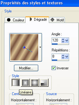 Préparer un dégradé de premier plan/arrière plan, style Linéaire.