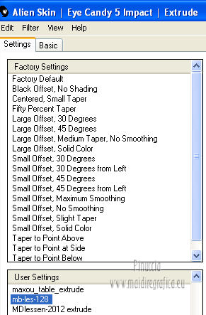 Placer le preset dans le dossier du filtre Alien Skin Eye Candy 5 Impact>Settings>Extrude.