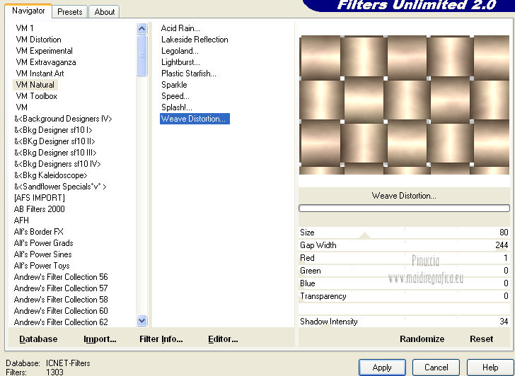 5. Effets>Modules Externes>Filters Unlimited 2.0 - VM Natural - Weave Distortion.