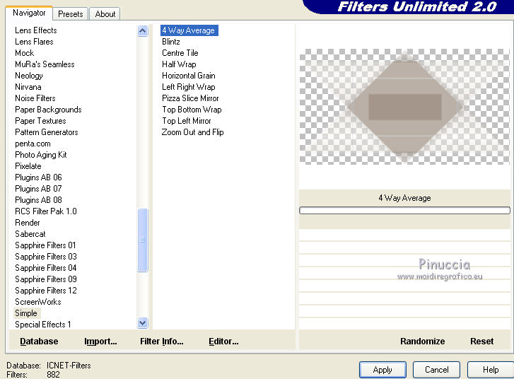 10. Effets>Modules Externes>Filters Unlimited 2.0 - Simple - 4Way Average.