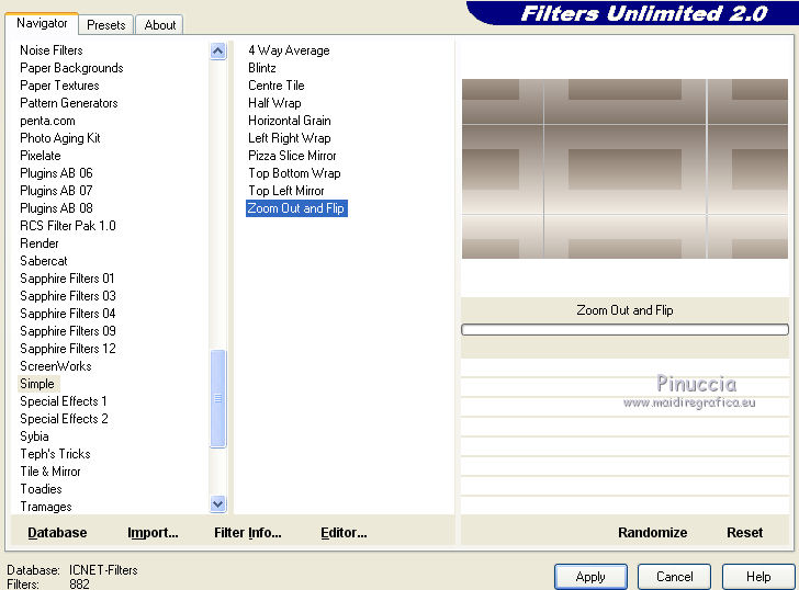 5. Effets>Modules Externes>Filters Unlimited 2.0 - Simple - Zoom out and flip