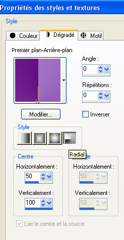 Préparer un dégradé d'avant plan/arrière plan, style Radial.