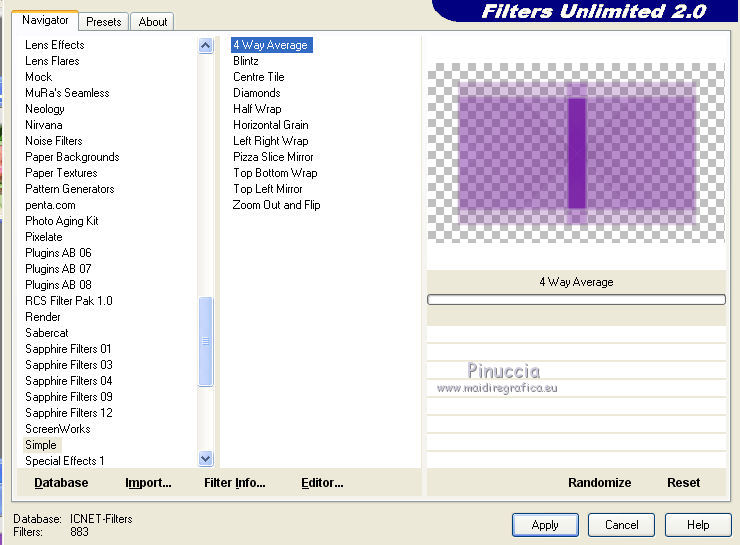 8. Effets>Modules Externes>Filters Unlimited 2.0 - Simple - 4Way Average.