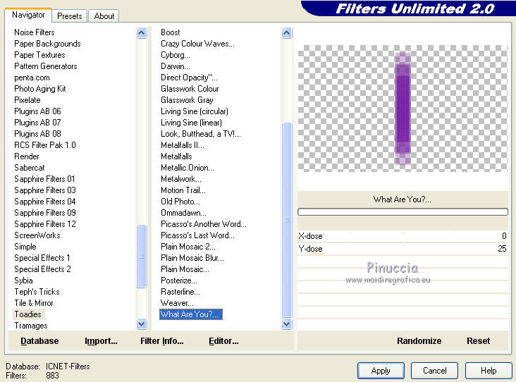 13. Effets>Modules Externes>Filters Unlimited 2.0 - Toadies - What are you.