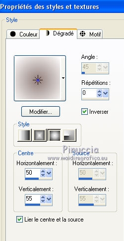 Dans la palette Styles et textures cliquer sur les petites palettes pour inverser les couleurs du dégradé