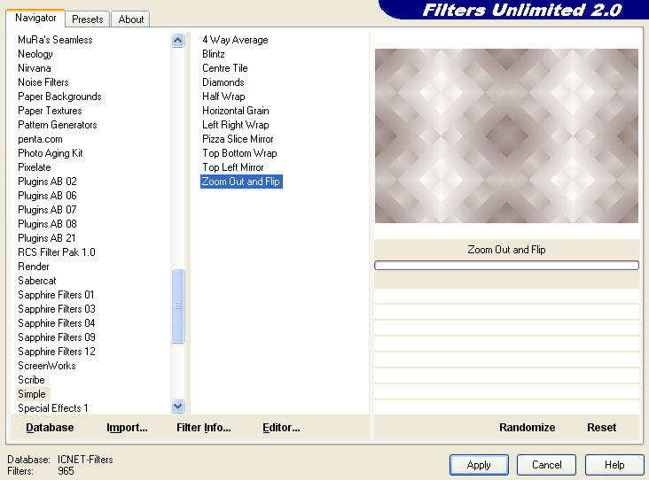 3. Effets>Modules Externes>Filters Unlimited 2.0 - Simple - Zoom out and flip.