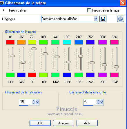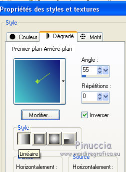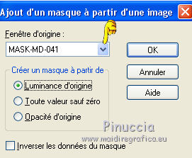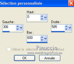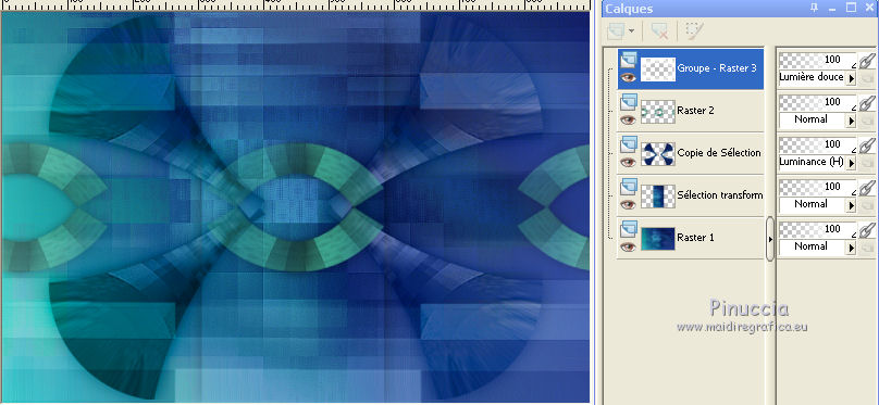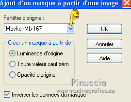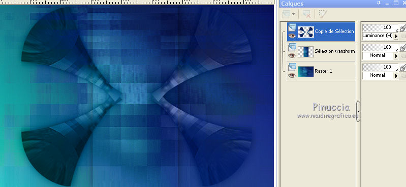 J'ai traduit ce tutoriel avec CorelX12, mais il peut également être exécuté avec les autres versions. Suivant la version utilisée, vous pouvez obtenir des résultats différents. Depuis la version X4, la fonction Image>Miroir a été remplacée par Image>Renverser horizontalement, et Image>Renverser avec Image>Renverser verticalement . Dans les versions X5 et X6, les fonctions ont été améliorées par la mise à disposition du menu Objets. Avec la nouvelle version X7, nous avons encore Image>Miroir et Image>Renverser/Retourner, mais avec nouvelles différences. Voir les détails à ce sujet ici Certaines dénominations ont changées entre les versions de PSP. Les plus frequentes dénominations utilisées: ![]() Traduction en italien ici Vos versions ici Nécessaire pour réaliser ce tutoriel: Matériel qui Pour le tube merci Kamalini. Modules Externes: consulter, si nécessaire, ma section des filtres ici Flaming Pear - Flexify 2 qui Adjust - Variations qui ![]() Si vous voulez utiliser vos propres couleurs, n'hésitez pas à changer le mode et l'opacité des calques Ouvrir les masques en PSP et les minimiser avec le reste du matériel. 1. Placer en avant plan la couleur #131478, et en arrière plan la couleur #4cd2d0. ![]() Préparer un dégradé d'avant plan/arrière plan, style Linéaire. ![]() 2. Ouvrir une nouvelle image transparente 900 x 600 pixels, Remplir du dégradé.3. Calques>Nouveau calque raster. Sélections>Sélectionner tout. 4. Activer ag-167 - Édition>Copier. Revenir sur votre travail eet Édition>Coller dans la sélection. Sélections>Désélectionner tout. 5. Réglage>Teinte et Saturation>Glissement de la teinte. ![]() Dans le tutoriel j'ai utilisé cet effet. Avec le filtre Nik Software - Bi-color filters, vous pouver jouer avec autres combinations de couleurs de ce fond 6. Placer le calque en mode Recouvrement. Calques>Fusionner>Fusionner le calque de dessous. 7. Activer l'outil Sélection ![]() (peu importe le type de sélection, parce que avec la sélection personnalisée vous obtenez toujours un rectangle), cliquer sur Sélection personnalisée ![]() et setter ces paramètres. ![]() Sélections>Transformer la sélection en calque. Sélections>Désélectionner tout. 8. Effets>Effets 3D>Ombre portée, couleur noire. ![]() 9. Calques>Dupliquer. Effets>Modules Externes>Flaming Pear - Flexify 2. ![]() 10. Image>Redimensionner - à 90%, redimensionner tous les calques décoché. 11. Effets>Effets d'image>Décalage. ![]() 12. Effets>Effets 3D>Ombre portée, couleur noire. ![]() 13. Calques>Dupliquer. Image>Miroir. Calques>Fusionner>Fusionner le calque de dessous. 14. Calques>Dupliquer. Image>Renverser. Calques>Fusionner>Fusionner le calque de dessous. 15. Placer le calque en mode Luminance (héritée). ![]() 16. Activer deco-1-167, Édition>Copier. Revenir sur votre travail et Édition>Coller comme nouveau calque. 17. Effets>Effets d'image>Mosaïque sans jointures - Côte à côte. ![]() 18. Placer en avant plan la couleur blanche #ffffff. ![]() Calques>Nouveau calque raster. Remplir avec la couleur blanche.19. Calques>Nouveau calque de masque>A partir d'une image. Ouvrir le menu deroulant sous la fenêtre d'origine et vous verrez la liste des images ouverts. Charger le masque Masker-Mb-167. ![]() Calques>Fusionner>Fusionner le groupe. Placer le calque en mode Lumière douce. ![]() 20. Calques>Nouveau calque raster. Remplir avec la couleur blanche.21. Calques>Nouveau calque de masque>A partir d'une image. Ouvrir le menu deroulant sous la fenêtre d'origine et charger le masque MASK-MD-041. ![]() Calques>Fusionner>Fusionner le groupe. Réglage>Netteté>Netteté. 22. Image>Ajouter des bordures, 1 pixel, symétrique, couleur foncée #131478. Image>Ajouter des bordures, 2 pixels, symétrique, couleur blanche. Image>Ajouter des bordures, 1 pixel, symétrique, couleur foncée #131478. 23. Sélections>Sélectionner tout. Image>Ajouter des bordures, 50 pixels, symétrique, couleur blanche. Effets>Effets 3D>Ombre portée, couleur noire. ![]() Sélections>Désélectionner tout. 24. Effets>Modules Externes>Adjust - Variations. Un clic sur Original pour anuler précédentes réglages mémorisés par le filtre, un clic sur Darker et ok. 25. Activer kamalini-174.png, Édition>Copier. Revenir sur votre travail et Édition>Coller comme nouveau calque. Déplacer le tube à droite.26. Effets>Effets 3D>Ombre portée, couleur noire. ![]() 27. Image>Ajouter des bordures, 1 pixel, symétrique, couleur foncée #131478. Signer votre travail sur un nouveau calque. 28. Calques>Fusionner>Tous. Image>Redimensionner, à 900 pixels de largeur. Enregistrer en jpg. Les tubes de cettes versions sont de Criss ![]() Animabelle ![]() ![]() Si vous avez des problèmes, ou des doutes, ou vous trouvez un link modifié, ou seulement pour me dire que ce tutoriel vous a plu, vous pouvez m'écrire. 29 Aôut 2014 |
