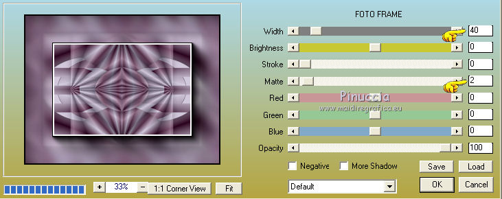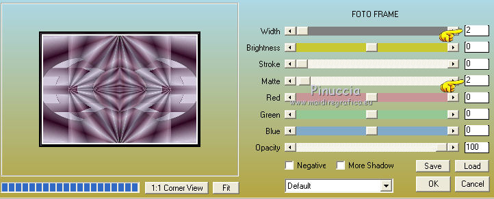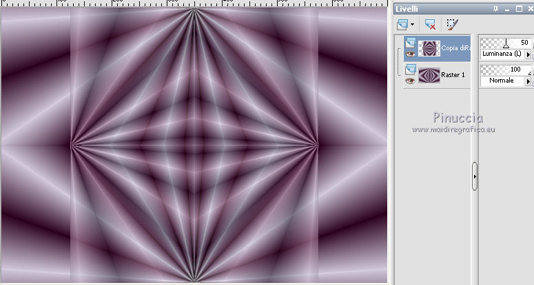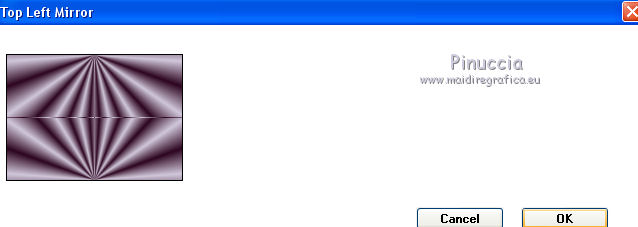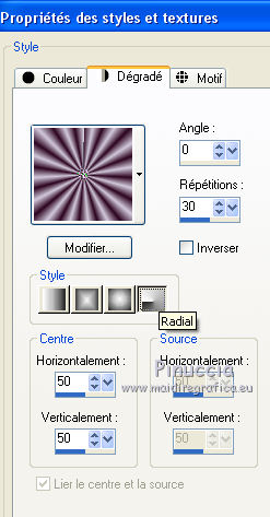 Ce tutoriel a été créé avec CorelX17, mais il peut également être exécuté avec les autres versions. Pour traduire le tutoriel j'ai utilisé CorelX et CorelX2. Suivant la version utilisée, vous pouvez obtenir des résultats différents. Depuis la version X4, la fonction Image>Miroir a été remplacée par Image>Renverser horizontalement, et Image>Renverser avec Image>Renverser verticalement. Dans les versions X5 et X6, les fonctions ont été améliorées par la mise à disposition du menu Objets. Dans la nouvelle version X7, nous avons à nouveau Miroir/Renverser, mais avec autres différences. Voir plus les détails à ce sujet ici Certaines dénominations ont changées entre les versions de PSP. Les plus frequentes dénominations utilisées: ![]() Traduction en italien ici Vos versions ici Nécessaire pour réaliser ce tutoriel: Matériel qui Le tube utilisé est de K@rine Modules Externes consulter, si nécessaire, ma section de filtre ici Filters Unlimited 2.0 ici Simple - Top Bottom Wrap (bonus) ici Simple - Top Left Mirror, Centre Tile ici Flaming Pear - Flexify 2 ici Carolaine and Sensibility - CS-Linear-H ici AAA Frames - Foto Frame ici Filtres Simple peuvent être utilisés seuls ou importés dans Filters Unlimited. voir comment le faire ici). Si un filtre est fourni avec cette icône, Suivant le s.o., la version de PSP et aussi la version d'Unlimited utilisés (est en circulation une version d'Unlimited qui n'a pas besoin d'installation et est composée de file en format .8bf) vous pourrez obtenir des résultats différents. ![]() Si vous voulez utiliser vos propres couleurs, n'hésitez pas à changer le mode et l'opacité des calques Dans les nouvelles versions de PSP vous ne trouvez pas le dégradé de premier plan/arrière plan (Corel_06_029). Les dégradés des versions précédentes ici Placer la sélection dans le dossier Sélections. 1. Placer en avant plan la couleur #2d0520, et en arrière plan la couleur #d1c8db. ![]() Préparer un dégradé de premier plan/arrière plan, style Radial. ![]() 2. Ouvrir une nouvelle image transparente 700 x 500 pixels et remplir l'image du dégradé.3. Effets>Modules Externes>Simple - Top Bottom Wrap. Effets>Modules Externes>Simple - Top Left Mirror. ![]() 4. Effets>Effets de bords>Accentuer davantage. 5. Calques>Dupliquer. Image>Rotation libre - 90 degrés à droite. ![]() 6. Image>Redimensionner, à 90%, redimensionner tous les calques décoché. Placer le calque en mode Luminance (héritée) et réduire l'opacité à 50%. ![]() 7. Effets>Effets 3D>Ombre portée, couleur noire. ![]() 8. Calques>Dupliquer. Effets>Modules Externes>Flaming Pear - Flexify 2. ![]() 9. Effets>Effets 3D>Ombre portée, couleur noire. ![]() 10. Vous positionner sur le calque du bas de la pile - Raster 1. Sélections>Charger/Enregistrer une sélection>Charger à partir du disque. Chercher et charger la sélection mb-177-1. ![]() Sélections>Transformer la sélection en calque. Sélections>Désélectionner tout. 11. À nouveau Effets>Modules Externes>Flaming Pear - Flexify 2, comme précédemment. ![]() 12. Effets>Modules Externes>Carolaine and Sensibility - CS-Linear-H. ![]() 13. Effets>Effets 3D>Ombre portée, couleur noire. ![]() 14. Calques>Dupliquer. Image>Miroir. 15. Image>Ajouter des bordures, 1 pixel, symétrique, couleur foncée. Image>Ajouter des bordures, 75 pixels, symétrique, couleur claire. 16. Activer l'outil Baguette magique , tolérance et progressivité 0,et cliquer sur le bord de 75 pixels pour le sélectionner. 17. Effets>Modules Externes>Simple - Centre Tile. 18. Réglage>Flou>Flou gaussien - rayon 15. ![]() 19. Sélections>Inverser. 20. Effets>Modules Externes>AAA Frames - Foto Frame. ![]() 21. Effets>Effets 3D>Ombre portée, couleur noire. ![]() Sélections>Désélectionner tout. 22. Effets>Modules Externes>AAA Frames - Foto Frame. ![]() 23. Activer le tube OBG_GIRL_838, Édition>Copier. Revenir sur votre travail et Édition>Coller comme nouveau calque. Effacer le watermark. 24. Image>Redimensionner, à 60%, redimensionner tous les calques décoché. Réglage>Netteté>Davantage de netteté. Déplacer le tube à droite, voir l'exemple final.25. Effets>Effets 3D>Ombre portée, couleur noire. ![]() 26. Activer le tube 0_7efcf_5b4f41a5_L, Édition>Copier. Revenir sur votre travail et Édition>Coller comme nouveau calque. 27. Image>Redimensionner, à 60%, redimensionner tous les calques décoché. Déplacer le tube en bas à gauche, voir l'exemple finale.28. Calques>Dupliquer. Image>Redimensionner, à 80%, redimensionner tous les calques décoché. Positionnner bien le tube. Voir l'exemple final.29. Calques>Fusionner>Fusionner le calque de dessous. 30. Effets>Effets 3D>Ombre portée, couleur noire. ![]() 31. Signer votre travail sur un nouveau calque. 32. Image>Ajouter des bordures, 1 pixel, symétrique, couleur foncée. Enregistrer en jpg. Les tubes de cette version sont de Verlaine et Tatie. ![]() ![]() Si vous avez des problèmes, ou des doutes, ou vous trouvez un link modifié, ou seulement pour me dire que ce tutoriel vous a plu, vous pouvez m'écrire. 14 Avril 2015 |