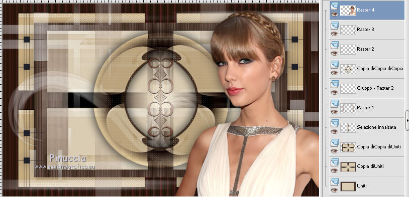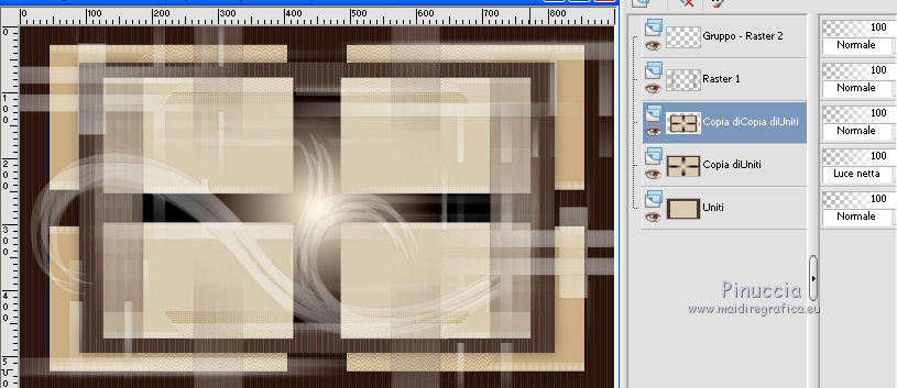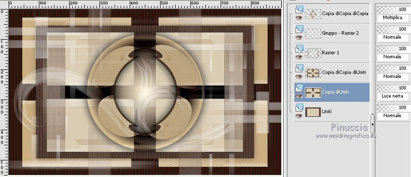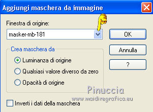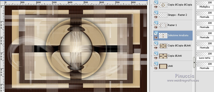 qui puoi trovare qualche risposta ai tuoi dubbi. Se l'argomento che ti interessa non è presente, ti prego di segnalarmelo. Il tutorial è stato creato con CorelX17, ma può essere eseguito con ogni versione di PSP. Dalla versione X4, il comando Immagine>Rifletti è stato sostituito con Immagine>Capovolgi in orizzontale, e il comando Immagine>Capovolgi con Immagine>Capovolgi in verticale. Nelle versioni X5 e X6, le funzioni sono state migliorate rendendo disponibile il menu Oggetti. Con la nuova versione X7, sono tornati Rifletti/Capovolgi, ma con nuove differenze Vedi la scheda sull'argomento qui Per tradurre questo tutorial ho usato PSP X. traduction en français qui Le vostre versioni qui Occorrente: Materiale qui Per il tube grazie Kamalini. Filtri in caso di dubbi, ricorda di consultare la mia sezione filtri qui Filters Unlimited 2.0 qui &<Bkg Kaleidoscope> - Cake mix (da importare in Unlimited) qui AP 01 [Innovations] - Lines SilverLining qui Toadies - Weaver qui AFS Import - sqborder2 qui Flaming Pear - Flexify 2 qui I filtri Toadies e AFS Import si possono usare da soli o importati in Filters Unlimited (come fare vedi qui) Se un filtro fornito appare con questa icona Secondo il sistema operativo, la versione di PSP e anche la versione di Unlimited che stai usando (circola in rete una versione che non si installa, ma è composta da files in formato 8bf), potresti ottenere dei risultati differenti. ![]() se stai usando altri colori, sperimenta le modalità di miscelatura e opacità più adatte ai tuoi colori Metti le selezioni nella cartella Selezioni. Apri la maschera in PSP e minimizzala con il resto del materiale. 1. Imposta il colore di primo piano con #daccb3, e il colore di sfondo con #48362d. ![]() 2. Apri una nuova immagine trasparente 900 x 550 pixels, ![]() e riempila con il colore di sfondo #48362d.3. Livelli>Nuovo livello raster. Riempi con il colore di primo piano #daccb3.4. Immagine>Ridimensiona, all'80%, tutti i livelli non selezionato. 5. Effetti>Plugins>Filters Unlimited 2.0 - [AFS IMPORT] - sqborder2. ![]() 6. Livelli>Unisci>Unisci visibile. 7. Livelli>Duplica. Effetti>Plugins>Filters Unlimited 2.0 - &<Bkg Kaleidoscope> - Cake Mix. ![]() 8. Selezione>Carica/Salva selezione>Carica selezione da disco. Cerca e carica la selezione mb-les-181-1. ![]() Modalità di corrispondenza dello strumento Riempimento su Nessuno![]() e basterà un solo clic per riempire le selezioni con il colore chiaro di primo piano.9. Effetti>Plugins>AP 01 [Innovation] - Lines SilverLining. ![]() Selezione>Deseleziona. 10. Attiva lo strumento Bacchetta magica , sfumatura e tolleranza 0,e clicca nel bordo esterno per selezionarlo. ![]() 11. Effetti>Plugins>AP 01 [Innovation] - Lines SilverLining. ![]() 12. Effetti>Effetti di bordo>Aumenta. Selezione>Deseleziona. 13. Livelli>Duplica. Immagine>Ridimensiona, all'80%, tutti i livelli non selezionato. 14. Effetti>Effetti 3D>Sfalsa ombra, colore nero. ![]() 15. Apri deco-1.png, e vai a Modifica>Copia. Torna al tuo lavoro e vai a Modifica>Incolla come nuovo livello. 16. Livelli>Nuovo livello raster. Imposta il colore di primo piano con il colore bianco #ffffff, e riempi il livello con il colore bianco.17. Livelli>Nuovo livello maschera>Da immagine. Apri il menu sotto la finestra di origine e vedrai la lista dei files aperti. Seleziona la maschera masker-mb-181.jpg. ![]() Livelli>Unisci>Unisci gruppo. Regola>Messa a fuoco>Accentua messa a fuoco. 18. Cambia la modalità di miscelatura del livello copia di Uniti (il secondo dal basso) in Luce netta. e attiva il livello della seconda copia di Uniti (il terzo livello dal basso). ![]() 19. Livelli>Duplica. Effetti>Plugins>Flaming Pear - Flexify 2. ![]() 20. Immagine>Ridimensiona, al 70%, tutti i livelli non selezionato. 21. Effetti>Plugins>AP 01 [Innovation] - Lines SilverLining. ![]() 22. Effetti>Effetti 3D>Sfalsa ombra, colore nero. ![]() 23. Livelli>Disponi>Porta in alto. Cambia la modalità di miscelatura di questo livello in Moltiplica. Attiva nuovamente il livello copia di Uniti (il secondo dal basso). ![]() 24. Selezione>Carica/Salva selezione>Carica selezione da disco. Cerca e carica la selezione mb-les-181-3. ![]() Selezione>Innalza selezione a livello. 25. Effetti>Plugins>Filters Unlimited 2.0 - Toadies - Weaver, con i settaggi standard. ![]() Selezione>Deseleziona. Livelli>Disponi>Sposta su. ![]() Attiva il livello superiore. 26. Apri deco-181-2, e vai a Modifica>Copia. Torna al tuo lavoro e vai a Modifica>Incolla come nuovo livello. 27. Apri deco-181-3, e vai a Modifica>Copia. Torna al tuo lavoro e vai a Modifica>Incolla come nuovo livello. 28. Effetti>Effetti 3D>Sfalsa ombra, colore nero. ![]() 29. Apri il tube Kamalini-435, e vai a Modifica>Copia. Torna al tuo lavoro e vai a Modifica>Incolla come nuovo livello. 30. Immagine>Ridimensiona, all'85%, tutti i livelli non selezionato. Spostalo il tube a destra.![]() 31. Effetti>Effetti 3D>Sfalsa ombra, colore nero. ![]() 32. Riporta il colore di primo piano al colore chiaro #daccb3. Immagine>Aggiungi bordatura, 1 pixel, simmetriche, colore chiaro. Immagine>Aggiungi bordatura, 1 pixel, simmetriche, colore scuro. Immagine>Aggiungi bordatura, 50 pixels, simmetriche, colore chiaro. 33. Attiva lo strumento Bacchetta magica ![]() e clicca nel bordo da 50 pixels per selezionarlo. 34. Effetti>Effetti 3D>Ritaglio, colore nero. ![]() 35. Selezione>Inverti. Effetti>Effetti 3D>Sfalsa ombra, colore nero. ![]() Selezione>Deseleziona. 36. Immagine>Aggiungi bordatura, 1 pixel, simmetriche, colore scuro. 37. Firma il tuo lavoro su un nuovo livello. Immagine>Ridimensiona, 900 pixels di larghezza, tutti i livelli selezionato. Salva in formato jpg. Per questa versione ho usato un tube di Colybrix. ![]() ![]() Se hai problemi o dubbi, o trovi un link non funzionante, o anche soltanto per un saluto, scrivimi. 3 Giugno 2015 |