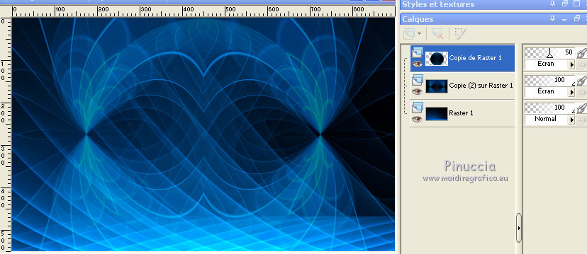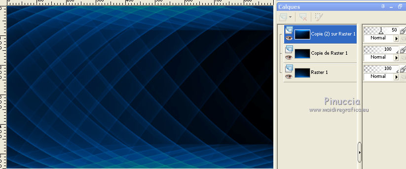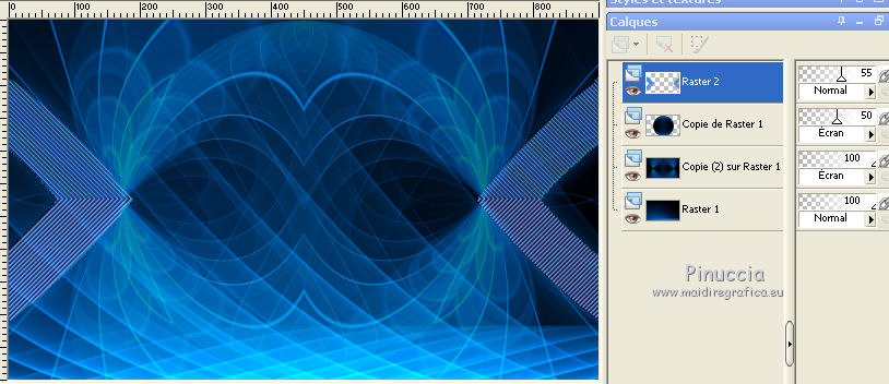 Ce tutoriel a été créé avec CorelX17, mais il peut également être exécuté avec les autres versions. Pour traduire le tutoriel j'ai utilisé CorelX et CorelX2. Suivant la version utilisée, vous pouvez obtenir des résultats différents. Depuis la version X4, la fonction Image>Miroir a été remplacée par Image>Renverser horizontalement, et Image>Renverser avec Image>Renverser verticalement. Dans les versions X5 et X6, les fonctions ont été améliorées par la mise à disposition du menu Objets. Dans la nouvelle version X7, nous avons à nouveau Miroir/Renverser, mais avec autres différences. Voir plus les détails à ce sujet ici Certaines dénominations ont changées entre les versions de PSP. Les plus frequentes dénominations utilisées: ![]() Traduction en italien ici Vos versions ici Nécessaire pour réaliser ce tutoriel: Matériel qui Le tube est de Kamaline (version en blue) et Grisi (version en rouge) Modules Externes consulter, si nécessaire, ma section de filtre ici Filters Unlimited 2.0 ici &<Bkg Kaleidoscope> - 4QFlip Upper R(da importare in Unlimited) ici Graphics Plus ici AAA Frames - Texture Frame ici Flaming Pear - Flexify 2 ici Filtres Graphics Plus peuvent être utilisés seuls ou importés dans Filters Unlimited. voir comment le faire ici). Si un filtre est fourni avec cette icône, ![]() Si vous voulez utiliser vos propres couleurs, n'hésitez pas à changer le mode et l'opacité des calques Placer le preset Emboss 3 dans le dossier Paramètres par défaut. 1. Placer en avant plan la couleur #065097, et en arrière plan la couleur #ffffff. ![]() 2. Ouvrir une nouvelle image transparente 900 x 550 pixels. ![]() 3. Sélections>Sélectionner tout. Activer deco-ag-185 (version blue) si vous préférez, vous pouvez utiliser la version rouge, ou coloriser avec votre couleur). Édition>Copier. Revenir sur votre travail et Édition>Coller dans la sélection. Sélections>Désélectionner tout. 4. Calques>Dupliquer - 2 fois. 5. Image>Renverser, et vous devriez avoir ce-ci. ![]() 6. Réduire l'opacité de ce calque à 50%. ![]() 7. Calques>Fusionner>Fusionner le calque de dessous. 8. Effets>Filtre personnalisé, sélectionner le preset Emboss 3 et ok. ![]() (ou, si vous préférez: Réglage>Netteté>Davantage de netteté 2 fois). 9. Effets>Modules Externes>Filters Unlimited 2.0 - &<Bkg Kaleidoscope> - 4Q Flip UpperR. ![]() 10. Calques>Dupliquer. Effets>Modules Externes>Flaming Pear - Flexify 2. ![]() 11. Placer le calque en mode Luminance (héritée) (ou Écran, en fonction des vos couleurs). 12. Vous positionner sur le calque central Copie de Raster 1. Effets>Effets géométriques>Cercle. ![]() 13. Calques>Agencer>Placer en haut de la pile. Placer le calque en mode Écran et réduire l'opacité à 50%. ![]() 14. Activer deco-1-185 (vous pouvez choisir la version blue ou la version rouge) et Édition>Copier. revenir sur votre travail et Édition>Coller comme nouveau calque. Réduire l'opacité de ce calque entre 50 et 60%. ![]() 15. Calques>Dupliquer. Effets>Modules Externes>Flaming Pear - Flexify 2. ![]() 16. Image>Ajouter des bordures, 1 pixels, symétrique, couleur foncée #065097. Image>Ajouter des bordures, 1 pixel, symétrique, couleur blanche #ffffff. Image>Ajouter des bordures, 1 pixel, symétrique, couleur foncée #065097. 17. Édition>Copier. 18. Sélections>Sélectionner tout. Image>Ajouter des bordures, 50 pixels, symétrique, couleur blanche #ffffff. Sélections>Inverser. avant de continuer, voir l'avis en bas du tutoriel 19. Calques>Nouveau calque raster. Édition>Coller dans la sélection. 20. Réglage>Flou>Flour radial. ![]() 21. Effets>Modules Externes>Graphics Plus - Cross Shadow, par défaut. ![]() 22. Calques>Fusionner>Fusionner le calque de dessous. 23. Sélections>Inverser. Effets>Modules Externes>AAA Frames - Foto Frame. ![]() 24. Effets>Effets 3D>Ombre portée, couleur noire. ![]() Sélections>Désélectionner tout. 25. Activer le tube Kamalini-447—of Grisi_Woman_842, (ou Grisi_Woman_842 pour la version rouge) - Édition>Copier. Revenir sur votre travail et Édition>Coller comme nouveau calque. Image>Miroir. Image>Redimensionner, à votre convenance (pour l'exemple 60%), redimensionner tous les calques décoché. 26. Effets>Effets 3D>Ombre portée, couleur noire. ![]() 27. Réglage>Netteté>Netteté (si nécessaire). 28. Calques>Fusionner>Tous. 29. Effets>Modules Externes>AAA Frames - Foto Frame, comme précédemment. ![]() 30. Signer votre travail sur un nouveau calque. 31. Enregistrer en jpg. ci-dessous le résultat en suivant le tutoriel de l'étape 19 comme le tuto original. ![]() Mais la version original du tutoriel est différente. Pour obtenir une versione comme l'originale, à partir de l'étape 19, j'ai fait ces variantes. À vous décider comme poursuivre. 19. Sans ajouter le calque: Édition>Coller dans la sélection. 20. Réglage>Flou>Flou radial. ![]() 21. Effets>Modules Externes>Graphics Plus - Cross Shadow, par défaut. ![]() 22. Sélections>Inverser. 23. Effets>Effets 3D>Ombre portée, couleur noire. ![]() Sélections>Désélectionner tout. 24. Activer le tube Kamalini-447—of Grisi_Woman_842, (ou Grisi_Woman_842 pour la version rouge) - Édition>Copier. Revenir sur votre travail et Édition>Coller comme nouveau calque. Image>Miroir. Image>Redimensionner, à votre convenance (pour l'exemple 60%), redimensionner tous les calques décoché. Positionner bien le tube.26. Effets>Effets 3D>Ombre portée, couleur noire. ![]() 27. Réglage>Netteté>Netteté (si nécessaire). 28. Calques>Fusionner>Tous. 29. Effets>Modules Externes>AAA Frames - Foto Frame. ![]() 30. Signer votre travail sur un nouveau calque. 31. Enregistrer en jpg. Version en rouge avec le tube de Grisi. ![]() ![]() Si vous avez des problèmes, ou des doutes, ou vous trouvez un link modifié, ou seulement pour me dire que ce tutoriel vous a plu, vous pouvez m'écrire. 18 Août 2015 |