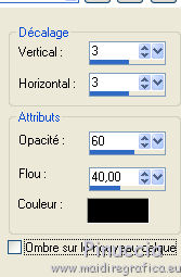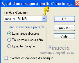 Ce tutoriel a été créé avec CorelX17, mais il peut également être exécuté avec les autres versions. Pour traduire le tutoriel j'ai utilisé CorelX et CorelX2. Suivant la version utilisée, vous pouvez obtenir des résultats différents. Depuis la version X4, la fonction Image>Miroir a été remplacée par Image>Renverser horizontalement, et Image>Renverser avec Image>Renverser verticalement. Dans les versions X5 et X6, les fonctions ont été améliorées par la mise à disposition du menu Objets. Dans la nouvelle version X7, nous avons à nouveau Miroir/Renverser, mais avec autres différences. Voir plus les détails à ce sujet ici Certaines dénominations ont changées entre les versions de PSP. Les plus frequentes dénominations utilisées: ![]() Traduction en italien ici Vos versions ici Nécessaire pour réaliser ce tutoriel: Matériel qui Les tubes sont de Maryse, Leny e Ida. Le reste du matériel (tubes agneaux, deco et masque) sont de Mieke. Modules Externes consulter, si nécessaire, ma section de filtre ici AP 01 [Innovations] - Lines SilverLining ici Flaming Pear - Flood ici ![]() Si vous voulez utiliser vos propres couleurs, n'hésitez pas à changer le mode et l'opacité des calques Dans les plus récentes versions de PSP, vous ne trouvez pas le dégradé d'avant plan/arrière plan ou Corel_06_029. Vous pouvez utiliser le dégradé des versions antérieures. Ici le dossier Dégradés de CorelX. Placer le preset Emboss 9 dans le dossier Paramètres par défaut. Ouvrir le masque dans PSP et le minimiser avec le reste du matériel. 1. Placer en avant plan la couleur #31506c et en arrière plan la couleur #c4cdda. ![]() Préparer en avant plan un dégradé de premier plan/arrière plan, style Radial. ![]() 2. Ouvrir une nouvelle image transparente 900 x 500 pixels. ![]() Remplir l'image transparente du dégradé.3. Calques>Dupliquer. Image>Renverser. Réduire l'opacité de ce calque à 50%. Calques>Fusionner>Fusionner le calque de dessous. 4. Effets>Effets de bords>Accentuer davantage. 5. Effets>Modules Externes>AP 01 [Innovations] - Lines SilverLining. ![]() 6. Calques>Nouveau calque raster. Placer en avant plan la couleur blanche #ffffff, et remplir le calque avec cette couleur.7. Calques>Nouveau calque de masque>A partir d'une image. Ouvrir le menu deroulant sous la fenêtre d'origine et vous verrez la liste des images ouvertes. Sélectionner le masque masker-194-MB. ![]() Calques>Fusionner>Fusionner le groupe. 8. Réduire l'opacité de ce calque à 40% (ou à votre convenance). 9. Effets>Filtre personnalisé - sélectionner le preset Emboss 9 et ok. ![]() 10. Ouvrir rondje-deco-1-194.png - Édition>Copier. Revenir sur votre travail et Édition>Coller comme nouveau calque. 11. Sélections>Sélectionner tout. Sélections>Flottante. Sélections>Statique. 12. Calques>Nouveau calque raster. Effets>Effets 3D>Découpe. ![]() Garder sélectionné. 13. Ouvrir le tube Leny-pasen26.png, effacer le watermark - Édition>Copier. Revenir sur votre travail et Édition>Coller comme nouveau calque. Image>Redimensionner, à 75%, redimensionner tous les calques décoché. si votre tube depasse le cercle: Sélections>Inverser et presser CANC sur le clavier Sélections>Désélectionner tout. 14. Effets>Modules Externes>Flaming Pear - Flood. ![]() Calques>Agencer>Déplacer vers le bas. 15. Vous positionner sur le calque du haut de la pile. Calques>Fusionner>Fusionner le calque de dessous - 2 fois. 16. Effets>Effets 3D>Ombre portée, couleur d'avant plan #31506c. ![]() 17. Ouvrir deco-3-194.png - Édition>Copier. Revenir sur votre travail et Édition>Coller comme nouveau calque. 18. Effets>Effets d'image>Décalage. ![]() 19. Calques>Dupliquer. Image>Miroir. Calques>Fusionner>Fusionner le calque de dessous. 20. Effets>Effets 3D>Ombre portée, couleur noire. ![]() 21. Ouvrir rand-deco-2-194-2016.png - Édition>Copier. Revenir sur votre travail et Édition>Coller comme nouveau calque. 22. Ouvrir le tube MR_Lily for Two.png, effacer le watermark - Édition>Copier. Revenir sur votre travail et Édition>Coller comme nouveau calque. Image>Redimensionner, à 75%, redimensionner tous les calques décoché. pour mon exemple j'ai redimensionné encore une fois à 85% Déplacer le tube en bas à gauche.23. Effets>Effets 3D>Ombre portée, couleur noire. ![]() 24. Ouvrir lammetje1.png - Édition>Copier. Revenir sur votre travail et Édition>Coller comme nouveau calque. pour mon exemple j'ai redimensionner à 115%. Déplacer en bas à droite.25. Ouvrir lammetje2.png - Édition>Copier. Revenir sur votre travail et Édition>Coller comme nouveau calque. pour mon exemple j'ai redimensionner à 115%. Déplacer en bas à droite.![]() 26. Ouvrir Idavilinder.png - Édition>Copier. Revenir sur votre travail et Édition>Coller comme nouveau calque. Image>Redimensionner, à 75%, redimensionner tous les calques décoché. Déplacer en haut à droite.Effets>Effets 3D>Ombre portée, comme précédemment. 27. Image>Ajouter des bordures, 2 pixels, symétrique, couleur d'avant plan #31506c. Image>Ajouter des borduers, 4 pixels, symétrique, couleur blanche. Image>Ajouter des bordures, 2 pixels, symétrique, couleur d'avant plan. 28. Sélections>Sélectionner tout. Image>Ajouter des bordures, 40 pixels, symétrique, couleur blanche. 29. Effets>Effets 3D>Ombre portée, couleur noire. ![]() Sélections>Désélectionner tout. 30. Signer votre travail sur un nouveau calque. Calques>Fusionner>Tous et enregistrer en jpg. ![]() Si vous avez des problèmes, ou des doutes, ou vous trouvez un link modifié, ou seulement pour me dire que ce tutoriel vous a plu, vous pouvez m'écrire. 3 Mai 2016 |