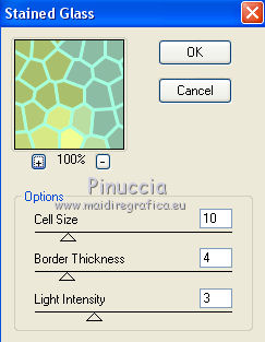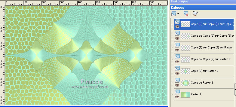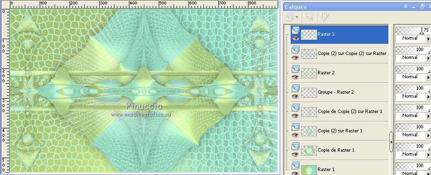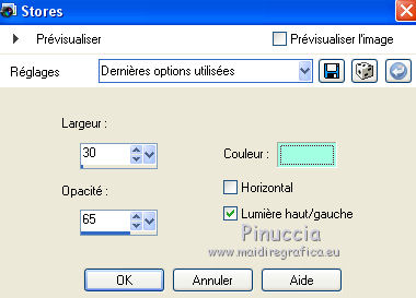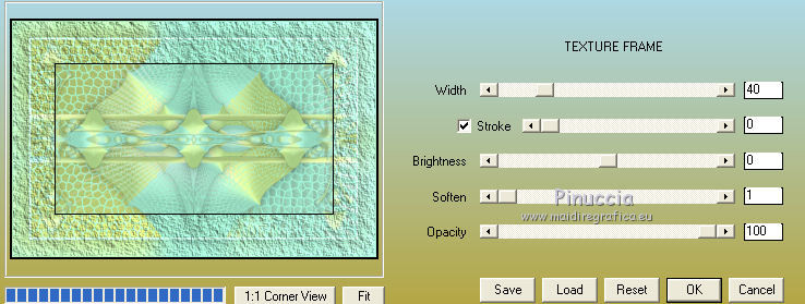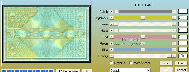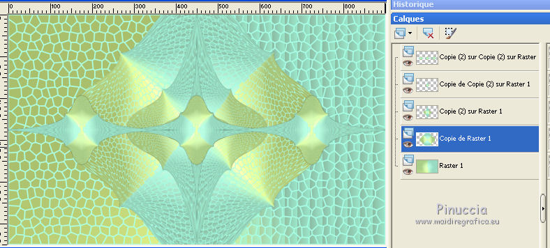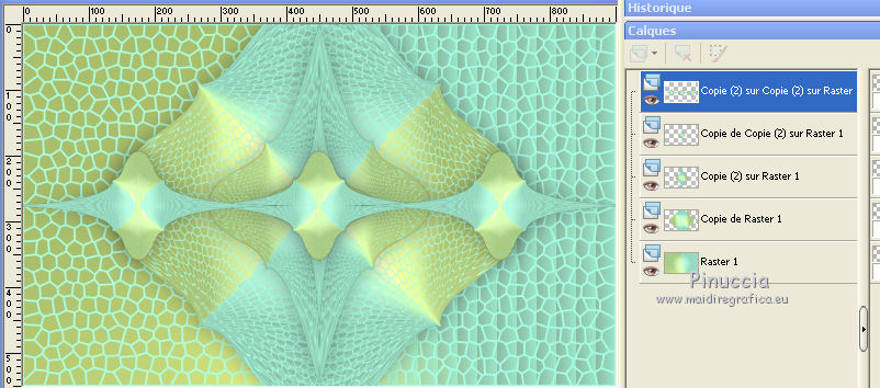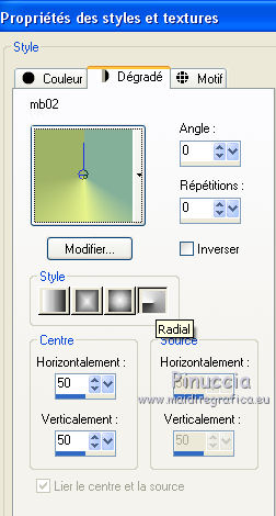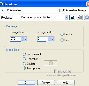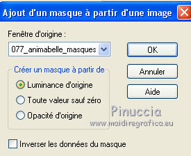 Ce tutoriel a été créé avec CorelX17, mais il peut également être exécuté avec les autres versions. Pour traduire le tutoriel j'ai utilisé CorelX pour l'italien et CorelX17 pour le français. Suivant la version utilisée, vous pouvez obtenir des résultats différents. Depuis la version X4, la fonction Image>Miroir a été remplacée par Image>Renverser horizontalement, et Image>Renverser avec Image>Renverser verticalement. Dans les versions X5 et X6, les fonctions ont été améliorées par la mise à disposition du menu Objets. Dans la nouvelle version X7, nous avons à nouveau Miroir/Renverser, mais avec autres différences. Voir plus les détails à ce sujet ici Certaines dénominations ont changées entre les versions de PSP. Les plus frequentes dénominations utilisées: ![]() Traduction en italien ici Vos versions ici Nécessaire pour réaliser ce tutoriel: Matériel qui Pour le tube merci Kamalini. Modules Externes consulter, si nécessaire, ma section de filtre ici AAA Frames - Foto Frame, Texture Frame ici Flaming Pear - Flexify 2 ici Textures - Stained Glass ici ![]() Si vous voulez utiliser vos propres couleurs, n'hésitez pas à changer le mode et l'opacité des calques Dans les plus récentes versions de PSP, vous ne trouvez pas le dégradé d'avant plan/arrière plan ou Corel_06_029. Vous pouvez utiliser le dégradé des versions antérieures. Ici le dossier Dégradés de CorelX. Placer le dégradé dans le dossier Dégradés. Ouvrir le masque dans PSP et le minimiser avec le reste du matériel. 1. Placer en avant plan la couleur #a3f4e1 et en arrière plan la couleur #ffffff. ![]() Préparer en avant plan un dégradé de premier plan/arrière plan, style Radial. ![]() 2. Ouvrir une nouvelle image transparente 900 x 550 pixels. ![]() Remplir l'image transparente du dégradé.3. Effets>Modules Externes>Textures - Stained Glass ![]() si vous utilisez la version française du filtre: Effets>Modules Externes>Textures>Vitrail. Voir les notes sur ce filtre ici 4. Activer l'outil Sélection ![]() (peu importe le type de sélection, parce que avec la sélection personnalisée vous obtenez toujours un rectangle), cliquer sur Sélection personnalisée ![]() et setter ces paramètres. ![]() 5. Effets>Effets de textures>Stores, couleur d'avant plan #a3f4e1. ![]() 6. Sélections>Désélectionner tout. 7. Calques>Dupliquer. 8. Effets>Effets géométriques>Cercle. ![]() Image>Miroir. 9. Effets>Modules Externes>Flaming Pear - Flexify 2. ![]() si vous avez des problèmes à trouver le preset, vous positionner sur le premier nom de la liste, et, sur le clavier, cliquer sur la lettre initiale du preset jusqu'à ce que vous le trouvez. Voir les notes sur ce filtre ici 10.Calques>Dupliquer. 11. Effets>Modules Externes>Flaming Pear - Flexify 2. ![]() 12 Calques>Dupliquer. 13. Effets>Modules Externes>Flaming Pear - Flexify 2, comme précédemment. ![]() ![]() 14. Calques>Dupliquer. 15. Image>Rotation libre - 90 degrés à gauche. ![]() 16. Calques>Dupliquer. 17. Effets>Effets d'image>Décalage. ![]() 18. Calques>Dupliquer. Image>Miroir. ![]() 19. Calques>Fusionner>Fusionner le calque de dessous - 2 fois. 20. Vous positionner sur le calque Copie de Raster 1. ![]() 21. Effets>Effets 3D>Ombre portée, couleur noire. ![]() 22. Vous positionner sur le calque de dessus (copie 2 de Raster 1). Édition>Répéter Ombre portée. Vous positionner sur le calque de dessus (copie 3 de Raster 1). Édition>Répéter Ombre portée. Vous positionner sur le calque de dessus (copy 4 de Raster 1). Édition>Répéter Ombre portée. ![]() 23. Calques>Nouveau calque raster. Remplir avec la couleur d'arrière plan #ffffff.24. Calques>Nouveau calque de masque>A partir d'une image. Ouvrir le menu deroulant sous la fenêtre d'origine et vous verrez la liste des images ouvertes. Sélectionner le masque 077-animabelle-masques,psp. ![]() Calques>Fusionner>Fusionner le groupe. Réglage>Netteté>Netteté. 25. Calques>Agencer>Déplacer vers le bas. 26. Ouvrir deco-1-204.psp - Édition>Copier. Revenir sur votre travail et Édition>Coller comme nouveau calque. 27. Vous positionner sur le calque du haut de la pile. Ouvrir deco-2-204.psp - Édition>Copier. Revenir sur votre travail et Édition>Coller comme nouveau calque. Réduire l'opacité de ce calque à 75%. ![]() 28. Image>Ajouter des bordures, 1 pixel, symétrique, couleur d'avant plan. Image>Ajouter des bordures, 2 pixels, symétrique, couleur blanche. Image>Ajouter des bordures, 1 pixel, symétrique, couleur d'avant plan. 29. Édition>Copier. 30. Sélections>Sélectionner tout. Image>Ajouter des bordures, 50 pixels, symétrique, couleur blanche. 31. Sélections>Inverser. 32. Édition>Coller dans la sélection. 33. Réglage>Flou>Flou gaussien - rayon 25. ![]() 34. Sélections>Inverser. 35. Effets>Effets 3D>Ombre portée, comme précédemment. ![]() 36. Sélections>Désélectionner tout. 37. Effets>Modules Externes>AAA Frames - Texture Frame. ![]() 38. Effets>Modules Externes>AAA Frames - Foto Frame. ![]() 39. Ouvrir le tube Kamalini-092.psp - Édition>Copier. Revenir sur votre travail et Édition>Coller comme nouveau calque. Effacer le watermark. 40. Image>Miroir. Image>Redimensionner, à 65%, redimensionner tous les calques décoché. Réglage>Netteté>Netteté. Positionner bien le tube.41. Effets>Effets 3D>Ombre portée, comme précédemment. ![]() Édition>Répéter Ombre portée. 42. Signer votre travail sur un nouveau calque. Calques>Fusionner>Tous et enregistrer en jpg. Le tube de cette version est de Thafs ![]() ![]() Si vous avez des problèmes, ou des doutes, ou vous trouvez un link modifié, ou seulement pour me dire que ce tutoriel vous a plu, vous pouvez m'écrire. 13 Mars 2017 |