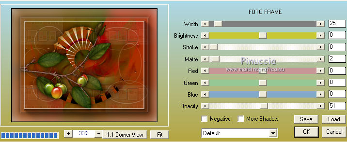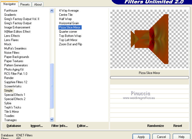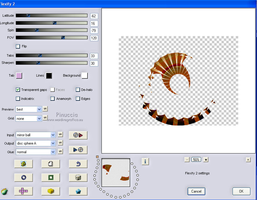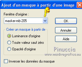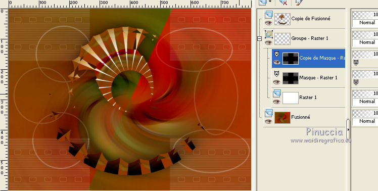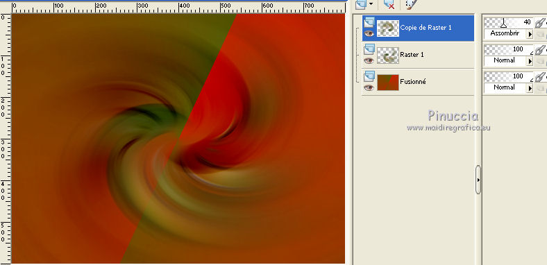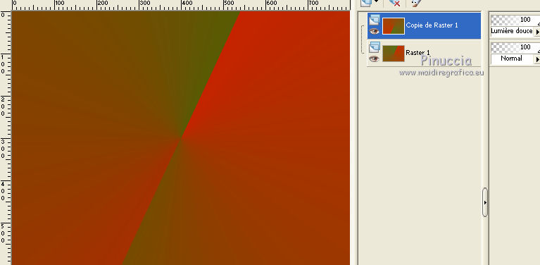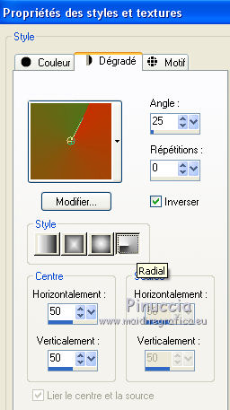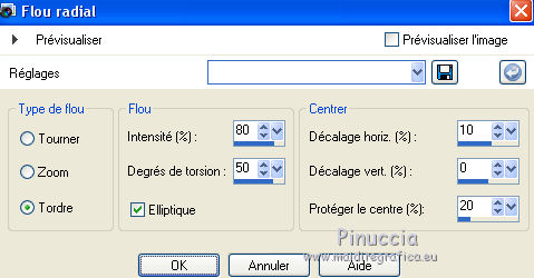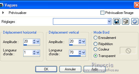 Ce tutoriel a été créé avec CorelX17, mais il peut également être exécuté avec les autres versions. Pour traduire le tutoriel j'ai utilisé CorelX pour l'italien et CorelX17 pour le français. Suivant la version utilisée, vous pouvez obtenir des résultats différents. Depuis la version X4, la fonction Image>Miroir a été remplacée par Image>Renverser horizontalement, et Image>Renverser avec Image>Renverser verticalement. Dans les versions X5 et X6, les fonctions ont été améliorées par la mise à disposition du menu Objets. Dans la nouvelle version X7, nous avons à nouveau Miroir/Renverser, mais avec autres différences. Voir plus les détails à ce sujet ici Certaines dénominations ont changées entre les versions de PSP. Les plus frequentes dénominations utilisées: ![]() Traduction en italien ici Vos versions ici Nécessaire pour réaliser ce tutoriel: Matériel qui Modules Externes consulter, si nécessaire, ma section de filtre ici AAA Frames - Foto Frame ici Flaming Pear - Flexify 2 ici Filters Unlimited 2.0 ici Simple - Pizza Slice Mirror ici Filtres Simple peuvent être utilisés seuls ou importés dans Filters Unlimited. voir comment le faire ici). Si un filtre est fourni avec cette icône, ![]() Si vous voulez utiliser vos propres couleurs, n'hésitez pas à changer le mode et l'opacité des calques Dans les plus récentes versions de PSP, vous ne trouvez pas le dégradé d'avant plan/arrière plan ou Corel_06_029. Vous pouvez utiliser le dégradé des versions antérieures. Ici le dossier Dégradés de CorelX. Ouvrir le masque dans PSP et le minimiser avec le reste du matériel. 1. Placer en avant plan la couleur #52721a et en arrière plan la couleur #c53100. ![]() Préparer en avant plan un dégradé de premier plan/arrière plan, style Radial. ![]() 2. Ouvrir une nouvelle image transparente 800 x 600 pixels. ![]() Remplir l'image transparente du dégradé.3. Calques>Dupliquer. Image>Miroir. Image>Renverser. 4. Placer le calque en mode Lumière douce. ![]() 5. Calques>Fusionner>Calques visibles. 6. Ouvrir le tube 545f9312.png - Édition>Copier. ne pas fermer le tube; on va s'en servir plus tard Revenir sur votre travail et Édition>Coller comme nouveau calque. 7. Réglage>Flou>Flou radial. ![]() 8. Calques>Dupliquer. Image>Miroir. Image>Renverser. 9. Placer le calque en mode Assombrir et réduire l'opacité à 40%. ![]() 10. Calques>Fusionner>Calques visibles. 11. Calques>Dupliquer. 12. Image>Redimensionner, 2 fois à 80%, redimensionner tous les calques décoché. ![]() 13. Image>Rotation libre - 90 degrés à droite. ![]() 14. Effets>Modules Externes>Filters Unlimited 2.0 - Simple - Pizza Slice Mirror. ![]() 15. Effets>Modules Externes>Flaming Pear - Flexify 2 ![]() si vous ne trouvez pas le preset, sélectionner le premier preset de la liste ![]() et cliquer - sur le clavier - la lettre "D" (initiale du preset) jusqu'à voir Disc Sphere A (avec ma version de Flexify j'ai cliqué 7 fois). ![]() ***** Si encore vous avez des problèmes avec les réglages, placer mon preset (que vous trouvez ici) dans un dossier à choix. Ouvrir Flexify 2 et cliquer sur le bouton rouge. Chercher, dans le dossier où vous l'avez copié, le preset et ok. ![]() ![]() ***** 16. Effets>Effets d'image>Décalage. ![]() 17. Effets>Effets 3D>Ombre portée, couleur noire. ![]() 18. Vous positionner sur le calque du bas de la pile (Fusionné). 19. Placer en avant plan la couleur blanche #ffffff. Calques>Nouveau calque raster. Remplir le calque avec la couleur blanche.20. Calques>Nouveau calque de masque>A partir d'une image. Ouvrir le menu deroulant sous la fenêtre d'origine et vous verrez la liste des images ouvertes. Sélectionner le masque masker-mb-205. ![]() Calques>Dupliquer. ![]() Calques>Fusionner>Fusionner le groupe. 21. Effets>Effets 3D>Ombre portée, comme précédemment. ![]() 22. Ouvrir deco-mb-329 - Édition>Copier. Revenir sur votre travail et Édition>Coller comme nouveau calque. Placer le calque en mode Luminance (héritée). 23. Ouvrir deco-mb-328 - Édition>Copier. Revenir sur votre travail et Édition>Coller comme nouveau calque. Placer le calque en mode Luminance (héritée). 24. Vous positionner sur le calque du bas de la pile (Fusionné). Activer l'outil Sélection ![]() (peu importe le type de sélection, parce que avec la sélection personnalisée vous obtenez toujours un rectangle), cliquer sur Sélection personnalisée ![]() et setter ces paramètres. ![]() 25. Sélections>Transformer la sélection en calque. Sélections>Désélectionner tout. 26. Effets>Effets de distorsion>Vagues. ![]() 27. Effets>Effets d'image>Décalage. ![]() 28. Calques>Dupliquer. Image>Miroir. 29. Vous positionner sur le calque du haut de la pile. Activer à nouveau le tube 545f9312.png - Édition>Copier. Revenir sur votre travail et Édition>Coller comme nouveau calque. Déplacer le tube à gauche.30. Effets>Effets 3D>Ombre portée, couleur noire. ![]() 31. Image>Ajouter des bordures, 1 pixel, symétrique, couleur blanche #ffffff. 32. Édition>Copier. 33. Sélections>Sélectionner tout. 34. Effets>Modules Externes>AAA Frames - Foto Frame. ![]() 35. Image>Ajouter des bordures, 50 pixels, symétrique, couleur blanche #ffffff. Sélections>Inverser. Édition>Coller dans la sélection. 36. Réglage>Flou>Flou gaussien - rayon 30. ![]() 37. Sélections>Inverser. Effets>Effets 3D>Ombre portée, comme précédemment. ![]() 38. Sélections>Désélectionner tout. 39. Effets>Modules Externes>AAA Frames - Foto Frame. ![]() 40. Signer votre travail sur un nouveau calque. Enregistrer en jpg. Le tube de cette version est de Danimage ![]() ![]() Si vous avez des problèmes, ou des doutes, ou vous trouvez un link modifié, ou seulement pour me dire que ce tutoriel vous a plu, vous pouvez m'écrire. 11 Avril 2017 |