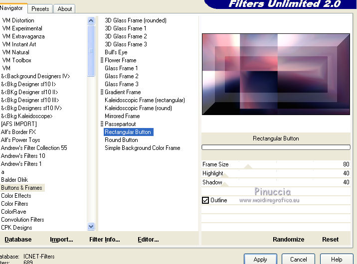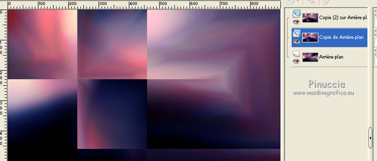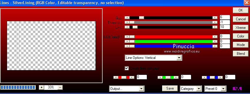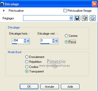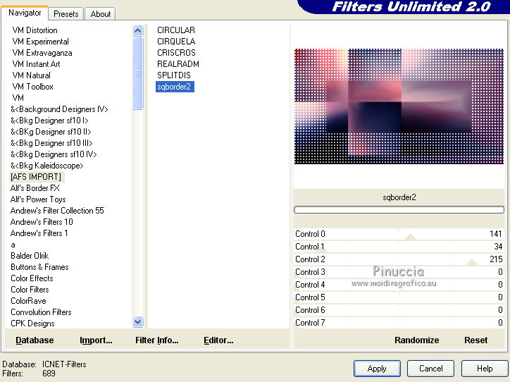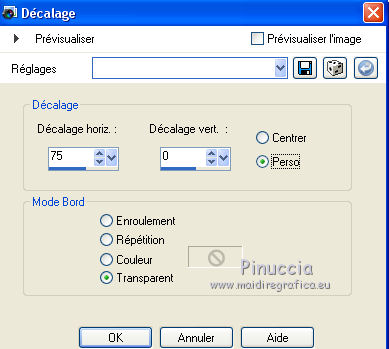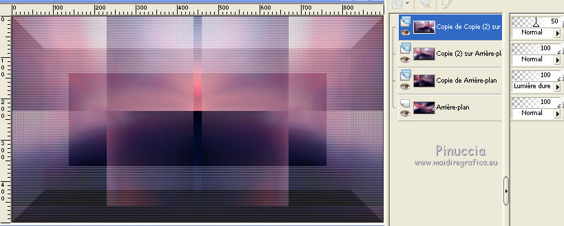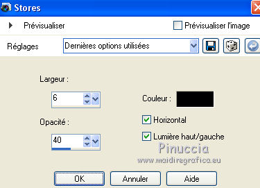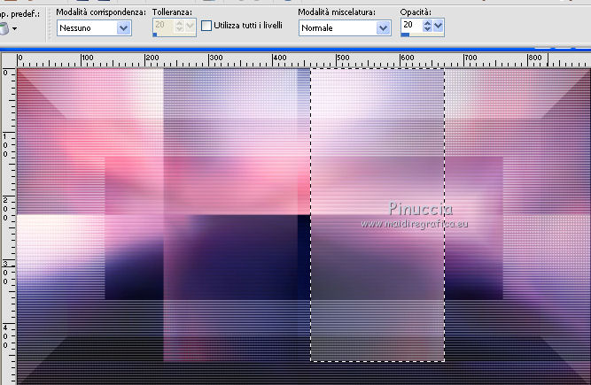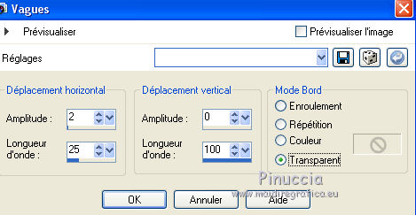 Ce tutoriel a été créé avec CorelX17, mais il peut également être exécuté avec les autres versions. Pour traduire le tutoriel j'ai utilisé CorelX17 pour l'italien et CorelX2 pour le français. Suivant la version utilisée, vous pouvez obtenir des résultats différents. Depuis la version X4, la fonction Image>Miroir a été remplacée par Image>Renverser horizontalement, et Image>Renverser avec Image>Renverser verticalement. Dans les versions X5 et X6, les fonctions ont été améliorées par la mise à disposition du menu Objets. Dans la nouvelle version X7, nous avons à nouveau Miroir/Renverser, mais avec autres différences. Voir plus les détails à ce sujet ici Certaines dénominations ont changées entre les versions de PSP. Les plus frequentes dénominations utilisées: ![]() Traduction en italien ici Vos versions ici Nécessaire pour réaliser ce tutoriel: Matériel qui Pour le tube merci Riet. Modules Externes consulter, si nécessaire, ma section de filtre ici Filters Unlimited 2.0 ici AFS IMPORT - sqborder2 ici AP 01 [Innovations] - Lines SilverLining ici Filtres AFS IMPORT peuvent être utilisés seuls ou importés dans Filters Unlimited. voir comment le faire ici). Si un filtre est fourni avec cette icône, ![]() Si vous voulez utiliser vos propres couleurs, n'hésitez pas à changer le mode et l'opacité des calques Ouvrir le masque dans PSP et le minimiser avec le reste du matériel. 1. Ouvrir ag-10. FenÊtre>Dupliquer, ou sur le clavier shift+d pour faire une copie. ![]() Fermer l'original. La copie sera la base de votre travail. 2. Calques>Dupliquer. Effets>Modules Externes>Mehdi - Sorting Tiles. ![]() 3. Calques>Dupliquer. Vous positionner sur le calque de dessous - copie de Arrière plan. ![]() 4. Effets>Effets de textures>Stores, couleur noire. ![]() 5. Placer le calque en mode Lumière dure (pour le moment vous ne voyez pas différences). ![]() 6. Vous positionner sur le calque du haut de la pile (copie 2 sur Arrière-plan). Effets>Modules Externes>Filters Unlimited 2.0 - AFS IMPORT - sqborder2, par défaut. ![]() 8. Effets>Modules Externes>Filters Unlimited 2.0 - Buttons & Frames - Rectangular Button. ![]() 9. Calques>Dupliquer. Image>Miroir. Réduire l'opacité de ce calque à 50%. ![]() 10. Calques>Fusionner>Fusionner le calque de dessous. 11. Placer le calque en mode Écran. ![]() 12. Calques>Nouveau calque raster. Activer l'outil Sélection ![]() (peu importe le type de sélection, parce que avec la sélection personnalisée vous obtenez toujours un rectangle), cliquer sur Sélection personnalisée ![]() et setter ces paramètres. ![]() 13. Placer en avant plan la couleur blanche. Réduire l'opacité de l'outil Pot de peinture à 20 et remplir la sélection avec la couleur blanche.![]() Sélections>Désélectionner tout. 14. Effets>Effets de distorsion>Vagues. ![]() 15. Calques>Dupliquer. Effets>Effets d'image>Décalage. ![]() 16. Calques>Nouveau calque raster. Sélection personnalisée ![]() ![]() 17. Remplir la sélection avec la couleur blanche, opacité toujours à 20.![]() Sélections>Désélectionner tout. 18. Effets>Modules Externes>AP 01 (Innovations) - Lines SilverLining. ![]() 19. Calques>Dupliquer. Effets>Effets d'image>Décalage. ![]() Calques>Fusionner>Fusionner le calque de dessous. 20. Calques>Dupliquer. Effets>Effets d'image>Décalage. ![]() Calques>Fusionner>Fusionner le calque de dessous. 21. Calques>Nouveau calque raster. Placer à nouveau l'opacité de l'outil Pot de peinture à 100, et remplir le calque avec la couleur blanche.22. Calques>Nouveau calque de masque>A partir d'une image. Ouvrir le menu deroulant sous la fenêtre d'origine et vous verrez la liste des images ouvertes. Sélectionner le masque masker 1. ![]() Calques>Fusionner>Fusionner le groupe. 23. Ouvrir deco-1.png - Édition>Copier. Revenir sur votre travail et Édition>Coller comme nouveau calque. Il est à sa place. 24. Ouvrir deco-2.png - Édition>Copier. Revenir sur votre travail et Édition>Coller comme nouveau calque. Déplacer le tube à droite - voir mon exemple.25. Ouvrir deco-3.png - Édition>Copier. Revenir sur votre travail et Édition>Coller comme nouveau calque. Déplacer le tube à gauche - voir mon exemple.Calques>Agencer>Déplacer vers le bas - 2 fois. ![]() 26. Vous positionner sur le calque du haut de la pile. Ouvrir tekst-deco-2.png - Édition>Copier. Revenir sur votre travail et Édition>Coller comme nouveau calque. Déplacer le tube à droite - voir mon exemple.Placer le calque en mode Recouvrement. ![]() 27. Image>Ajouter des bordures, 1 pixel, symétrique, couleur noire. Image>Ajouter des bordures, 5 pixels, symétrique, couleur blanche. Image>Ajouter des bordures, 1 pixel, symétrique, couleur noire. Image>Ajouter des bordures, 45 pixels, symétrique, couleur blanche. Image>Ajouter des bordures, 1 pixel, symétrique, couleur noire. 28. Ouvrir le tube Riet_288_110317.psp - Édition>Copier. Revenir sur votre travail et Édition>Coller comme nouveau calque. Effacer le watermark. Image>Redimensionner, à 70%, redimensionner tous les calques décoché. Positionner bien le tube.Effets>Effets 3D>Ombre portée, à choix. 29. Signer votre travail sur un nouveau calque. Calques>Fusionner>Tous et enregistrer en jpg. ![]() Si vous avez des problèmes, ou des doutes, ou vous trouvez un link modifié, ou seulement pour me dire que ce tutoriel vous a plu, vous pouvez m'écrire. 23 Août 2017 |