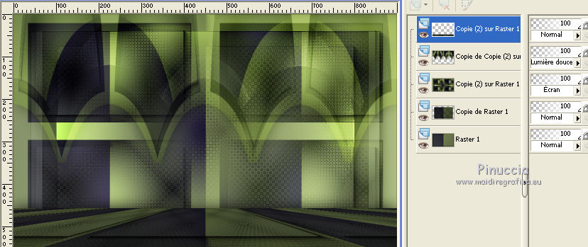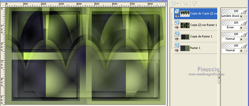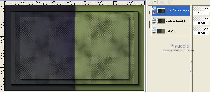 Ce tutoriel a été créé avec CorelX17, mais il peut également être exécuté avec les autres versions. Pour traduire le tutoriel j'ai utilisé CorelX17 pour l'italien et CorelX2 pour le français. Suivant la version utilisée, vous pouvez obtenir des résultats différents. Depuis la version X4, la fonction Image>Miroir a été remplacée par Image>Renverser horizontalement, et Image>Renverser avec Image>Renverser verticalement. Dans les versions X5 et X6, les fonctions ont été améliorées par la mise à disposition du menu Objets. Dans la nouvelle version X7, nous avons à nouveau Miroir/Renverser, mais avec autres différences. Voir plus les détails à ce sujet ici Certaines dénominations ont changées entre les versions de PSP. Les plus frequentes dénominations utilisées: ![]() Traduction en italien ici Vos versions ici Nécessaire pour réaliser ce tutoriel: Matériel qui Modules Externes consulter, si nécessaire, ma section de filtre ici Filters Unlimited 2.0 ici &<Bkg Kaleidoscope> - Cake mix (à importer dans Unlimited ici L&K's - L& K Palmyre ici Mura's Meister - Perspective Tiling ici AAA Frames - Foto Frame ici ![]() Si vous voulez utiliser vos propres couleurs, n'hésitez pas à changer le mode et l'opacité des calques Dans les plus récentes versions de PSP, vous ne trouvez pas le dégradé d'avant plan/arrière plan ou Corel_06_029. Vous pouvez utiliser le dégradé des versions antérieures. Ici le dossier Dégradés de CorelX. 1. Placer en avant plan la couleur #272435, et en arrière plan la couleur #72814d. ![]() Préparer en avant plan un dégradé de premier plan/arrière plan, style Radial. ![]() 2. Ouvrir une nouvelle image transparente 900 x 550 pixels. ![]() Remplir l'image transparente du dégradé.3. Effets>Modules Externes>AAA Frames - Foto Frame. ![]() 4. Calques>Dupliquer. Image>Redimensionner, à 85%, redimensionner tous les calques décoché. ![]() 5. Effets>Modules Externes>L&K's - L& K Palmyre. ![]() 6. Calques>Dupliquer. Placer le calque en mode Écran. ![]() 7. Effets>Modules Externes>Filters Unlimited 2.0 - &<Bkg Kaleidoscope> - Cake Mix. ![]() attention, si vous utilisez la version software de Unlimited à installer, ce filtre prendre la nuance de votre couleur d'arrière plan (en ce cas #72814d) Toutefois, si vous utilisez la version de Unlimited composée de files 8bf, vous aurez ce résultat, quelle que soit la couleur d'arrière plan ![]() Pour avoir le bon résultat, vous devriez remplacer dans les Emplacements des fichiers la version en 8bf avec la version software de Unlimited 8. Calques>Dupliquer. Image>Redimensionner, à 75%, redimensionner tous les calques décoché. ![]() 9. Effets>Effets de distorsion>Coordonnées polaires. ![]() 10. Effets>Effets d'image>Décalage. ![]() 11. Effets>Effets 3D>Ombre portée, couleur noire. ![]() 12. Placer le calque en mode Lumière douce. ![]() 13. Vous positionner sur le calque Copie de Raster 1. Calques>Dupliquer. Effets>Modules Externes>Mura's Meister - Perspective Tiling. ![]() 14. Calques>Agencer>Placer en haut de la pile. 15. Effets>Effets 3D>Ombre portée, couleur noire. ![]() Vous devriez avoir ce-ci ![]() 16. Calques>Fusionner>Calques visibles. 17. Image>Rotation à droite. si vous utilisez PSP 9: Image>Rotation>Rotation de 90 degrés dans le sens horaire. Édition>Copier. Image>Rotation à gauche. si vous utilisez PSP 9: Image>Rotation>Rotation de 90 degrés dans le sens anti-horaire. 18. Activer l'outil Sélection ![]() (peu importe le type de sélection, parce que avec la sélection personnalisée vous obtenez toujours un rectangle), cliquer sur Sélection personnalisée ![]() et setter ces paramètres. ![]() 19. Calques>Nouveau calque raster. Édition>Coller dans la sélection. 20. Calques>Nouveau calque raster. Placer en avant plan la couleur blanche. Remplir le calque avec la couleur blanche,Correspondance de l'outil Pot de peinture sur Aucun ![]() 21. Sélections>Modifier>Contracter - 1 pixel. Presser CANC sur le clavier ![]() 22. Sélections>Modifier>Contracter - 10 pixels. Remplir la sélection avec la couleur blanche #ffffff.23. Sélections>Modifier>Contracter - 1 pixel. Presser CANC sur le clavier. 24. Effets>Effets 3D>Ombre portée, couleur noire. ![]() Sélections>Désélectionner tout. 25. Calques>Fusionner>Fusionner le calque de dessous. 26. Calques>Dupliquer. Image>Redimensionner, à 85%, redimensionner tous les calques décoché. 27. Effets>Effets d'image>Décalage. ![]() 28. Calques>Fusionner>Fusionner le calque de dessous. 29. Ouvrir le tube deco-bloemen-1 - Édition>Copier. Revenir sur votre travail et Édition>Coller comme nouveau calque. Positionner les fleurs sur les "vases".![]() 30. Ouvrir le tube 0_e1724_5ecabc12_L.png - Édition>Copier. Revenir sur votre travail et Édition>Coller comme nouveau calque. Déplacer ce tube à gauche.31. Effets>Effets 3D>Ombre portée, couleur noire. ![]() 32. Image>Ajouter des bordures, 1 pixel, symétrique, #272435. Image>Ajouter des bordures, 3 pixels, symétrique, #7281d4. Image>Ajouter des bordures, 1 pixel, symétrique, #272435. 33. Sélections>Sélectionner tout. Image>Ajouter des bordures, 50 pixels, symétrique, #7281d4. Sélections>Inverser. 34. Effets>Modules Externes>L&K's - L& K Palmyre. ![]() 35. Sélections>Inverser. Effets>Effets 3D>Ombre portée, couleur noire. ![]() Sélections>Désélectionner tout. 36. Effets>Modules Externes>AAA Frames - Foto Frame. ![]() 37. Signer votre travail sur un nouveau calque. Calques>Fusionner>Tous et enregistrer en jpg. Les tubes de cette version sont de Cal e Maryse (élaboration) ![]() ![]() Si vous avez des problèmes, ou des doutes, ou vous trouvez un link modifié, ou seulement pour me dire que ce tutoriel vous a plu, vous pouvez m'écrire. 7 Octobre 2017 |