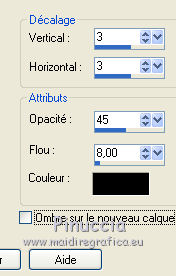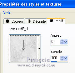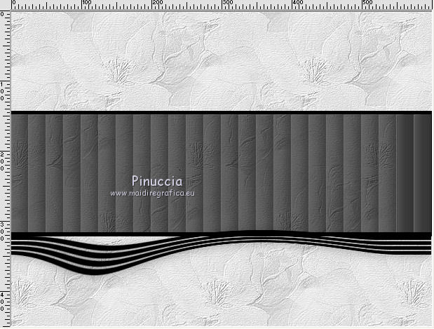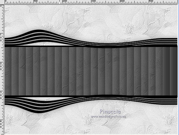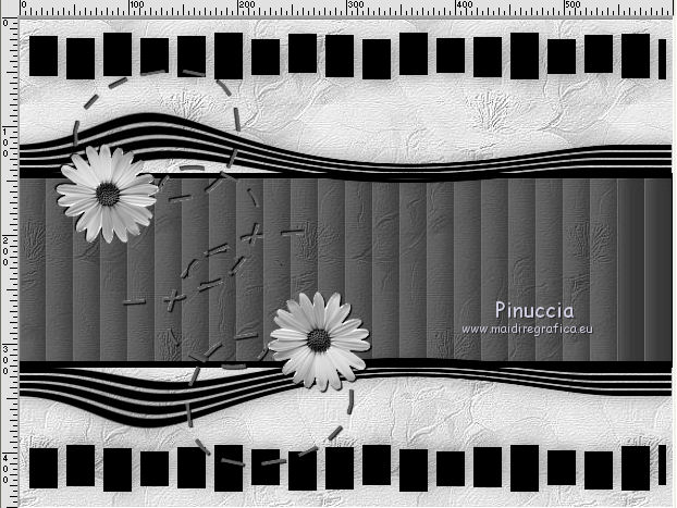 Ce tutoriel a été traduit avec Corel X12, mais il peut également être exécuté avec les autres versions. Suivant la version utilisée, vous pouvez obtenir des résultats différents. Depuis la version X4, la fonction Image>Miroir a été remplacée par Image>Renverser horizontalement, et Image>Renverser avec Image>Renverser verticalement. Dans les versions X5 et X6, les fonctions ont été améliorées par la mise à disposition du menu Objets. Dans la nouvelle version X7, nous avons à nouveau Miroir/Renverser, mais avec autres différences. Voir plus les détails à ce sujet ici Certaines dénominations ont changées entre les versions de PSP. Les plus frequentes dénominations utilisées: ![]() Traduction en italien ici Vos versions ici Nécessaire pour réaliser ce tutoriel: Matériel qui Modules Externes consulter, si nécessaire, ma section de filtre ici FM Tile Tools - Blend Emboss ici ![]() Si vous voulez utiliser vos propres couleurs, n'hésitez pas à changer le mode et l'opacité des calques 1. Ouvrir une nouvelle image transparente 600 x 450 pixels. 2. Sélections>Sélectionner tout. Ouvrir l'image d'arrière plan - Édition>Copier. Revenir sur votre travail et Édition>Coller dans la sélection. Sélections>Désélectionner tout. 3. Activer l'outil Sélection ![]() (peu importe le type de sélection, parce que avec la sélection personnalisée vous obtenez toujours un rectangle), cliquer sur Sélection personnalisée ![]() et setter ces paramètres. ![]() 4. Calques>Nouveau calque raster. Placer en avant plan la couleur noire. Remplir la sélection avec la couleur noire.Sélections>Désélectionner tout. 5. Ouvrir le tube RandMB_1 - Édition>Copier. Revenir sur votre travail et Édition>Coller comme nouveau calque. Déplacer l'image un peu plus en bas, au centre de la bande noire.![]() 6. Assurez-vous d'être positionné sur le calque du haut. Calques>Fusionner>Fusionner le calque de dessous. 7. Ouvrir RandMB_2 - Édition>Copier. Revenir sur votre travail et Édition>Coller comme nouveau calque. Déplacer en bas contre le bord central.![]() 8. Calques>Dupliquer. Image>Renverser. Positionner bien le tube contre le bord.![]() 9. Ouvrir RandMB-3 - Édition>Copier. Revenir sur votre travail et Édition>Coller comme nouveau calque. Déplacer le tube en haut.![]() 10. Calques>Dupliquer. Image>Renverser. 11. Ouvrir le tube Bloemdecoratie - Édition>Copier. Revenir sur votre travail et Édition>Coller comme nouveau calque. Déplacer dans le coin en bas à gauche.(ce tube vient d'un scrap Daisy-Nekky-one). 12. Calques>Dupliquer. Image>Renverser. Image>Miroir. Déplacer ce tube dans le coin en haut à gauche.(si nécessaire, avant de fusionner les calques, vous pourrez positionner mieux ces éléments). ![]() 13. Ouvrir le tube de la femme - Édition>Copier. Revenir sur votre travail et Édition>Coller comme nouveau calque. Image>Redimensionner, à 90%, redimensionner tous les calques décoché. Répéter, si nécessaire, pour avoir la juste dimension. Déplacer le tube contre le bord à droite.14. Effets>Effets 3D>Ombre portée, couleur noire. ![]() 15. Assurez-vous que tous les élément sont bien positionnés. Lorsque vous êtes satisfait: Calques>Fusionner>Tous. 16. Image>Ajouter des bordures, 1 pixel, symétrique, couleur noire. Image>Ajouter des bordures, 1 pixel, symétrique, couleur #ececec. Image>Ajouter des bordures, 1 pixel, symétrique, couleur noire. Image>Ajouter des bordures, 10 pixels, symétrique, couleur, #ececec. 17. Sélections>Sélectionner tout. Sélections>Modifier>Contracter - 10 pixels. Sélections>Inverser. 18. Ouvrir la texture textuurMB_1 et la minimiser. Placer en avant plan Motif et chercher la texture sous la catégorie Images ouvertes. Sélectionner la texture avec ces réglages. ![]() Remplir la sélection avec ce motif.19. Effets>Modules Externes>FM Tile Tools - Blend Emboss, par défaut. ![]() Sélections>Désélectionner tout. 20. Image>Ajouter des bordures, 1 pixel, symétrique, couleur noire. Si vous voulez, ajoutez un texte. 21. Réglage>Netteté>Masque flou. ![]() 22. Signer votre travail sur un nouveau calque. Enregistrer en jpg. ![]() Si vous avez des problèmes, ou des doutes, ou vous trouvez un link modifié, ou seulement pour me dire que ce tutoriel vous a plu, vous pouvez m'écrire. 12 Juin 2017 |
