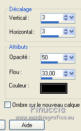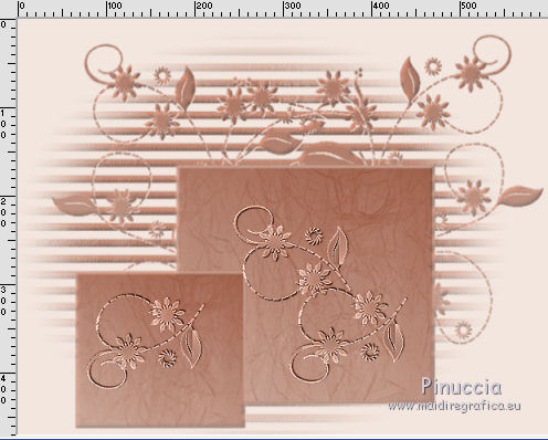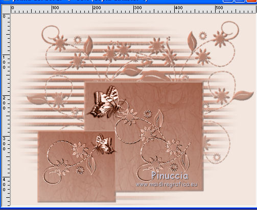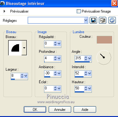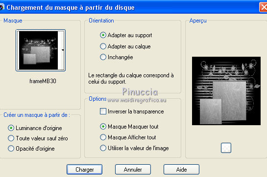 Ce tutoriel a été traduit avec Corel X12, mais il peut également être exécuté avec les autres versions. Suivant la version utilisée, vous pouvez obtenir des résultats différents. Depuis la version X4, la fonction Image>Miroir a été remplacée par Image>Renverser horizontalement, et Image>Renverser avec Image>Renverser verticalement. Dans les versions X5 et X6, les fonctions ont été améliorées par la mise à disposition du menu Objets. Dans la nouvelle version X7, nous avons à nouveau Miroir/Renverser, mais avec autres différences. Voir plus les détails à ce sujet ici Certaines dénominations ont changées entre les versions de PSP. Les plus frequentes dénominations utilisées: ![]() Traduction en italien ici Vos versions ici Nécessaire pour réaliser ce tutoriel: Matériel qui ![]() Si vous voulez utiliser vos propres couleurs, n'hésitez pas à changer le mode et l'opacité des calques Ouvrir le masque dans PSP et le minimiser avec le reste du matériel. 1. Ouvrir une nouvelle image transparente 600 x 470 pixels. Placer en avant plan la couleur #f2e6de et en arrière plan la couleur #c39983. ![]() 2. Remplir l'image transparente avec la couleur claire.3. Calques>Nouveau calque raster. Remplir le calque avec la couleur foncée.4. Calques>Charger/Enregistrer un masque>Charger à partir du disque. Chercher et charger le masque FrameMB30. ![]() Calques>Fusionner>Fusionner le groupe. 5. Effets>Effets 3D>Biseautage intérieur - couleur foncée. ![]() Édition>Répéter Biseautage intérieur. 6. Ouvrir le tube Kleine_tak - Édition>Copier. Revenir sur votre travail et Édition>Coller comme nouveau calque. Image>Renverser. Déplacer le tube dans le cadre à gauche.![]() 7. Calques>Dupliquer - 2 fois. Image>Miroir et/ou Image>Renverser et positionner à votre goût.Pour moi. ![]() 8. Ouvrir le tube vlinder_groot, Édition>Copier. Revenir sur votre travail et Édition>Coller comme nouveau calque. Déplacer le tube dans le cadre à droite, voir mon exemple.9. Calques>Dupliquer. Image>Miroir. 10. Image>Redimensionner, 2 fois à 80%, redimensionner tous les calques décoché. Déplacer le tube dans le cadre à gauche.![]() 12. Ouvrir le tube 0_7da57_71942dd8_L - Édition>Copier. Revenir sur votre travail et Édition>Coller comme nouveau calque. Image>Redimensionner, à 80%, redimensionner tous les calques décoché. Déplacer le tube en bas à droite.13. Effets>Effets 3D>Ombre portée, couleur noire. ![]() 14. Calques>Dupliquer. Image>Redimensionner, 2 fois à 80%, redimensionner tous les calques décoché. Image>Miroir. Déplacer le tube en bas à gauche.15. Image>Ajouter des bordures, 2 pixels, symétrique, couleur foncée. Image>Ajouter des bordures, 2 pixels, symétrique, couleur claire. Image>Ajouter des bordures, 2 pixels, symétrique, couleur foncée. 16. Signer votre travail sur un nouveau calque. Enregistrer en jpg. ![]() Si vous avez des problèmes, ou des doutes, ou vous trouvez un link modifié, ou seulement pour me dire que ce tutoriel vous a plu, vous pouvez m'écrire. 12 Juin 2017 |