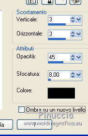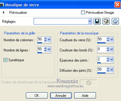 Ce tutoriel a été traduit avec Corel X12, mais il peut également être exécuté avec les autres versions. Suivant la version utilisée, vous pouvez obtenir des résultats différents. Depuis la version X4, la fonction Image>Miroir a été remplacée par Image>Renverser horizontalement, et Image>Renverser avec Image>Renverser verticalement. Dans les versions X5 et X6, les fonctions ont été améliorées par la mise à disposition du menu Objets. Dans la nouvelle version X7, nous avons à nouveau Miroir/Renverser, mais avec autres différences. Voir plus les détails à ce sujet ici Certaines dénominations ont changées entre les versions de PSP. Les plus frequentes dénominations utilisées: ![]() Traduction en italien ici Vos versions ici Nécessaire pour réaliser ce tutoriel: Matériel qui Le tube est de Lia Limnida. Modules Externes consulter, si nécessaire, ma section de filtre ici Mura's Meister - Copies ici ![]() Si vous voulez utiliser vos propres couleurs, n'hésitez pas à changer le mode et l'opacité des calques 1. Ouvrir une nouvelle image blanche 600 x 600 pixels. ![]() 2. Ouvrir l'image d'arrière plan "Stip" - Édition>Copier. Revenir sur votre travail et Édition>Coller comme nouveau calque. 3. Ouvrir le tube Ster - Édition>Copier. Revenir sur votre travail et Édition>Coller comme nouveau calque. 4. Ouvrir le tube Bloem1 - Édition>Copier. Revenir sur votre travail et Édition>Coller comme nouveau calque. 5. Calques>Dupliquer. 6. Vous positionner sur le calque de dessous de l'original. Effets>Effets de textures>Mosaïque de verre. ![]() 7. Vous positionner sur le calque du haut de la copie. Calques>Dupliquer. 8. Effets>Modules Externes>Mura's Meister - Copies. ![]() 9. Ouvrir le tube de Lia - Édition>Copier. Revenir sur votre travail et Édition>Coller comme nouveau calque. Image>Redimensionner, à 90%, redimensionner tous les calques décoché. Réglage>Netteté>Netteté. (avec l'outil Gonne ou Sélection ![]() effacer le texte du tube. Positionner bien le tube.10. Effets>Effets 3D>Ombre portée, couleur noire. ![]() 11. Si vous utilisez des autres couleurs, pour adapter le matériel à vos couleur, annoter les codes de Teinte (T) et Saturation (S) de votre couleur ![]() Réglage>Teinte et Saturation>Coloriser et frappez ces codes dans les respectives cases. ![]() 12. Image>Ajouter des bordures, 1 pixels, symétrique, couleur noire. Image>Ajouter des bordures, 10 pixels, symétrique, couleur blanche. 13. Signer votre travail sur un nouveau calque. Enregistrer en jpg. ![]() Si vous avez des problèmes, ou des doutes, ou vous trouvez un link modifié, ou seulement pour me dire que ce tutoriel vous a plu, vous pouvez m'écrire. 12 Juin 2017 |