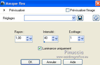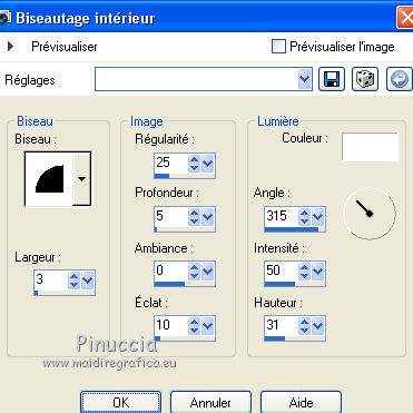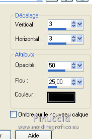 Ce tutoriel a été traduit avec CorelX2, mais il peut également être exécuté avec les autres versions. Suivant la version utilisée, vous pouvez obtenir des résultats différents. Depuis la version X4, la fonction Image>Miroir a été remplacée par Image>Renverser horizontalement, et Image>Renverser avec Image>Renverser verticalement. Dans les versions X5 et X6, les fonctions ont été améliorées par la mise à disposition du menu Objets. Dans la nouvelle version X7, nous avons à nouveau Miroir/Renverser, mais avec autres différences. Voir plus les détails à ce sujet ici Certaines dénominations ont changées entre les versions de PSP. Les plus frequentes dénominations utilisées: ![]() Traduction en italien ici Vos versions ici Nécessaire pour réaliser ce tutoriel: Matériel qui Pour les tubes merci Jet, Gerry, Mtm Brigitte (les liens des sites des tubeuses ici) Modules Externes consulter, si nécessaire, ma section de filtre ici Filters Unlimited 2.0 ici Simple - 4 Way Average ici FM Tile Tools - Blend Emboss ici Filtres Simple peuvent être utilisés seuls ou importés dans Filters Unlimited. voir comment le faire ici). Si un filtre est fourni avec cette icône, ![]() Si vous voulez utiliser vos propres couleurs, n'hésitez pas à changer le mode et l'opacité des calques 1. Ouvrir l'image d'arrière plan "achtergrond". Fenêtre>Dupliquer, ou sur le clavier shift+D, pour fare une copie. Fermer l'original. La copie sera la base de votre travail. 2. Ouvrir le tube Decoratie_1 - Édition>Copier. Revenir sur votre travail et Édition>Coller comme nouveau calque. Déplacer le tube à gauche, près du bord.![]() 3. Calques>Dupliquer. Image>Miroir. 4. Image>Redimensionner, à 90%, redimensionner tous les calques décoché. Déplacer ce tube un peu plus à droite.5. Ouvrir le tube Gerry-Bloemen15-29 juli 2007 - Édition>Copier. Revenir sur votre travail et Édition>Coller comme nouveau calque. Image>Redimensionner, à 75%, redimensionner tous les calques décoché. Réglage>Netteté>Netteté. 6. Réglage>Teinte et Saturation>Coloriser. ![]() 7. Effets>Modules Externes>FM Tile Tools - Blend Emboss, par défaut - 2 fois. ![]() Déplacer ce tube dans le coin en haut à droite, un peu au dehors des bords.![]() 8. Ouvrir le tube Mtm-bomen 25-28 okt 2007 - Édition>Copier. Revenir sur votre travail et Édition>Coller comme nouveau calque. Image>Redimensionner, à 80%, redimensionner tous les calques décoché. (pour mon exemple j'ai redimensionné 2 fois à 80%) Réglage>Netteté>Netteté. Déplacer ce tube dans le coin en bas à gauche.9. Placer le calque en mode Luminance (héritée). (pour mon exemple j'ai fait Luminance). ![]() 10. Effets>Modules Externes>FM Tile Tools - Blend Emboss, par défaut, 2 fois. ![]() 11. Ouvrir le tube Decoratietak-1 - Édition>Copier. Revenir sur votre travail et Édition>Coller comme nouveau calque. Déplacer le tube en haut à gauche, voir mon exemple.12. Effets>Effets 3D>Ombre portée, couleur noire. ![]() 13. Ouvrir le tube jet-woman23-oktober-2007. Image>Redimensionner, 2 fois à 90%, redimensionner tous les calques décoché. Édition>Copier (vous pouvez fermer le tube sans enregistrer les modifications). Revenir sur votre travail et Édition>Coller comme nouveau calque. 14. Effets>Effets 3D>Ombre portée, comme précédemment. 15. Contrôler que tout soit bien positionné; si nécessaire, vous pouvez encore déplacer vos tubes. 16. Calques>Fusionner>Tous. 17. Image>Ajouter des bordures, 1 pixel, symétrique, couleur #903b41. Image>Ajouter des bordures, 50 pixels, symétrique, avec une couleur claire de votre image. Image>Ajouter des bordures, 1 pixel, symétrique, #903b41. 18. Activer l'outil Baguette magique , tolérance et progressivité 0,et cliquer sur le bord de 50 pixels pour le sélectionner. 19. Ouvrir la texture "textuur" - Édition>Copier. Revenir sur votre travail et Édition>Coller dans la sélection. 20. Effets>Modules Externes>Simple - 4 Way Average. 21. Effets>Effets 3D>Biseautage intérieur. ![]() Sélections>Désélectionner tout. 22. Image>Redimensionner, à 80%, redimensionner tous les calques coché. 23. Image>Ajouter des bordures, 20 pixels, symétrique, n'importe quelle couleur. Sélectionner ce bord avec la baguette magique ![]() Édition>Coller dans la sélection (la texture est toujours en mémoire). 24. Effets>Modules Externes>Simple - 4 Way Average. Sélections>Désélectionner tout. 25. Image>Ajouter des bordures, 1 pixel, symétrique, couleur #903b41. Réglage>Netteté>Masque flou. ![]() 26. Signer votre travail sur un nouveau calque. Calques>Fusionner>Tous et enregistrer en jpg. ![]() Si vous avez des problèmes, ou des doutes, ou vous trouvez un link modifié, ou seulement pour me dire que ce tutoriel vous a plu, vous pouvez m'écrire. 18 Juillet 2017 |