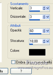 qui puoi trovare qualche risposta ai tuoi dubbi. Se l'argomento che ti interessa non è presente, ti prego di segnalarmelo. Questo tutorial è stato tradotto con CorelX, ma può essere eseguito con ogni versione di PSP. Dalla versione X4, il comando Immagine>Rifletti è stato sostituito con Immagine>Capovolgi in orizzontale, e il comando Immagine>Capovolgi con Immagine>Capovolgi in verticale. Nelle versioni X5 e X6, le funzioni sono state migliorate rendendo disponibile il menu Oggetti. Con la nuova versione X7, sono tornati Rifletti/Capovolgi, ma con nuove differenze Vedi la scheda sull'argomento qui traduzione in francese qui Occorrente: Materiale qui Il tube usato è ©Danime http://danime-chan.deviantart.com/ ![]() se stai usando altri colori, sperimenta le modalità di miscelatura e opacità più adatte ai tuoi colori 1. Apri una nuova immagine bianca 600 x 600 pixels. ![]() 2. Apri il tube Bloem e vai a Modifica>Copia. Torna al tuo lavoro e vai a Modifica>Incolla come nuovo livello. 3. Apri il tube Ster e vai a Modifica>Copia. Torna al tuo lavoro e vai a Modifica>Incolla come nuovo livello. 4. Apri il tube Bloem2 e vai a Modifica>Copia. Torna al tuo lavoro e vai a Modifica>Incolla come nuovo livello. 5. Apri il tube touwdecoratie e vai a Modifica>Copia. Torna al tuo lavoro e vai a Modifica>Incolla come nuovo livello. Spostalo un po' più in alto e a sinistra.![]() 6. Apri il tube ÑDanimechan_leversa_tubedbyLiz e vai a Modifica>Copia. Torna al tuo lavoro e vai a Modifica>Incolla come nuovo livello. Immagine>Rifletti. 7. Immagine>Ridimensiona, al 60%, tutti i livelli non selezionato. Sposta il tube in basso a destra.8. Effetti>Effetti 3D>Sfalsa ombra, colore nero. ![]() 9. Apri il tube DanimeChanStrawberryShortcakeConnyTube e vai a Modifica>Copia. Torna al tuo lavoro e vai a Modifica>Incolla come nuovo livello. . Immagine>Rifletti. Immagine>Ridimensiona, all'80%, tutti i livelli non selezionato. Sposta il tube in basso a sinistra.10. Effetti>Effetti 3D>Sfalsa ombra, colore nero. ![]() 11. Apri il tube Blaadjes e vai a Modifica>Copia. Torna al tuo lavoro e vai a Modifica>Incolla come nuovo livello. Immagine>Rifletti. Immagine>Capovolgi. 12. Livelli>Disponi>Sposta giù - due volte. Posiziona le foglie in basso a destra.![]() 13. Effetti>Effetti 3D>Sfalsa ombra, con i settaggi precedenti. 14. Ripeti l'Effetto Sfalsa ombra sui livelli Raster 2, 3, 4 e 5. 15, Immagine>Aggiungi bordatura, 4 pixels, simmetriche, con un colore della tua immagine. 16. Firma il tuo lavoro su un nuovo livello. Livelli>Unisci>Unisci tutto e salva in formato jpg. ![]() Se hai problemi o dubbi, o trovi un link non funzionante, o anche soltanto per un saluto, scrivimi. 8 Agosto 2017 |