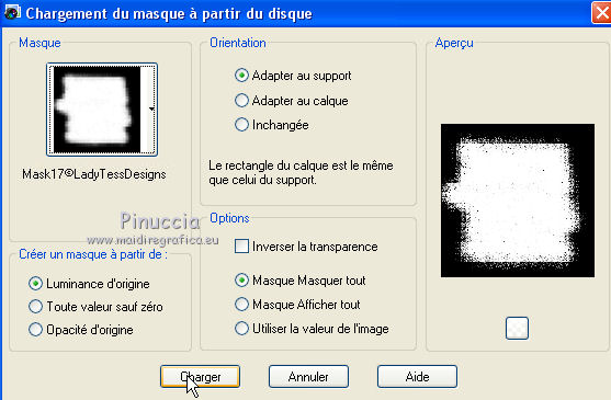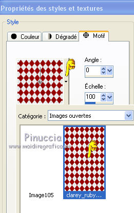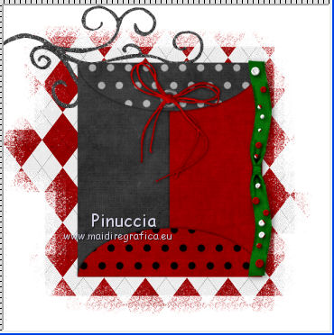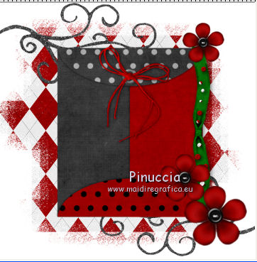 Ce tutoriel a été créé traduit avec CorelX2, mais il peut également être exécuté avec les autres versions. Suivant la version utilisée, vous pouvez obtenir des résultats différents. Depuis la version X4, la fonction Image>Miroir a été remplacée par Image>Renverser horizontalement, et Image>Renverser avec Image>Renverser verticalement. Dans les versions X5 et X6, les fonctions ont été améliorées par la mise à disposition du menu Objets. Dans la nouvelle version X7, nous avons à nouveau Miroir/Renverser, mais avec autres différences. Voir plus les détails à ce sujet ici Certaines dénominations ont changées entre les versions de PSP. Les plus frequentes dénominations utilisées: ![]() Traduction en italien ici Nécessaire pour réaliser ce tutoriel: Matériel qui ![]() Placer le masque dans le dossier Masques. 1. Ouvrir une nouvelle image blanche 600 x 600 pixels. ![]() 2. Ouvrir la texture Clarey-rubylicious-paper6 et la minimiser. Placer en avant plan Motif et chercher la texture sous la catégorie Images ouvertes. Sélectionner la texture avec ces réglages. ![]() Calques>Nouveau calque raster. Remplir le calque avec le motif d'avant plan.3. Calques>Charger/Enregistrer un masque>Charger à partir du disque. Chercher et charger le masque Mask17-C-LadyTessDesigns.jpg. ![]() Calques>Fusionner>Fusionner le groupe. Réglage>Netteté>Netteté. 4. Ouvrir le tube Clarey-rubylicious-fancyenvelope - Édition>Copier. Revenir sur votre travail et Édition>Coller comme nouveau calque. ![]() 5. Ouvrir le tube Lint-strip - Édition>Copier. Revenir sur votre travail et Édition>Coller comme nouveau calque. Déplacer le tube à droite.![]() 6. Ouvrir le tube Clarey-rubylicious-glitterdoodle5 - Édition>Copier. Revenir sur votre travail et Édition>Coller comme nouveau calque. Déplacer le tube dans le coin en haut à gauche.Placer le calque au dessous du calque de la lettre (envelope1). ![]() 7. Calques>Dupliquer. Image>Renverser. Image>Miroir. 8. Ouvrir le tube Clarey-Rubylicious-flowers1 - Édition>Copier. Revenir sur votre travail et Édition>Coller comme nouveau calque. Décorer votre travail avec ces fleurs, voir mon exemple. (j'ai dupliqué 2 fois et redimensionner une fleur à 120 et une fleur à 130%). ![]() 9. Choisir et copier/coller comme nouveau calque un des tubes fournis. Redimensionner, s'il est nécessaire. Positionner le tube à votre goût.10. Effets>Effets 3D>Ombre portée, couleur noire. ![]() 11. Appliquer l'Effet Ombre portée sur les calque des autres tubes, sauf le calque de la lettre. Sur le calque de la lettre: Effets>Effets 3D>Ombre portée, couleur noire. ![]() 12. Contrôler que tout est bien positionné; si vous voulez, vous pouvez encore déplacer vos tubes. 13. Calques>Fusionner>Tous. 14. Image>Ajouter des bordures, 1 pixels, symétrique, avec une couleur verte de votre image. Image>Ajouter des bordures, 1 pixel, symétrique, avec une couleur rouge de votre image. Image>Ajouter des bordures, 1 pixel, symétrique, couleur verte. 15. Signer votre travail sur un nouveau calque. Calques>Fusionner>Tous et enregistrer en jpg. Version avec le tube de la chaussure. ![]() ![]() Si vous avez des problèmes, ou des doutes, ou vous trouvez un link modifié, ou seulement pour me dire que ce tutoriel vous a plu, vous pouvez m'écrire. 8 Août 2017 |
