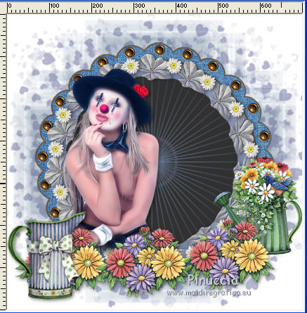Ce tutoriel a été créé avec CorelX15 et traduit avec CorelX12, mais il peut également être exécuté avec les autres versions. Pour traduire le tutoriel j'ai utilisé CorelX pour l'italien et CorelX17 pour le français. Suivant la version utilisée, vous pouvez obtenir des résultats différents. Depuis la version X4, la fonction Image>Miroir a été remplacée par Image>Renverser horizontalement, et Image>Renverser avec Image>Renverser verticalement . Dans les versions X5 et X6, les fonctions ont été améliorées par la mise à disposition du menu Objets. Dans la nouvelle version X7, nous avons à nouveau Miroir/Renverser, mais avec autres différences. Voir plus les détails à ce sujet ici Certaines dénominations ont changées entre les versions de PSP. Les plus frequentes dénominations utilisées: ![]() Traduction en italien ici Vos versions ici Nécessaire pour réaliser ce tutoriel: Matériel qui Tubes de Gina Jane's Friendship Garden. Le tube de la femme est de Suzi Sgai. ![]() Si vous voulez utiliser vos propres couleurs, n'hésitez pas à changer le mode et l'opacité des calques Placer les masques dans le dossier Masques. 1. Placer en avant plan #adaec9 et en arrière plan #325274 . ![]() 2. Ouvrir une nouvelle image blanche 700 x 700 pixels. ![]() 3. Calques>Nouveau calque raster. Remplir avec la couleur d'avant plan #adaec9. 4. Calques>Charger/Enregistrer un masque>Charger à partir du disque. Chercher et charger le masque sg-heart-burst.PspMask. ![]() Calques>Fusionner>Fusionner le groupe. 5 Image>Redimensionner, à 110%, redimensionner tous les calques décoché. 6. Calques>Nouveau calque raster. Remplir avec la couleur d'arrière plan #325274.7. Calques>Charger/Enregistrer un masque>Charger à partir du disque. Chercher et charger le masque WSL_Mask149. ![]() Calques>Fusionner>Fusionner le groupe. 8. Effets>Effets de bords>Accentuer davantage. 9. Image>Redimensionner, à 110%, redimensionner tous les calques décoché. 10. Ouvrir le tube YB_Frame_2.psp - Édition>Copier. Revenir sur votre travail et Édition>Coller comme nouveau calque. 11. Ouvrir le tube frame-3-mb.psp - Édition>Copier. Revenir sur votre travail et Édition>Coller comme nouveau calque. 12. Ouvrir le tube SS_1902.psp - Édition>Copier. Revenir sur votre travail et Édition>Coller comme nouveau calque. Déplacer le tube un peu plus à gauche.13. Effets>Effets 3D>Ombre portée, couleur noire. ![]() 14. Ouvrir le tube gjane_colored daisy garden.psp - Édition>Copier. Revenir sur votre travail et Édition>Coller comme nouveau calque. Déplacer le tube en bas à gauche, voir mon exemple.15. Calques>Dupliquer. Déplacer ce tube un peu plus à droite.À nouveau Calques>Dupliquer. Déplacer ce tube un peu plus à droite,pour obtenir un bord fleuri. ![]() 16. Assurez-vous d'être positionné sur le calque du haut de la pile. Calques>Fusionner>Fusionner le calque de dessous - 2 fois. 17. Effets>Effets 3D>Ombre portée, comme précédemment. ![]() 18. Ouvrir le tube gjane_tin pitcher with bow.psp - Édition>Copier. Revenir sur votre travail et Édition>Coller comme nouveau calque. Déplacer le tube en bas à gauche.![]() 19. Effets>Effets 3D>Ombre portée, comme précédemment. 20. Ouvrir le tube gjane_watercan daisies and bird.psp - Édition>Copier. Revenir sur votre travail et Édition>Coller comme nouveau calque. 21. Image>Miroir. Déplacer le tube en bas à droite.Calques>Agencer>Déplacer vers le bas - 2 fois. ![]() 22. Effets>Effets 3D>Ombre portée, comme précédemment. . 23. Vous positionner sur le calque du haut de la pile. Ouvrir le tube blue charm.psp - Édition>Copier. Revenir sur votre travail et Édition>Coller comme nouveau calque. Déplacer ce tube sur le bord du frame, en haut à droite, voir mon exemple.24. Effets>Effets 3D>Ombre portée, comme précédemment. 25. Ouvrir le tube bloem-klein.psp - Édition>Copier. Revenir sur votre travail et Édition>Coller comme nouveau calque. Positionner la fleur sur le chapeau de la femme.![]() Effets>Effets 3D>Ombre portée, comme précédemment. 26. Calques>Dupliquer. Déplacer cette fleur sur le ruban.![]() 27. Image>Ajouter des bordures, 1 pixel, symétrique, couleur foncée #325274. Image>Ajouter des bordures, 20 pixels, symétrique, couleur blanche. 28. Signer votre travail sur un nouveau calque. Enregistrer en jpg. Le tube de cette version est de Min@ ![]() ![]() Si vous avez des problèmes, ou des doutes, ou vous trouvez un link modifié, ou seulement pour me dire que ce tutoriel vous a plu, vous pouvez m'écrire. 16 Juin 2016 |