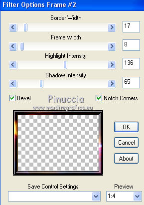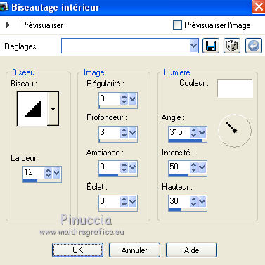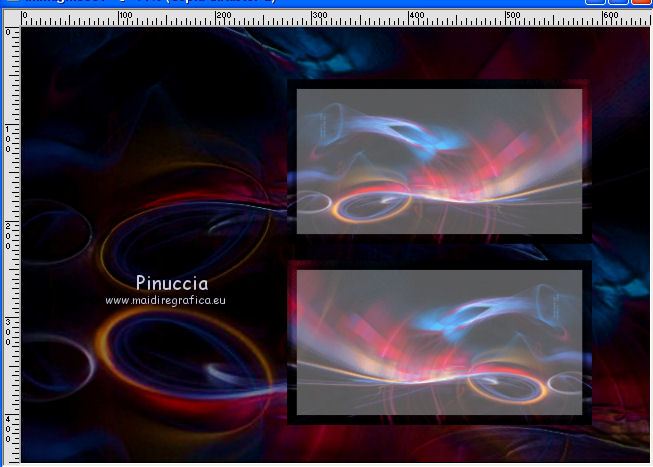 Ce tutoriel a été créé avec CorelX15 et traduit avec CorelX12, mais il peut également être exécuté avec les autres versions. Pour traduire le tutoriel j'ai utilisé CorelX pour l'italien et CorelX17 pour le français. Suivant la version utilisée, vous pouvez obtenir des résultats différents. Depuis la version X4, la fonction Image>Miroir a été remplacée par Image>Renverser horizontalement, et Image>Renverser avec Image>Renverser verticalement . Dans les versions X5 et X6, les fonctions ont été améliorées par la mise à disposition du menu Objets. Dans la nouvelle version X7, nous avons à nouveau Miroir/Renverser, mais avec autres différences. Voir plus les détails à ce sujet ici Certaines dénominations ont changées entre les versions de PSP. Les plus frequentes dénominations utilisées: ![]() Traduction en italien ici Nécessaire pour réaliser ce tutoriel: Matériel qui Le tube de la femme est de Yvonne Modules Externes consulter, si nécessaire, ma section de filtre ici Filters Unlimited 2.0 ici Graphics Plus - Vertical Blinds, Cross Shadow ici Bordermania ici Filtres Graphics Plus peuvent être utilisés seuls ou importés dans Filters Unlimited. voir comment le faire ici). Si un filtre est fourni avec cette icône, ![]() Si vous voulez utiliser vos propres couleurs, n'hésitez pas à changer le mode et l'opacité des calques 1. Ouvrir une nouvelle image transparente 315 x 170 pixels. ![]() 2. Sélections>Sélectionner tout. Ouvrir le tube Achtergrond1-jpg - Édition>Copier. Revenir sur votre travail et Édition>Coller dans la sélection. 3. Sélections>Modifier>Contracter - 10 pixels. Presser CANC sur le clavier ![]() 4. Sélections>Inverser. Effets>Effets 3D>Biseautage intérieur. ![]() 5. Sélections>Inverser. Édition>Coller dans la sélection (l'image est toujours en mémoire). 6. Calques>Nouveau calque raster. Placer en avant plan la couleur blanche, et remplir le calque avec la couleur blanche.Réduire l'opacité de ce calque à 35%. Sélections>Désélectionner tout. 7. Calques>Fusionner>Tous. Minimiser l'image, pour le moment. 8. Ouvrir une nouvelle image transparente 650 x 450 pixels. 9. Sélections>Sélectionner tout. Ouvrir Achtergrond2 - Édition>Copier. Revenir sur votre travail et Édition>Coller dans la sélection. Sélections>Désélectionner tout. 10. Activer le premier travail que vous avez minimisé à l'étape 7 - Édition>Copier. Revenir sur votre travail et Édition>Coller comme nouveau calque. 11. Déplacer le cadre un peu plus en haut et à droite (voir mon exemple).12. Calques>Dupliquer. Image>Miroir. Déplacer ce cadre au dessous du premier.![]() 13. Ouvrir le tube Zilveren-tak - Édition>Copier. Revenir sur votre travail et Édition>Coller comme nouveau calque. Déplacer le tube à droite, voir mon exemple.Placer le calque en mode Luminance (héritée). 14. Ouvrir le tube Jet-woman25-maart-2008-psp - Édition>Copier. Revenir sur votre travail et Édition>Coller comme nouveau calque. Image>Miroir. Image>Redimensionner, 3 fois à 90%, redimensionner tous les calques décoché. Déplacer le tube à gauche.15. Image>Ajouter des bordures, 2 pixels, symétrique, couleur noire. Image>Ajouter des bordures, 30 pixels, symétrique, couleur blanche. Image>Ajouter des bordures, 2 pixels, symétrique, couleur noire. 16. Activer l'outil Baguette magique , tolérance et progressivité 0,et cliquer sur le bord blanc pour le sélectionner. 17. Calques>Nouveau calque raster. Ouvrir le tube "Nummer 3" - Édition>Copier. Revenir sur votre travail et Édition>Coller dans la sélection. 18. Effets>Effets 3D>Ciselage, couleur #f1b561. ![]() 19. Effets>Modules Externes>Bordermania - Frame#2. ![]() 20. Effets>Modules Externes>Graphics Plus - Cross Shadow. ![]() Sélections>Désélectionner tout. . 21. Signer votre travail sur un nouveau calque. Calques>Fusionner>Tous et enregistrer en jpg. Le tube de cette version est de Yoka. ![]() ![]() Si vous avez des problèmes, ou des doutes, ou vous trouvez un link modifié, ou seulement pour me dire que ce tutoriel vous a plu, vous pouvez m'écrire. 16 Juin 2016 |