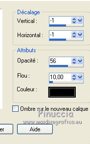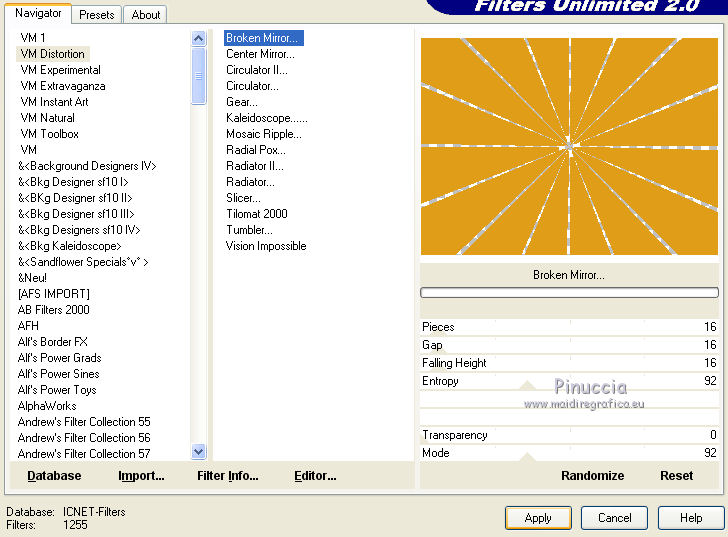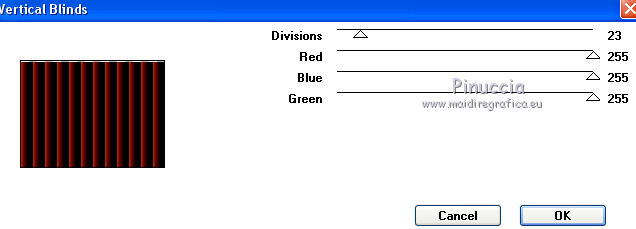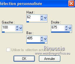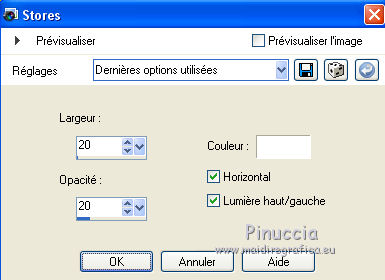 Ce tutoriel a été créé avec CorelX17, mais il peut également être exécuté avec les autres versions. Pour traduire le tutoriel j'ai utilisé CorelX pour l'italien et CorelX17 pour le français. Suivant la version utilisée, vous pouvez obtenir des résultats différents. Depuis la version X4, la fonction Image>Miroir a été remplacée par Image>Renverser horizontalement, et Image>Renverser avec Image>Renverser verticalement . Dans les versions X5 et X6, les fonctions ont été améliorées par la mise à disposition du menu Objets. Dans la nouvelle version X7, nous avons à nouveau Miroir/Renverser, mais avec autres différences. Voir plus les détails à ce sujet ici Certaines dénominations ont changées entre les versions de PSP. Les plus frequentes dénominations utilisées: ![]() Traduction en italien ici Vos versions ici Nécessaire pour réaliser ce tutoriel: Matériel qui Le tube des oiseaux est de Yvonne Modules Externes consulter, si nécessaire, ma section de filtre ici Filters Unlimited 2.0 ici Graphics Plus - Vertical Blinds, Cross Shadow ici VM Distortion - Broken Mirror ici Filtres Graphics Plus et VM Distortion peuvent être utilisés seuls ou importés dans Filters Unlimited. voir comment le faire ici). Si un filtre est fourni avec cette icône, ![]() Si vous voulez utiliser vos propres couleurs, n'hésitez pas à changer le mode et l'opacité des calques Dans les plus récentes versions de PSP, vous ne trouvez pas le dégradé d'avant plan/arrière plan ou Corel_06_029. Vous pouvez utiliser le dégradé des versions antérieures. Ici le dossier Dégradés de CorelX. Placer la texture "asfalt" dans le dossier Textures 1. Ouvrir une nouvelle image transparente 650 x 450 pixels. Placer en avant plan la couleur #9e2d07, et en arrière plan la couleur #e09d17. ![]() Remplir l'image transparente avec la couleur d'avant plan #9e2d07.2. Effets>Effets de textures>Texture - sélectionner la texture Asfalt (ou une texture à choix), avec ces réglages. ![]() 3. Calques>Nouveau calque raster. Remplir avec la couleur d'arrière plan #e09d17.4. Effets>Modules Externes>Filters Unlimited 2.0 - VM Distortion - Broken Mirror, par défaut. ![]() 5. Effets>Effets de textures>Stores, couleur blanche. ![]() 6. Effets>Effets 3D>Ombre portée, couleur noire. ![]() 7. Effets>Modules Externes>Graphics Plus - Cross Shadow. ![]() 8. Calques>Nouveau calque raster. Activer l'outil Sélection ![]() (peu importe le type de sélection, parce que avec la sélection personnalisée vous obtenez toujours un rectangle), cliquer sur Sélection personnalisée ![]() et setter ces paramètres. ![]() 9. Remplir la sélection avec la couleur d'avant plan #9e2d07.10. Effets>Modules Externes>Graphics Plus - Vertical Blinds. ![]() 11. Effets>Effets 3D>Ombre portée, couleur noire. ![]() Répéter Ombre portée, mais vertical et horizontal -1. ![]() 12. Calques>Nouveau calque raster. Sélection personnalisée ![]() ![]() 13. Placer en avant plan la couleur noire. Remplir la sélection avec la couleur noire.Sélections>Désélectionner tout. 14. Calques>Fusionner>Fusionner le calque de dessous. 15. Ouvrir le tube RandMB5 - Édition>Copier. Revenir sur votre travail et Édition>Coller comme nouveau calque. Déplacer le tube contre la première bande verticale.![]() 16. Ouvrir le tube Yvonne-13-27-juni-2008 - Édition>Copier. Revenir sur votre travail et Édition>Coller comme nouveau calque. Image>Redimensinner, à 90%, redimensionner tous les calques décoché. Déplacer le tube contre le bord à gauche, voir mon exemple.17. Effets>Effets 3D>Ombre portée, couleur noire. ![]() 18. Ouvrir le tube Love - Édition>Copier. Revenir sur votre travail et Édition>Coller comme nouveau calque. Déplacer en bas à droite.19. Effets>Effets 3D>Ombre portée, colore noire. ![]() 20. Sélections>Sélectionner tout. Image>Ajouter des bordures, 6 pixels, symétrique, couleur d'avant plan #9e2d07. 21. Sélections>Inverser. Effets>Effets de textures>Texture, comme précédemment. ![]() 22. Effets>Effets 3D>Biseautage intérieur, par défaut. ![]() Sélections>Désélectionner tout. 23. Signer votre travail sur un nouveau calque. Enregistrer en jpg. Le tube de cette version est de Yoka. ![]() ![]() Si vous avez des problèmes, ou des doutes, ou vous trouvez un link modifié, ou seulement pour me dire que ce tutoriel vous a plu, vous pouvez m'écrire. 16 Juin 2016 |