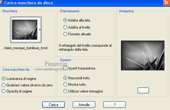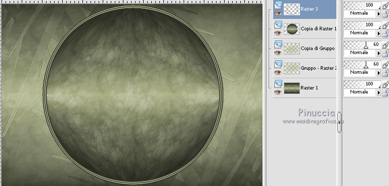qui puoi trovare qualche risposta ai tuoi dubbi. Se l'argomento che ti interessa non è presente, ti prego di segnalarmelo. Il tutorial è stato creato con CorelX4, ma può essere eseguito con ogni versione di PSP. Dalla versione X4, il comando Immagine>Rifletti è stato sostituito con Immagine>Capovolgi in orizzontale, e il comando Immagine>Capovolgi con Immagine>Capovolgi in verticale. Nelle versioni X5 e X6, le funzioni sono state migliorate rendendo disponibile il menu Oggetti. Con la nuova versione X7, sono tornati Rifletti/Capovolgi, ma con nuove differenze Vedi la scheda sull'argomento qui Per tradurre questo tutorial ho usato PSP X. traduction en français qui Le vostre versioni qui Occorrente: Materiale qui Il tube utilizzato è di Graça Macêdo. Filtri in caso di dubbi, ricorda di consultare la mia sezione filtri qui Filters Unlimited 2.0 qui Italian Editors Effects - Picture in picture qui I filtri Italian Editors si possono usare da soli o importati in Filters Unlimited (come fare vedi qui) Se un filtro fornito appare con questa icona ![]() se stai usando altri colori, sperimenta le modalità di miscelatura e opacità più adatte ai tuoi colori Metti la maschera nella cartella Maschere. 1. Apri una nuova immagine trasparente 650 x 450 pixels. 2. Imposta il colore di primo piano con #2e3025, e il colore di sfondo con #b7bc96. ![]() 3. Selezione>Seleziona tutto. Apri Achtergrond-1 e vai a Modifica>Copia. Torna al tuo lavoro e vai a Modifica>Incolla nella selezione. Selezione>Deseleziona. 3. Livelli>Duplica. Effetti>Effetti geometrici>Cerchio. ![]() 4. Selezione>Seleziona tutto. Selezione>Mobile. Selezione>Immobilizza. 5. Livelli>Nuovo livello raster. Riempi con il colore scuro.Selezione>Modifica>Contrai - 2 pixels. Riempi con il colore chiaro.Selezione>Modifica>Contrai - 2 pixels. Riempi con il colore scuro.Selezione>Modifica>Contrai - 2 pixels. Riempi con il colore chiaro.Selezione>Modifica>Contrai - 2 pixels. Riempi con il colore scuro.Selezione>Modifica>Contrai - 2 pixels. Premi sulla tastiera il tasto CANC ![]() Selezione>Deseleziona. 6. Livelli>Unisci>Unisci giù. 7. Attiva il livello inferiore. Livelli>Nuovo livello raster. Riempi con il colore chiaro.8. Livelli>Carica/Salva maschera>Carica maschera da disco. Cerca e carica la maschera claire_masque_banlieue_fond. ![]() Livelli>Unisci>Unisci gruppo. 9. Effetti>Effetti di bordo>Aumenta. Abbassa l'opacità di questo livello al 60%. 10. Livelli>Duplica. Immagine>Capovolgi. Immagine>Rifletti. 11. Attiva il livello superiore. ![]() Apri il tube RandMB6 e vai a Modifica>Copia. Torna al tuo lavoro e vai a Modifica>Incolla come nuovo livello. 12. Apri il tube Graça_Macêdo_BR_2702 e vai a Modifica>Copia. Torna al tuo lavoro e vai a Modifica>Incolla come nuovo livello. Immagine>Ridimensiona, 2 volte all'80%, tutti i livelli non selezionato. 13. Effetti>Effetti 3D>Sfalsa ombra, colore nero. ![]() 14. Immagine>Aggiungi bordatura, 1 pixel, simmetriche, colore scuro. 15. Finestra>Duplica o, sulla tastiera, maiuscola+D per fare una copia, e minimizza l'immagine. 16. Torna al tuo lavoro. Immagine>Aggiungi bordatura, 50 pixels, simmetriche, colore chiaro. Immagine>Aggiungi bordatura, 1 pixel, simmetriche, colore scuro. 17. Attiva lo strumento Bacchetta magica sfumatura e tolleranza 0,e clicca nel bordo chiaro per selezionarlo. 18. Livelli>Nuovo livello raster. Apri il tube LijstMB1 e vai aModifica>Copia. Torna al tuo lavoro e vai a Modifica>Incolla nella selezione. Abbassa l'opacità di questo livello al 60%. 19. Il filtro Picture in Picture è influenzato dal colore di sfondo. Per questo prima del prossimo passaggio, inverti i colori, in modo che il colore scuro passi a colore di sfondo. Effetti>Plugins>Italian Editors Effects - Picture in picture. ![]() Dovresti avere questo risultato ![]() se hai problemi con il filtro, copia e incolla nella selezione il tube "binnenrand" che trovi nel materiale) 20. Effetti>Effetti 3D>Sfalsa ombra, colore nero. ![]() Ripeti l'Effetto Sfalsa ombra, cambiando verticale e orizzontale con -3. Selezione>Deseleziona. 21. Attiva l'immagine che hai minimizzato al punto 15 e vai a Modifica>Copia. Torna al tuo lavoro e vai a Modifica>Incolla come nuovo livello. 22. Effetti>Effetti 3D>Sfalsa ombra, colore nero, con i settaggi precedenti. 23. Immagine>Aggiungi bordatura, 1 pixel, simmetriche, colore scuro. 24. Firma il tuo lavoro su un nuovo livello. Salva in formato jpg. Per questo esempio ho usato il tube Pinuccia di Min@ Grazie Mina per avermi dedicato questo tube. ![]() ![]() Se hai problemi o dubbi, o trovi un link non funzionante, o anche soltanto per un saluto, scrivimi. 19 Febbraio 2016 |
