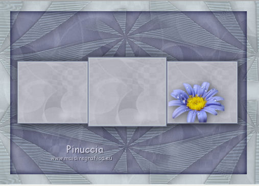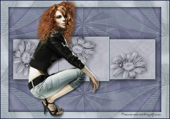 Ce tutoriel a été créé et traduit avec CorelX2, mais il peut également être exécuté avec les autres versions. Suivant la version utilisée, vous pouvez obtenir des résultats différents. Depuis la version X4, la fonction Image>Miroir a été remplacée par Image>Renverser horizontalement, et Image>Renverser avec Image>Renverser verticalement. Dans les versions X5 et X6, les fonctions ont été améliorées par la mise à disposition du menu Objets. Dans la nouvelle version X7, nous avons à nouveau Miroir/Renverser, mais avec autres différences. Voir plus les détails à ce sujet ici Certaines dénominations ont changées entre les versions de PSP. Les plus frequentes dénominations utilisées: ![]() Traduction en italien ici Vos versions ici Nécessaire pour réaliser ce tutoriel: Matériel qui Le tube utilisé est de Alies. ![]() Si vous voulez utiliser vos propres couleurs, n'hésitez pas à changer le mode et l'opacité des calques 1. Ouvrir Achtergrond 72-1. Fenêtre>Dupliquer, ou sur le clavier shift+D, pour faire une copie. Fermer l'original. La copie sera la base de votre travail. 2. Ouvrir Achtergrond 72-2 - Édition>Copier. Revenir sur votre travail et Édition>Coller comme nouveau calque. 3. Sélections>Sélectionner tout. Sélections>Flottante. 4. Calques>Nouveau calque raster. Effets>Effets 3D>Découpe, couleur #02032c. ![]() Sélections>Désélectionner tout. 5. Calques>Fusionner>Fusionner le calque de dessous. 6. Ouvrir Achtergrond 72-3 - Édition>Copier. Revenir sur votre travail et Édition>Coller comme nouveau calque. 7. Effets>Effets 3D>Ombre portée, couleur noire. ![]() 8. Réduire l'opacité de ce calque à 43%. 9. Ouvrir le tube Blokjes72-1 - Édition>Copier. Revenir sur votre travail et Édition>Coller comme nouveau calque. 10. Ouvrir le tube Bloem72-1 - Édition>Copier. Revenir sur votre travail et Édition>Coller comme nouveau calque. 11. Déplacer le tube dans le premier cadre,contre le bord en bas à gauche. ![]() 12. Placer le calque en mode Luminance (héritée). 13. Calques>Dupliquer. Image>Renverser. Déplacer cette fleur dans le deuxième cadre,contre le bord supérieur. ![]() 14. Calques>Dupliquer. Image>Rotation libre - 90 degrés à gauche. ![]() Déplacer l'image dans le troisième cadre,contre le bord à gauche. 15. Ouvrir le tube "Alies 739-woman jeans-06012012" - Édition>Copier. Revenir sur votre travail et Édition>Coller comme nouveau calque. Image>Redimensionner, 1 fois à 80% et 1 fois à 90%, redimensionner tous les calques décoché. Positionner le tube à votre convenance, ou voir mon exemple.16. Effets>Effets 3D>Ombre portée, couleur noire. ![]() 17. Image>Ajouter des bordures, 2 pixels, symétrique, couleur #02032c. 18. Signer votre travail sur un nouveau calque. Enregistrer en jpg. ![]() Si vous avez des problèmes, ou des doutes, ou vous trouvez un link modifié, ou seulement pour me dire que ce tutoriel vous a plu, vous pouvez m'écrire. 18 Février 2016 |