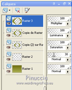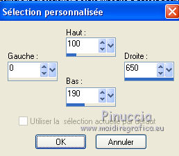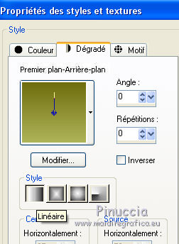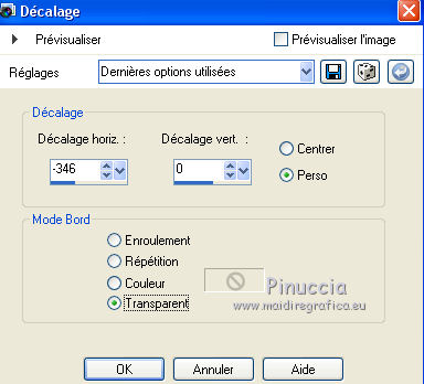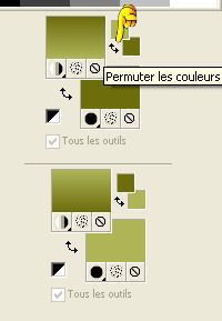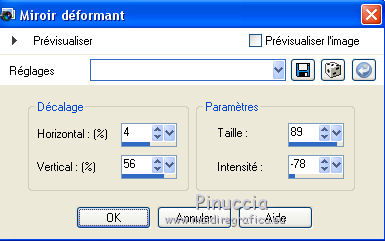 Ce tutoriel a été créé avec CorelX17, mais il peut également être exécuté avec les autres versions. Pour traduire le tutoriel j'ai utilisé CorelX et CorelX2. Suivant la version utilisée, vous pouvez obtenir des résultats différents. Depuis la version X4, la fonction Image>Miroir a été remplacée par Image>Renverser horizontalement, et Image>Renverser avec Image>Renverser verticalement. Dans les versions X5 et X6, les fonctions ont été améliorées par la mise à disposition du menu Objets. Dans la nouvelle version X7, nous avons à nouveau Miroir/Renverser, mais avec autres différences. Voir plus les détails à ce sujet ici Certaines dénominations ont changées entre les versions de PSP. Les plus frequentes dénominations utilisées: ![]() Traduction en italien ici Vos versions ici Nécessaire pour réaliser ce tutoriel: Matériel qui Le tube est de Kitty. Modules Externes consulter, si nécessaire, ma section de filtre ici Filters Unlimited 2.0 ici Bordemania - Frame#2 ici FM Tile Tools - Collage Circular ici VM Distortion - Center Mirror ici Filtres VM Distortion peuvent être utilisés seuls ou importés dans Filters Unlimited. voir comment le faire ici). Si un filtre est fourni avec cette icône, ![]() Si vous voulez utiliser vos propres couleurs, n'hésitez pas à changer le mode et l'opacité des calques Dans les plus récentes versions de PSP, vous ne trouvez pas le dégradé d'avant plan/arrière plan ou Corel_06_029. Vous pouvez utiliser le dégradé des versions antérieures. Ici le dossier Dégradés de CorelX. 1. Ouvrir une nouvelle image transparente 650 x 500 pixels. Placer en avant plan la couleur claire #afb458, et en arrière plan la couleur foncée #6e6d0e. ![]() Préparer en avant plan un dégradé de premier plan/arrière plan, style Linéaire. ![]() Remplir l'image transparente du dégradé.2. Calques>Nouveau calque raster. Activer l'outil Sélection ![]() (peu importe le type de sélection, parce que avec la sélection personnalisée vous obtenez toujours un rectangle), cliquer sur Sélection personnalisée ![]() et setter ces paramètres. ![]() 3. Placer en arrière plan la couleur blanche. Remplir la sélection avec la couleur blanche.Sélections>Désélectionner tout. Placer en arrière plan à nouveau la couleur du début #6e6d0e. 3. Effets>Modules Externes>Filters Unlimited 2.0 - VM Distortion - Center Mirror. ![]() Réduire l'opacité du calque à 30%. 4. Calques>Nouveau calque raster. Sélection personnalisée , comme précédemment![]() Remplir la sélection avec la couleur foncée d'arrière plan.5. Sélections>Modifier>Contracter - 2 pixels. Remplir du dégradé.Sélections>Désélectionner tout. Effets>Effets de distorsion>Miroir déformant. ![]() 6. Déplacer le calque un peu plus en bas,voir mon exemple. 7. Calques>Dupliquer. Image>Renverser. 8. Calques>Fusionner>Fusionner le calque de dessous. 9. Effets>Effets 3D>Ombre portée, couleur noire. ![]() 10. Calques>Dupliquer. Image>Redimensionner, à 80%, redimensionner tous les calques décoché. 11. Calques>Agencer>Déplacer vers le bas. À nouveau: Calques>Dupliquer. Image>Redimensionner, à 80%, redimensionner tous les calques décoché. Calques>Agencer>Déplacer vers le bas. 12. Sur ce calque Copie (2) surRaster 3 Placer le calque en mode Saturation. 13. Vous positionner sur le calque de dessus Copie de Raster 3. Placer le calque en mode Luminance. 14. Effets>Effets d'image>Décalage. ![]() 15. Vous positionner sur le calque du haut de la pile - Raster 3. Placer le calque en mode Multiplier. ![]() 16. Calques>Fusionner>Calques visibles. 17. Image>Taille du support - 1000 x 466 pixels. ![]() 18. Activer l'outil Baguette magique , tolérance et progressivité 0,et cliquer sur les parties transparentes pour les sélectionner. 19. Calques>Nouveau calque raster. Inverser les couleurs du dégradé: cliquer sur la flèche de la petite palette pour inverser les couleurs, et vous aurez le nouveau dégradé. ![]() Remplir la sélection du dégradé.Sélections>Désélectionner tout. 20. Calques>Dupliquer. 21. Effets>Modules Externes>FM Tile Tools - Collage Circular. Si vous avez des problèmes à utiliser les curseurs pour règler les paramètres, vous pouvez utiliser les flèches du clavier. ![]() 22. Effets>Effets d'image>Mosaïque sans jointures, par défaut. ![]() 23. Effets>Effets de textures>Stores. ![]() Placer le calque en mode Multiplier. Calques>Fusionner>Tous. 24. Activer le tube KS-24-2-2009-Clowns, - Édition>Copier. Revenir sur votre travail et Édition>Coller comme nouveau calque. Image>Redimensionner, al 90%, redimensionner tous les calques décoché. Positionner bien le tube.26. Effets>Effets 3D>Ombre portée, comme précédemment. 27. Activer le tube Randje, - Édition>Copier. Revenir sur votre travail et Édition>Coller comme nouveau calque. 28. Effets>Effets d'image>Décalage. ![]() 29. Calques>Dupliquer. Image>Miroir. 30. Activer le tube Rondjes wit, - Édition>Copier. Revenir sur votre travail et Édition>Coller comme nouveau calque. 31. Effets>Effets d'image>Décalage. ![]() Réduire l'opacité de ce calque à 50%. 32. Calques>Dupliquer. Image>Miroir. 33. Image>Ajouter des bordures, 4 pixels, symétrique, couleur claire. Activer l'outil Baguette magique , tolérance et progressivité 0,et cliquer dans le bord clair pour le sélectionner. Remplir la sélection du dégradé.Sélections>Désélectionner tout. 34. Effets>Modules Externes>Bordermania - Frame#2. ![]() 35. Signer votre travail sur un nouveau calque. Enregistrer en jpg. ![]() Si vous avez des problèmes, ou des doutes, ou vous trouvez un link modifié, ou seulement pour me dire que ce tutoriel vous a plu, vous pouvez m'écrire. 24 Septembre 2015 |