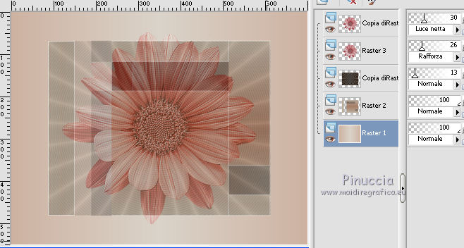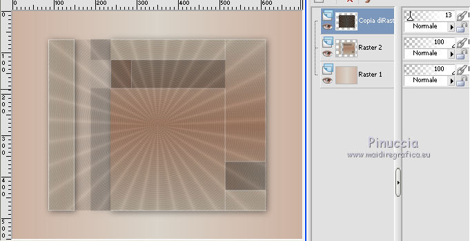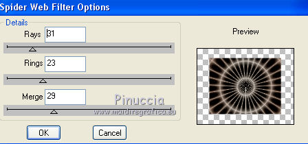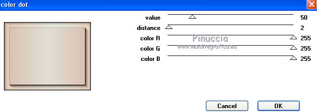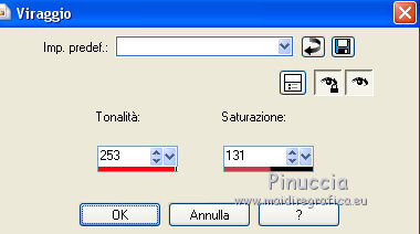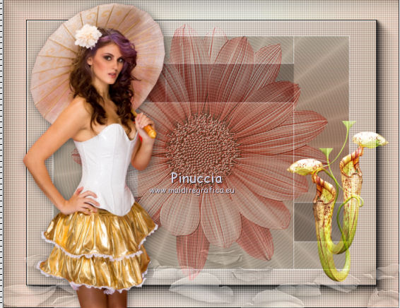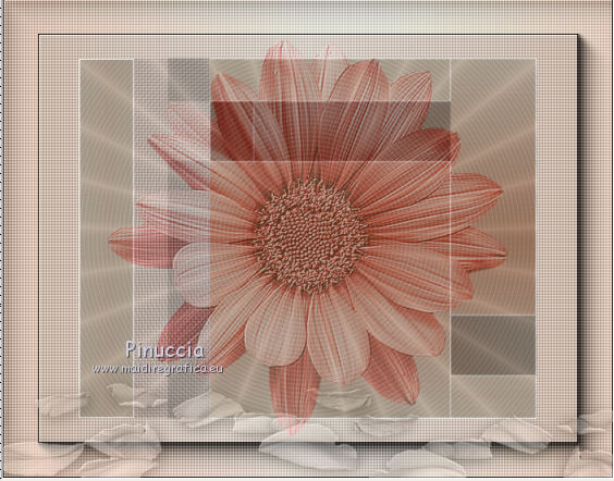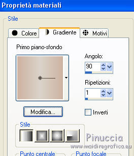 qui puoi trovare qualche risposta ai tuoi dubbi. Se l'argomento che ti interessa non è presente, ti prego di segnalarmelo. Questo tutorial è stato creato con CorelX4 e tradotto con CorelX, ma può essere eseguito con ogni versione di PSP. Dalla versione X4, il comando Immagine>Rifletti è stato sostituito con Immagine>Capovolgi in orizzontale, e il comando Immagine>Capovolgi con Immagine>Capovolgi in verticale. Nelle versioni X5 e X6, le funzioni sono state migliorate rendendo disponibile il menu Oggetti. Con la nuova versione X7, sono tornati Rifletti/Capovolgi, ma con nuove differenze Vedi la scheda sull'argomento qui traduction en français qui Le vostre versioni qui Occorrente: Materiale qui Per i tubes grazie ClaudiaViza, LuzCristina e kTs. Filtri in caso di dubbi, ricorda di consultare la mia sezione filtri qui Filters Unlimited 2.0 qui AAA Frames - Foto Frame qui Penta.com - Color dot qui DSB Flux - Spider Web qui FM Tile Tools - Blend Emboss qui I filtri Penta.com si possono usare da soli o importati in Filters Unlimited (come fare vedi qui) Se un filtro fornito appare con questa icona ![]() se stai usando altri colori, sperimenta le modalità di miscelatura e opacità più adatte ai tuoi colori Nelle ultime versioni di PSP non c'è il gradiente di primo piano/sfondo (Corel_06_029) Trovi i gradienti delle versioni precedenti qui 1. Apri una nuova immagine trasparente 700 x 550 pixels. Imposta il colore di primo piano con #cdb2a1, e il colore di sfondo con #dad3c9. ![]() Passa il colore di primo piano a Gradiente di primo piano/sfondo, stile Lineare. ![]() Riempi l'immagine trasparente con il gradiente.2. Livelli>Duplica. 3. Immagine>Ridimensiona, al 75%, tutti i livelli non selezionato. 4. Apri l'immagine di sfondo achtergrond-12, e vai a Modifica>Copia. Torna al tuo lavoro e vai a Modifica>Incolla come nuovo livello. 5. Effetti>Effetti 3D>Sfalsa ombra, colore nero. ![]() 6. Attiva il livello Copia di Raster 1. Livelli>Disponi>Porta in alto. 7. Effetti>Plugins>DSB - Spiderweb. ![]() Abbassa l'opacità di questo livello al 13%. ![]() 8. Apri il tube 1519-luzcristina, e vai a Modifica>Copia. Torna al tuo lavoro e vai a Modifica>Incolla come nuovo livello. Immagine>Ridimensiona, al 110%, tutti i livelli non selezionato. 9. Regola>Tonalità e saturazione>Viraggio. ![]() 10. Effetti>Plugins>FM Tile Tools - Blend Emboss, 2 volte con i settaggi standard. ![]() 11. Cambia la modalità di miscelatura di questo livello in Rafforza e abbassa l'opacità al 26% (o secondo i tuoi colori e/o i tuoi tubes). ![]() 12. Livelli>Duplica. Cambia la modalità di miscelatura di questo livello in Luce netta, e abbassa l'opacità al 30%. ![]() 13. Attiva il livello inferiore. Effetti>Plugins>AAA Frames - Foto Frame. ![]() 14. Effetti>Plugins>Penta.com - Color dot. ![]() 15. Effetti>Plugins>FM Tile Tools - Blend Emboss, con i settaggi standard. 16. Attiva il livello superiore. Apri il tube kTs_uJf2, e vai a Modifica>Copia. Torna al tuo lavoro e vai a Modifica>Incolla come nuovo livello. Spostalo in basso a sinistra.17. Cambia la modalità di miscelatura di questo livello in Luminanza (esistente) e abbassa l'opacità al 50%. 18. Effetti>Effetti 3D>Sfalsa ombra, con il colore nero. ![]() 19. Effetti>Plugins>FM Tile Tools - Blend Emboss, con i settaggi standard. 20. Livelli>Duplica. Immagine>Rifletti. Sposta questo tube un po' più in basso e a destra.![]() 21. Apri il tube tubeclaudiaviza-mujer2224, e vai a Modifica>Copia. Torna al tuo lavoro e vai a Modifica>Incolla come nuovo livello. Immagine>Ridimensiona, al 60%, tutti i livelli non selezionato. Spostalo a sinistra.22. Effetti>Effetti 3D>Sfalsa ombra, colore nero. ![]() 23. Apri plante1, e vai a Modifica>Copia. Torna al tuo lavoro e vai a Modifica>Incolla come nuovo livello. 24. Immagine>Ridimensiona, al 25%, tutti i livelli non selezionato. Spostalo in basso a destra.Cambia la modalità di miscelatura di questo livello in Luce netta. 25. Livelli>Duplica. Immagine>Rifletti. Posiziona questo tube contro l'originale.![]() 26. Immagine>Aggiungi bordatura, 2 pixels, simmetriche, con il colore scuro. 27. Firma il tuo lavoro su un nuovo livello. Salva in formato jpg. ![]() Se hai problemi o dubbi, o trovi un link non funzionante, o anche soltanto per un saluto, scrivimi. 3 Ottobre 2015 |