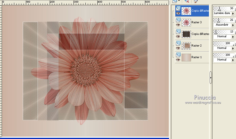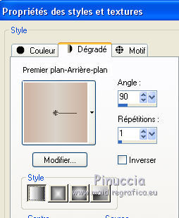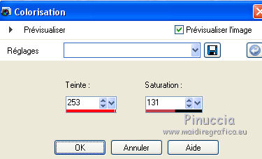 Ce tutoriel a été créé avec CorelX17, mais il peut également être exécuté avec les autres versions. Pour traduire le tutoriel j'ai utilisé CorelX et CorelX2. Suivant la version utilisée, vous pouvez obtenir des résultats différents. Depuis la version X4, la fonction Image>Miroir a été remplacée par Image>Renverser horizontalement, et Image>Renverser avec Image>Renverser verticalement. Dans les versions X5 et X6, les fonctions ont été améliorées par la mise à disposition du menu Objets. Dans la nouvelle version X7, nous avons à nouveau Miroir/Renverser, mais avec autres différences. Voir plus les détails à ce sujet ici Certaines dénominations ont changées entre les versions de PSP. Les plus frequentes dénominations utilisées: ![]() Traduction en italien ici Vos versions ici Nécessaire pour réaliser ce tutoriel: Matériel qui Pour les tubes merci ClaudiaViza, LuzCristina et kTs. Modules Externes consulter, si nécessaire, ma section de filtre ici Filters Unlimited 2.0 ici AAA Frames - Foto Frame ici Penta.com - Color dot ici DSB Flux - Spider Web ici FM Tile Tools - Blend Emboss ici Filtres Penta.com peuvent être utilisés seuls ou importés dans Filters Unlimited. voir comment le faire ici). Si un filtre est fourni avec cette icône, ![]() Si vous voulez utiliser vos propres couleurs, n'hésitez pas à changer le mode et l'opacité des calques Dans les plus récentes versions de PSP, vous ne trouvez pas le dégradé d'avant plan/arrière plan ou Corel_06_029. Vous pouvez utiliser le dégradé des versions antérieures. Ici le dossier Dégradés de CorelX. 1. Placer en avant plan la couleur #cdb2a1, et en arrière plan la couleur #dad3c9. ![]() Préparer en avant plan un dégradé de premier plan/arrière plan, style Linéaire. ![]() Ouvrir une nouvelle image transparente 700 x 550 pixels, et remplir du dégradé.2. Calques>Dupliquer. 3. Image>Redimensionner, à 75%, redimensionner tous les calques décoché. 4. Ouvrir l'image de fond achtergrond-12, - Édition>Copier. Revenir sur votre travail et Édition>Coller comme nouveau calque. 5. Effets>Effets 3D>Ombre portée, couleur noire. ![]() 6. Vous positionner sur le calque Copie de Raster 1. Calques>Agencer>Placer en haut de la pile. 7. Effets>Modules Externes>DSB - Spiderweb. ![]() Réduire l'opacité de calque à 13%. ![]() 8. Activer le tube 1519-luzcristina, - Édition>Copier. Revenir sur votre travail et Édition>Coller comme nouveau calque. Image>Redimensionner, à 110%, redimensionner tous les calques décoché. 9. Réglage>Teinte et Saturation>Coloriser. ![]() 10. Effets>Modules Externes>FM Tile Tools - Blend Emboss, 2 fois par défaut. ![]() 11. Placer le calque en mode Assombrir et réduire l'opacité à 26%, (ou en fonction des vos couleurs et/ou des vos tubes). ![]() 12. Calques>Dupliquer. Placer le calque en mode Lumière dure et réduire l'opacité à 30%. ![]() 13. Vous positionner sur le calque du bas de la pile. Effets>Modules Externes>AAA Frames - Foto Frame. ![]() 14. Effets>Modules Externes>Penta.com - Color dot. ![]() 15. Effets>Modules Externes>FM Tile Tools - Blend Emboss, par défaut. 16. Activer le calque du haut de la pile. Ouvrir le tube kTs_uJf2, - Édition>Copier. Revenir sur votre travail et Édition>Coller comme nouveau calque. Déplacer le tube en bas à gauche.17. Placer le calque en mode Luminance (héritée) et réduire l'opacité à 50%. 18. Effets>Effets 3D>Ombre portée, couleur noire. ![]() 19. Effets>Modules Externes>FM Tile Tools - Blend Emboss, par défaut. 20. Calques>Dupliquer. Image>Miroir. Déplacer ce tube un peu plus en bas et à droite.![]() 21. Ouvrir le tube tubeclaudiaviza-mujer2224, - Édition>Copier. Revenir sur votre travail et Édition>Coller comme nouveau calque. Image>Redimensionner, à 60%, redimensionner tous les calques décoché. Déplacer le tube à gauche.22. Effets>Effets 3D>Ombre portée, couleur noire. ![]() 23. Ouvrir plante1, - Édition>Copier. Revenir sur votre travail et Édition>Coller comme nouveau calque. 24. Image>Redimensionner, à 25%, redimensionner tous les calques décoché. Déplacer le tube en bas à droite.Placer le calque en mode Lumière dure. 25. Calques>Dupliquer. Image>Miroir. Positionner ce tube contre l'original.![]() 26. Image>Ajouter des bordures, 2 pixels, symétrique, couleur foncée. 27. signer votre travail sur un nouveau calque. Enregistrer en jpg. ![]() Si vous avez des problèmes, ou des doutes, ou vous trouvez un link modifié, ou seulement pour me dire que ce tutoriel vous a plu, vous pouvez m'écrire. 24 Septembre 2015 |