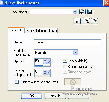 7. Livelli>Nuovo livello raster e approfitta della finestra che si apre per abbassare l'opacità al 50%.