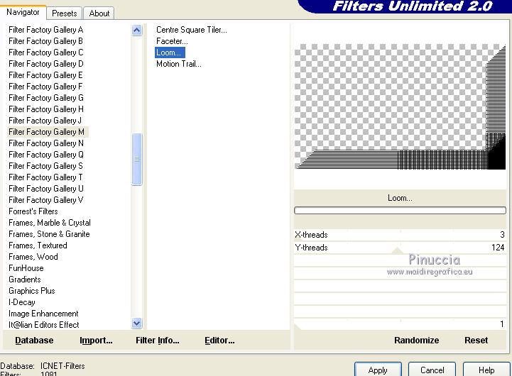 Effetti>Plugins>Filters Unlimited 2.0 - Filter Factory Gallery M - Loom.