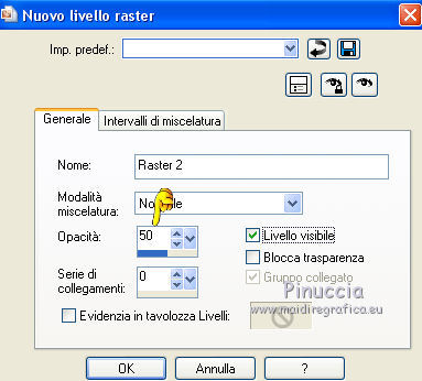 Livelli>Nuovo livello raster, e approfitta della finestra che si apre per ridurre l'opacità al 50%.