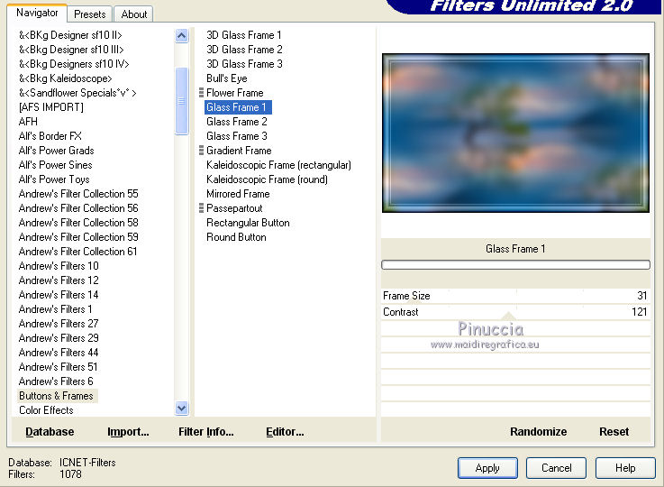 6. Effetti>Plugins>Filters Unlimited 2.0 - Buttons & Frams - Glass Frame 1.