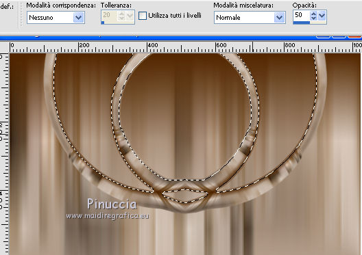 Riempi con il gradiente, opacità sempre a 50.